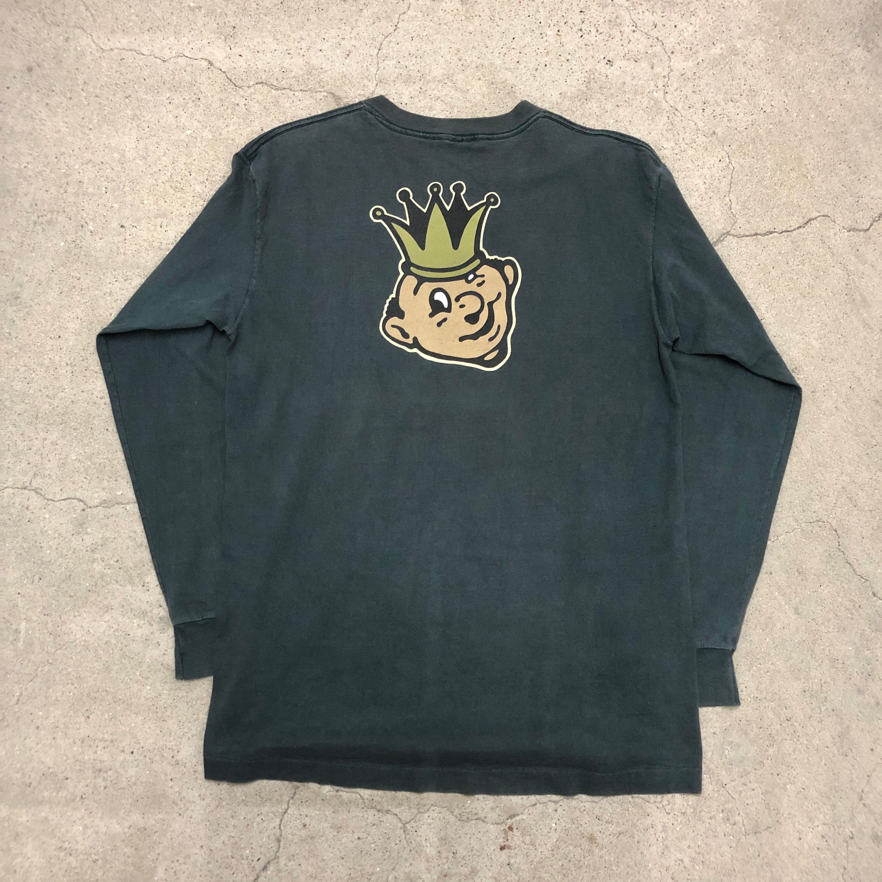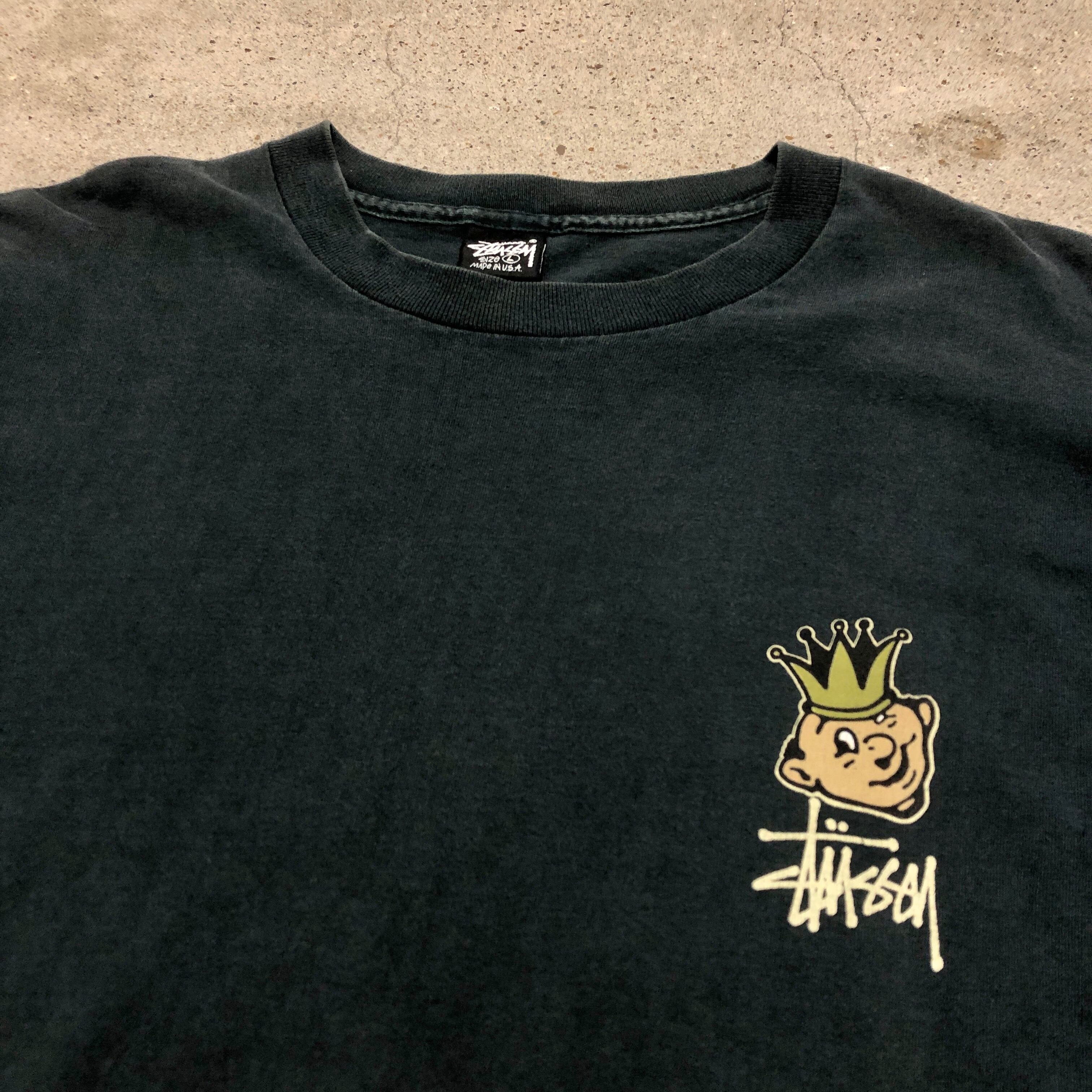 90s OLD STUSSY/Crown print L/S Tee/USA製/黒タグ/L/クラウンプリント/キャラクタープリント/ロンT/長袖Tシャツ/ブラック/ステューシー/オールドステューシー/古着/ヴィンテージ/アーカイブ