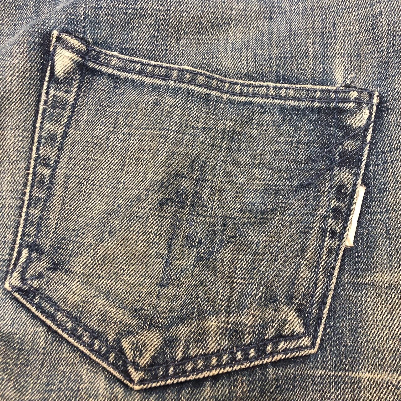 中古、古着特有の着用感があり、裾にダメージがあります。