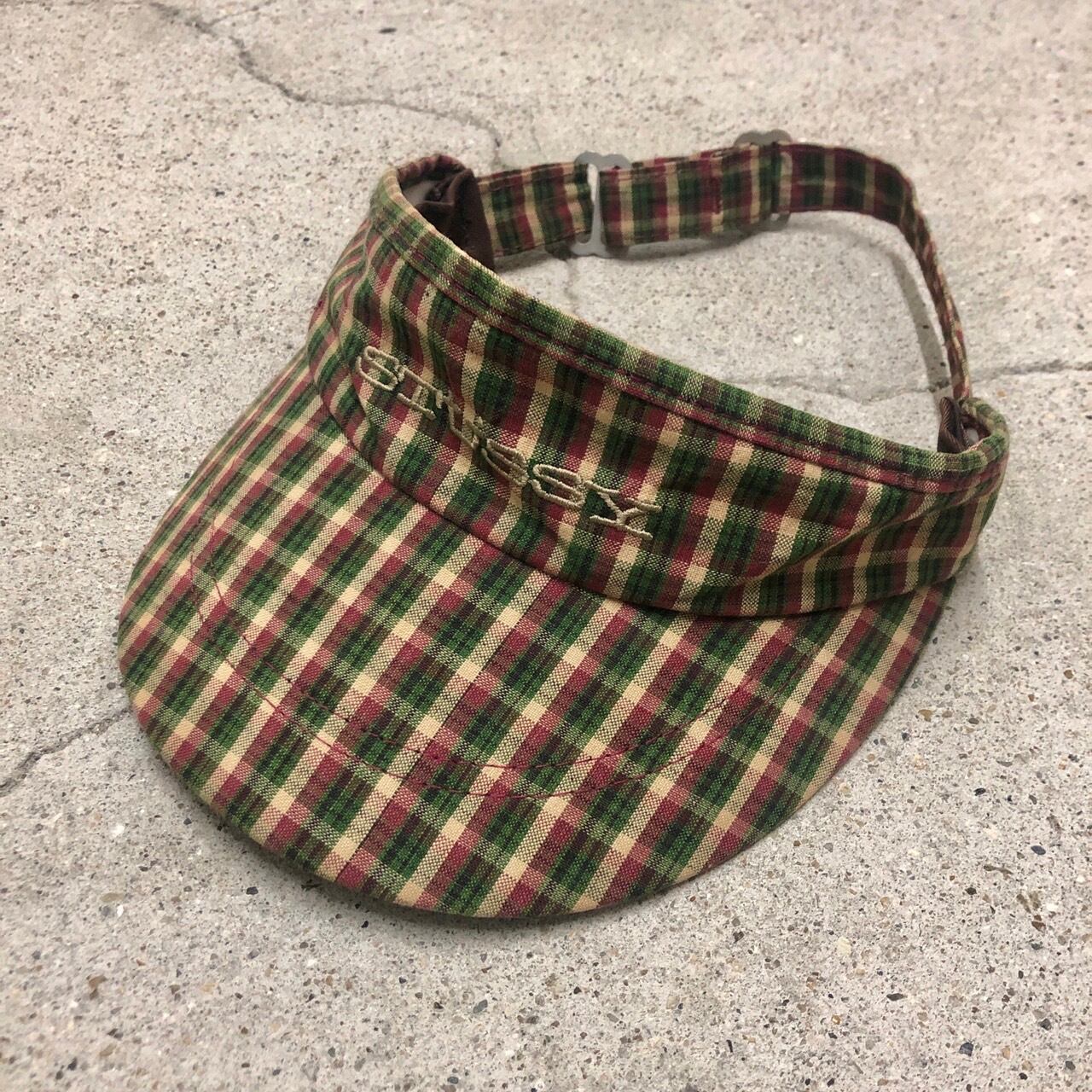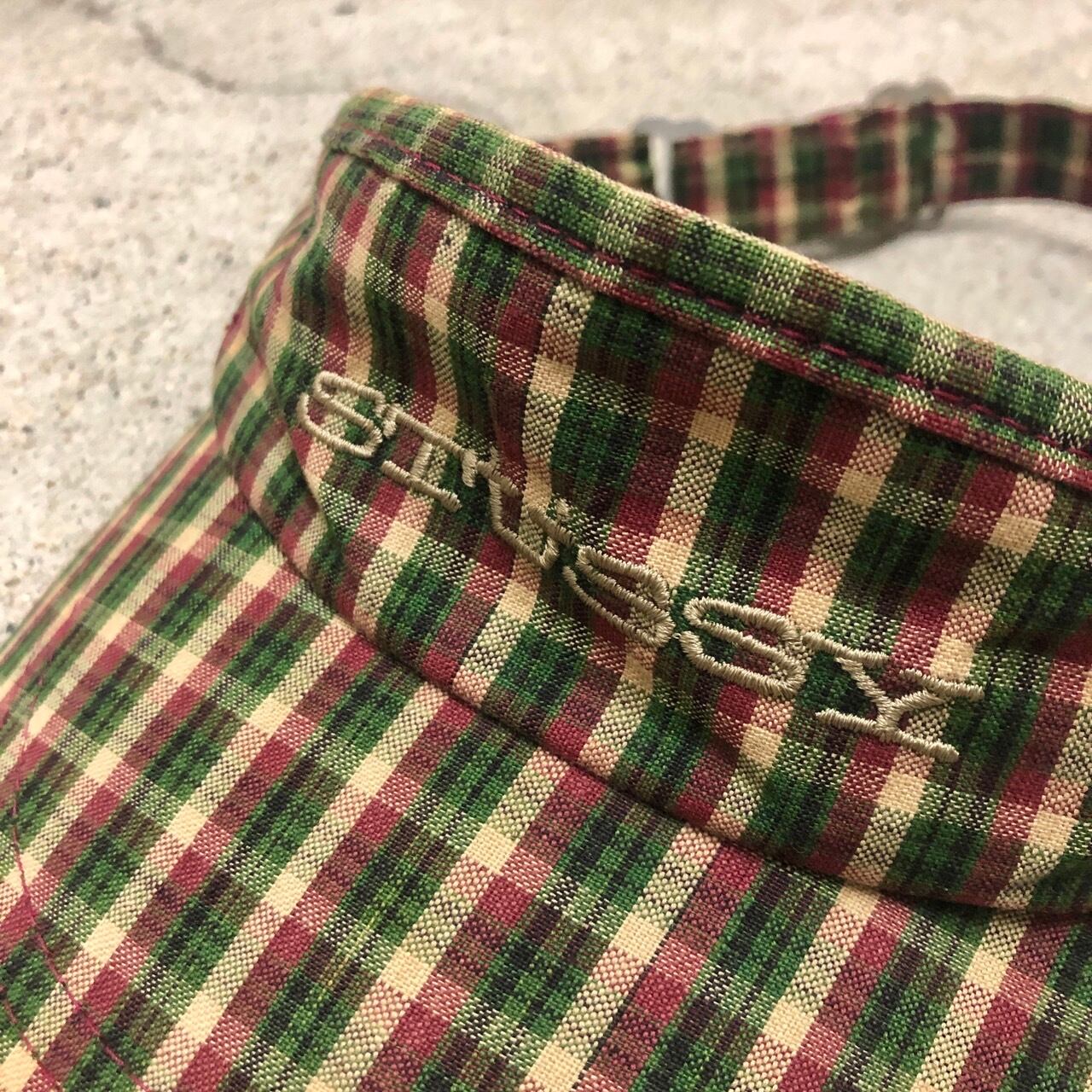 90s OLD STUSSY/Check Sun Visor/USA製/白タグ/チェック柄/サンバーザー/カーキ/ベージュ/ステューシー/オールドステューシー/古着/ヴィンテージ/アーカイブ