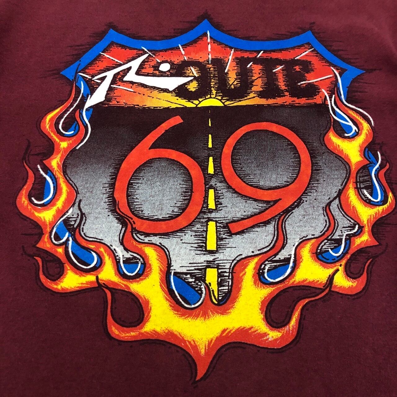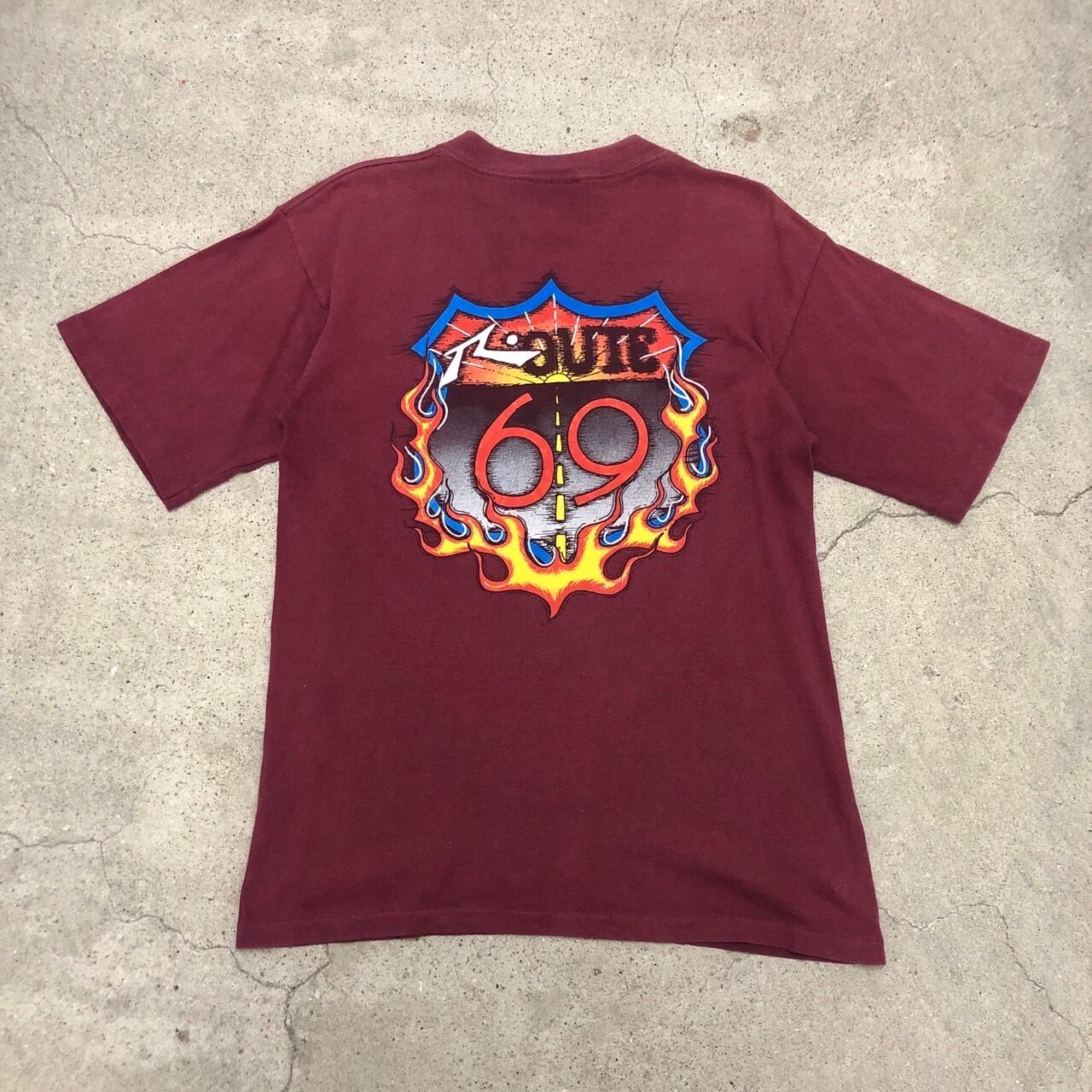 90s RUSTY/ROUTE69 print Tee/USA製/M/ルート69プリントT/Tシャツ/バーガンディー/シングルステッチ/ラスティー