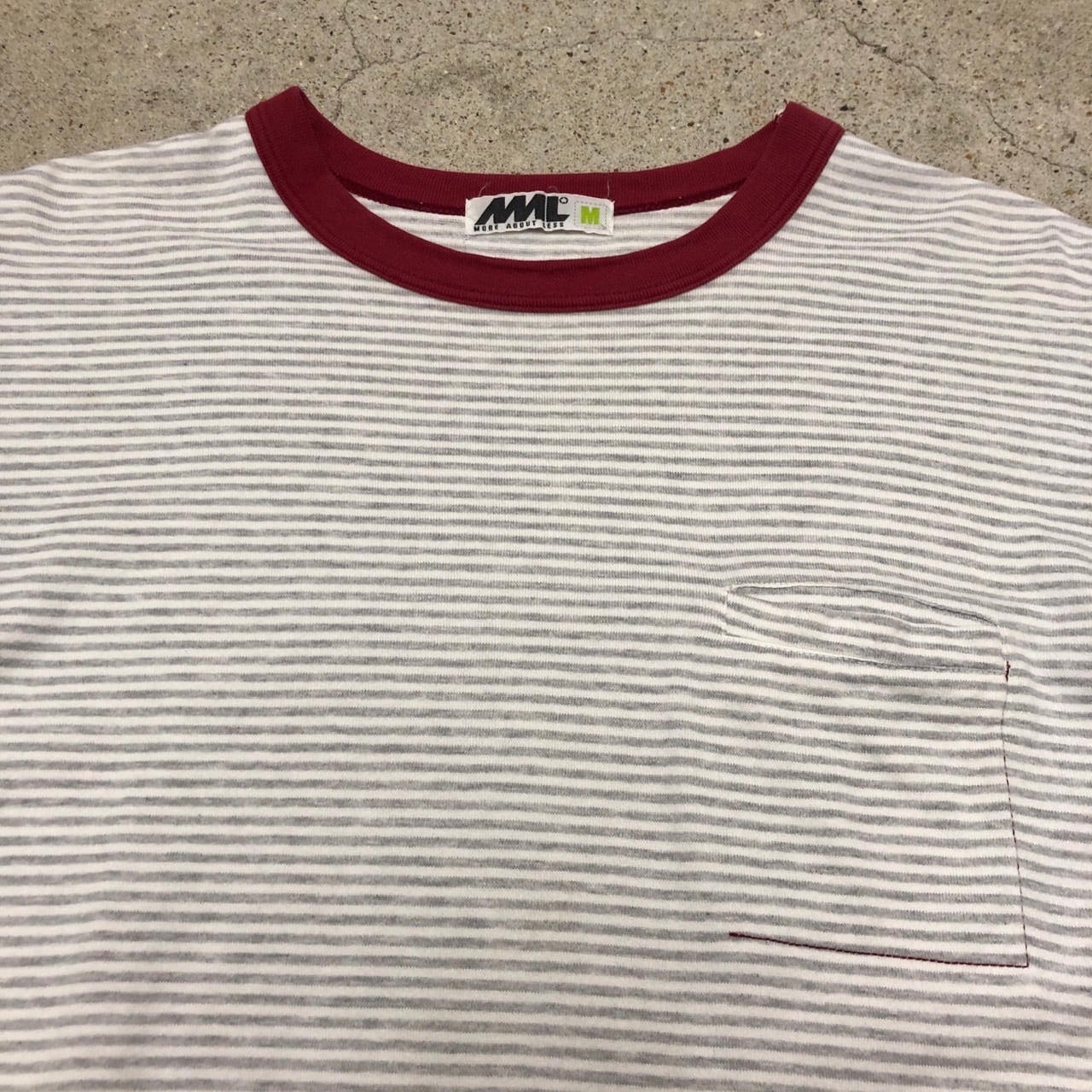 00s MORE ABOUT LESS/Border Pocket Tee/M/ボーダー柄ポケT/Tシャツ/リンガーT/グレー/モアアバウトレス/GOODENOUGH/ELECTRIC COTTAGE/FINESSE/裏原/古着/アーカイブ