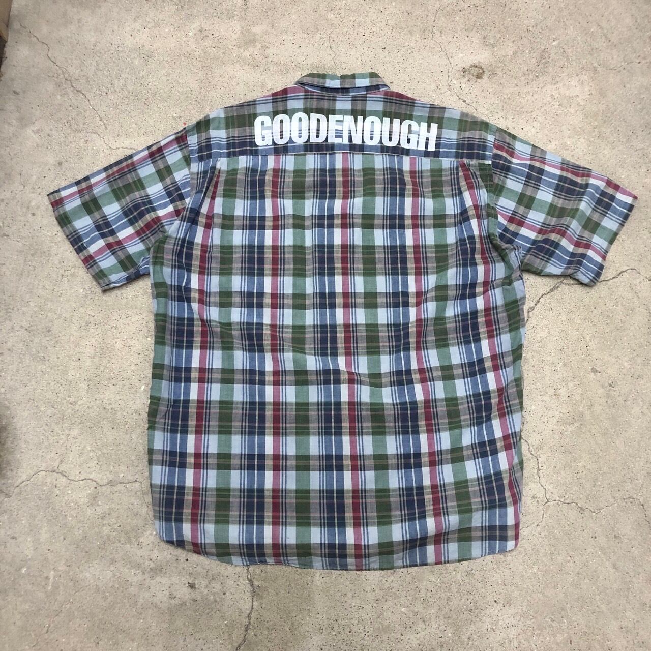 90s GOODENOUGH/Logo print Check BD S/S Shirt/L相当/青タグ/チェック柄/ボタンダウンシャツ/半袖シャツ/プルオーバー/GDEH/グッドイナフ/裏原/古着/アーカイブ