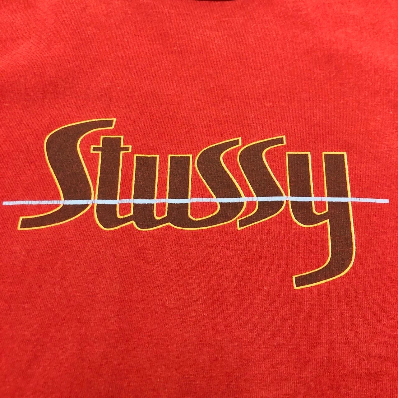 90s OLD STUSSY/Logo print Tee/USA製/白タグ/M/ロゴプリントT/Tシャツ/レッド/ステューシー/オールドステューシー