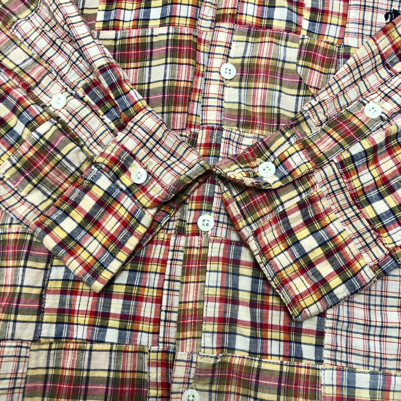90s OLD STUSSY/Patchwork L/S Shirt/INDIA製/紺タグ/L/1996年/パッチワーク/長袖シャツ/刺繍ロゴ/マルチカラー/ステューシー/オールドステューシー/古着/ヴィンテージ/アーカイブ