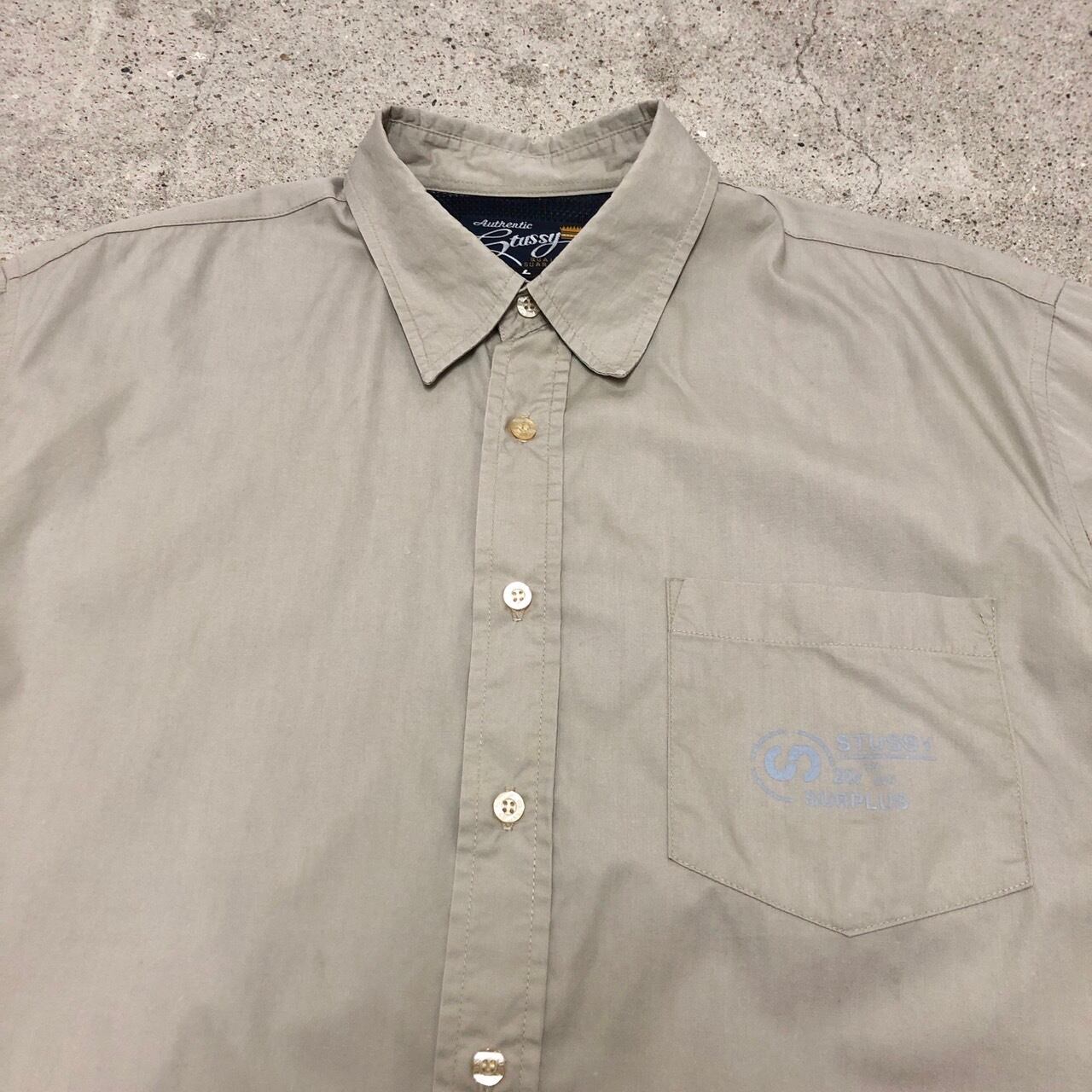 90s OLD STUSSY/SURPLUS S/S Shirt/USA製/紺タグ/L/半袖ワークシャツ/メッシュ/カーキ/ステューシー/オールドステューシー/古着/ヴィンテージ/アーカイブ