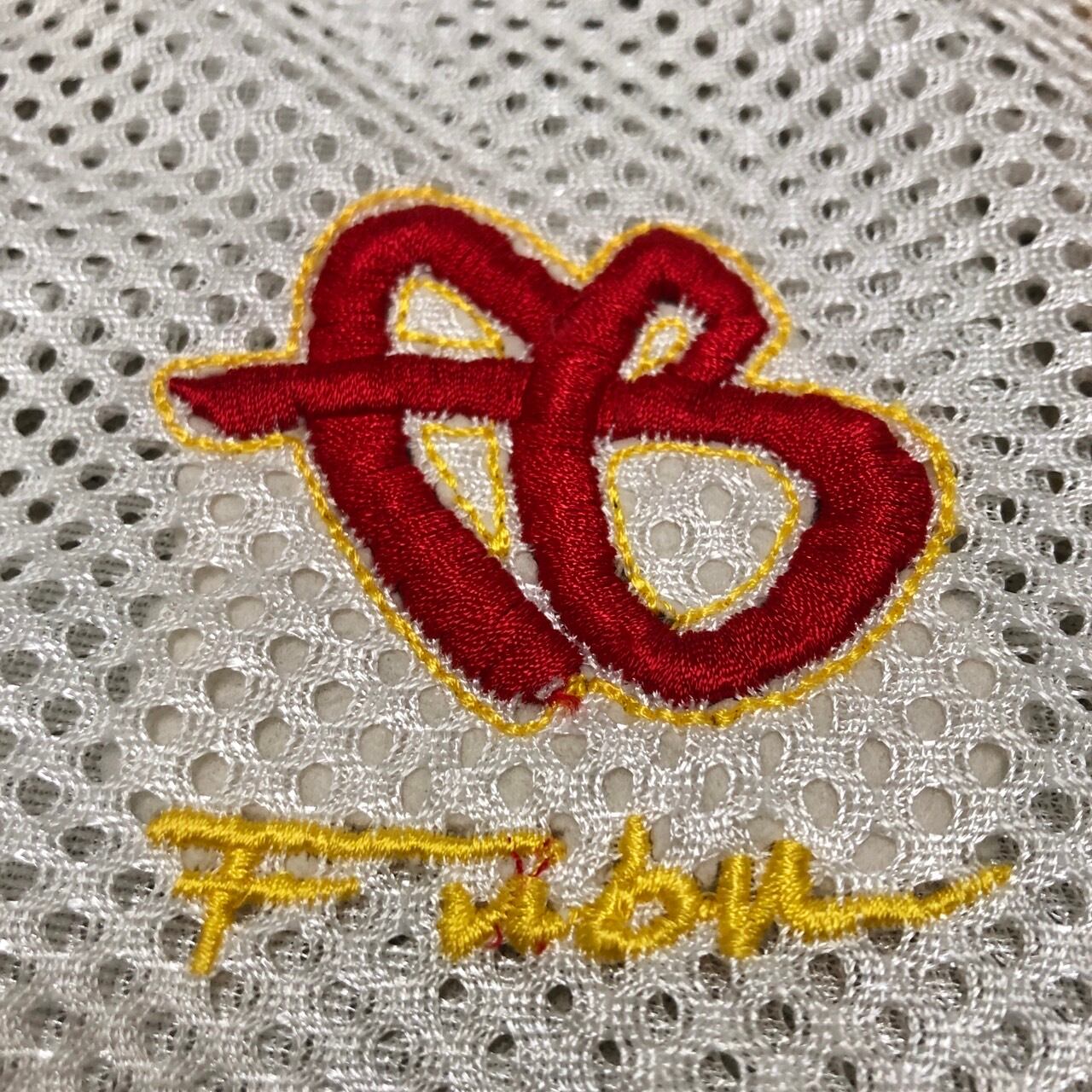 90s FUBU/Mesh Game Shirt/USA製/XL/メッシュゲームシャツ/FB/刺繍ロゴ/ホワイト/ネイビー/フブ/HIPHOP/ストリート/古着