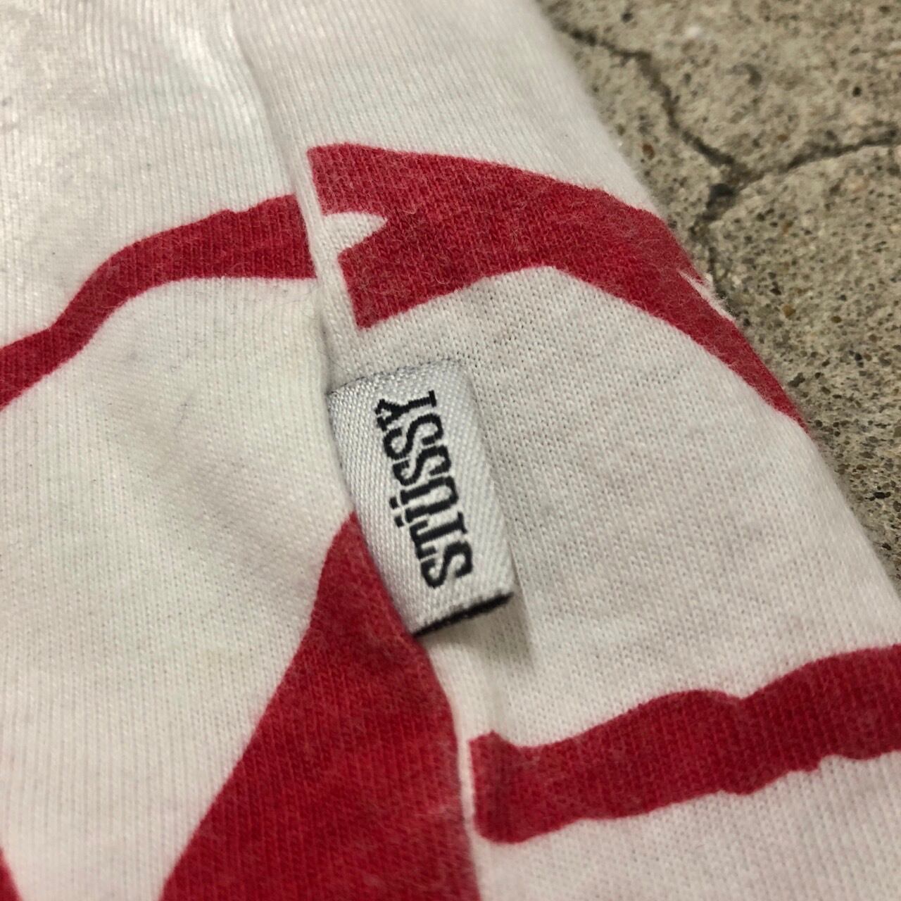 00s STUSSY × FUTURA/Raglan Tee/S/アトミックサークルプリント/ラグランT/Tシャツ/ホワイト/レッド/フューチュラコラボ/ステューシー/オールドステューシー/古着/アーカイブ
