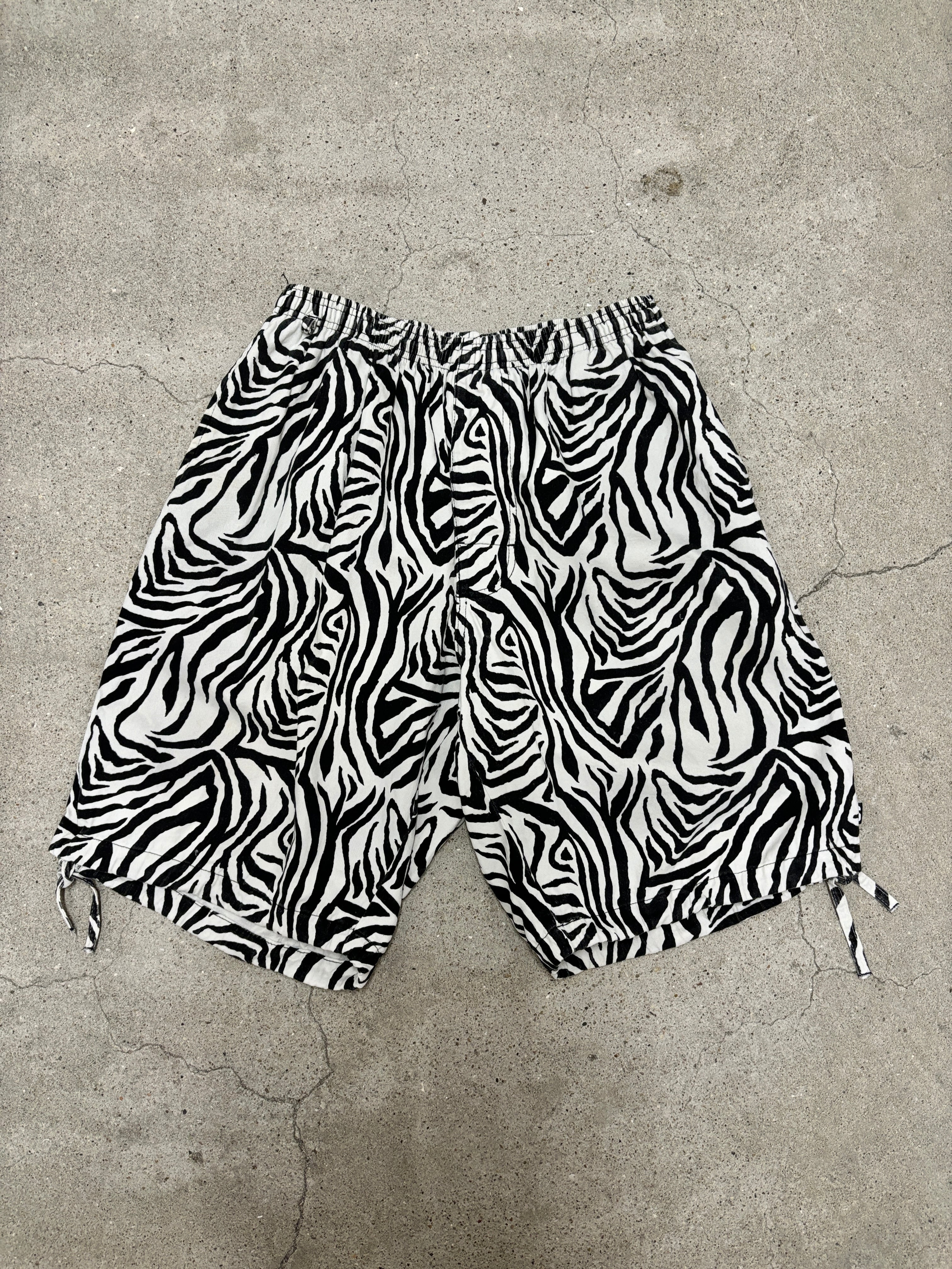 00s OLD STUSSY/Zebra pattern Easy Shorts/USA製/L/ゼブラ柄/イージーショーツ/ショートパンツ/ブラック/ホワイト/ステューシー/オールドステューシー/古着/アーカイブ