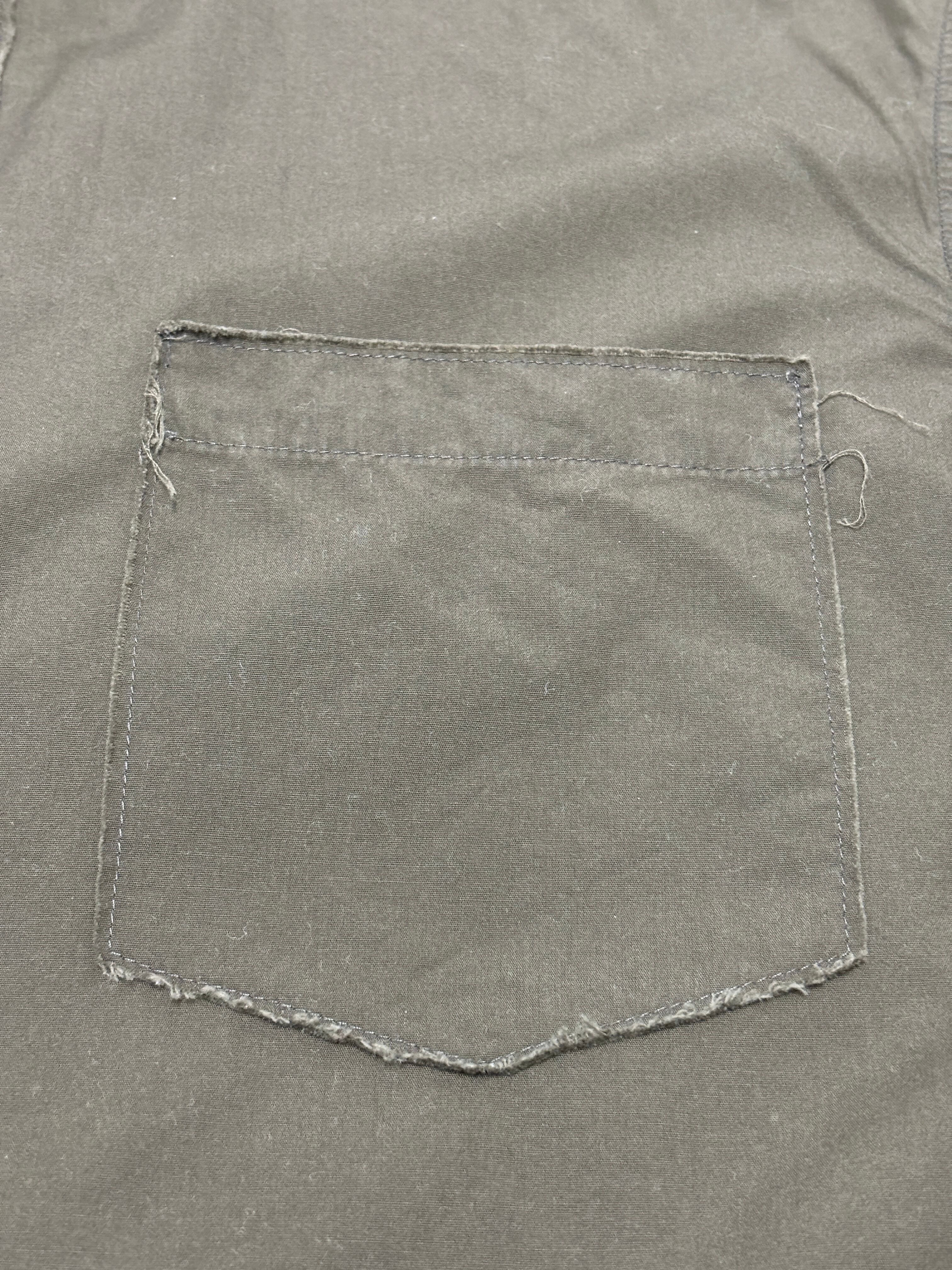 切りっぱなしデザイン、袖のストックロゴがポイント。