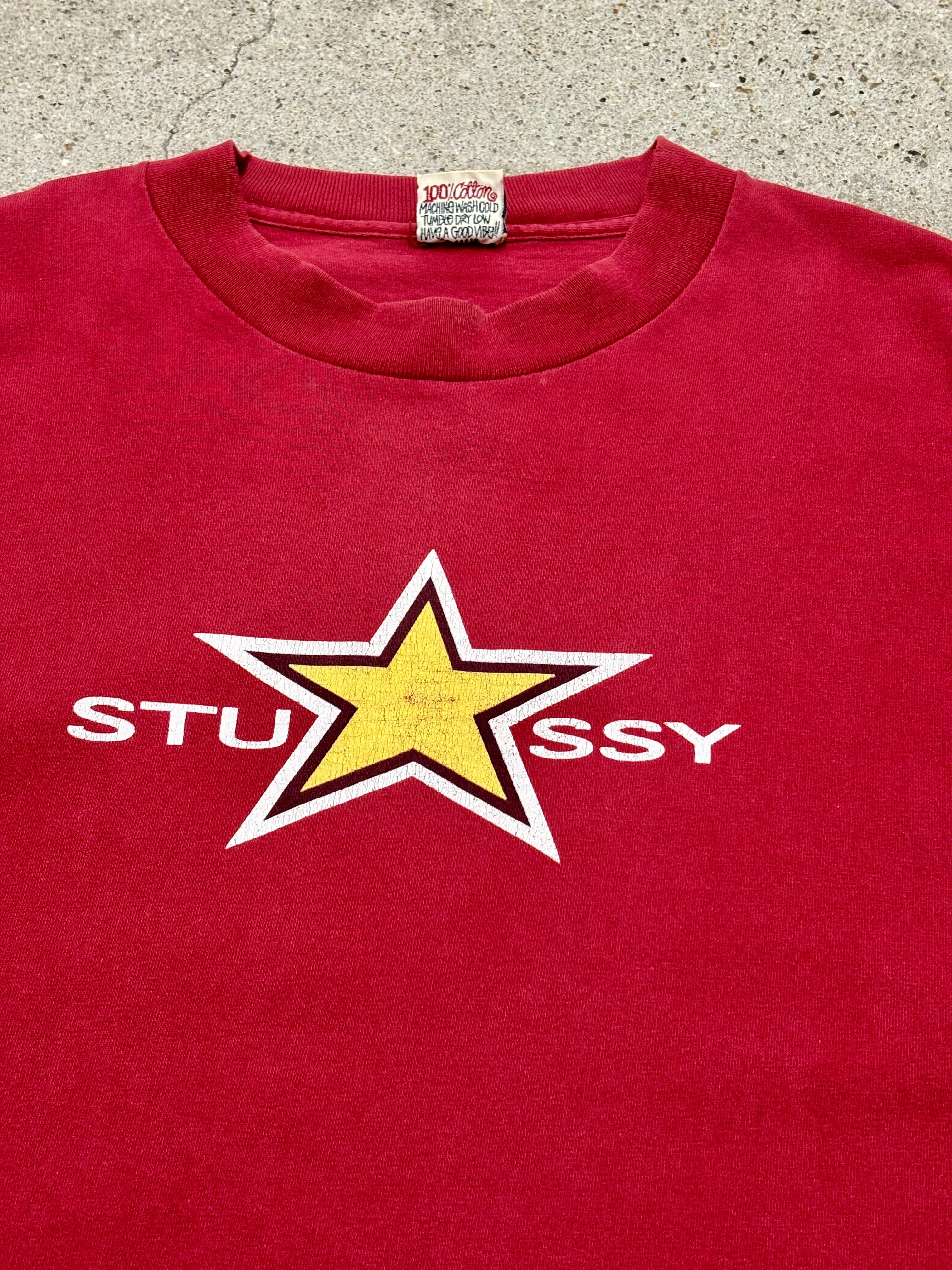 90s OLD STUSSY/STAR print Tee/USA製/白タグ/XL/スタープリント/ロゴプリント/Tシャツ/レッド/ステューシー/オールドステューシー