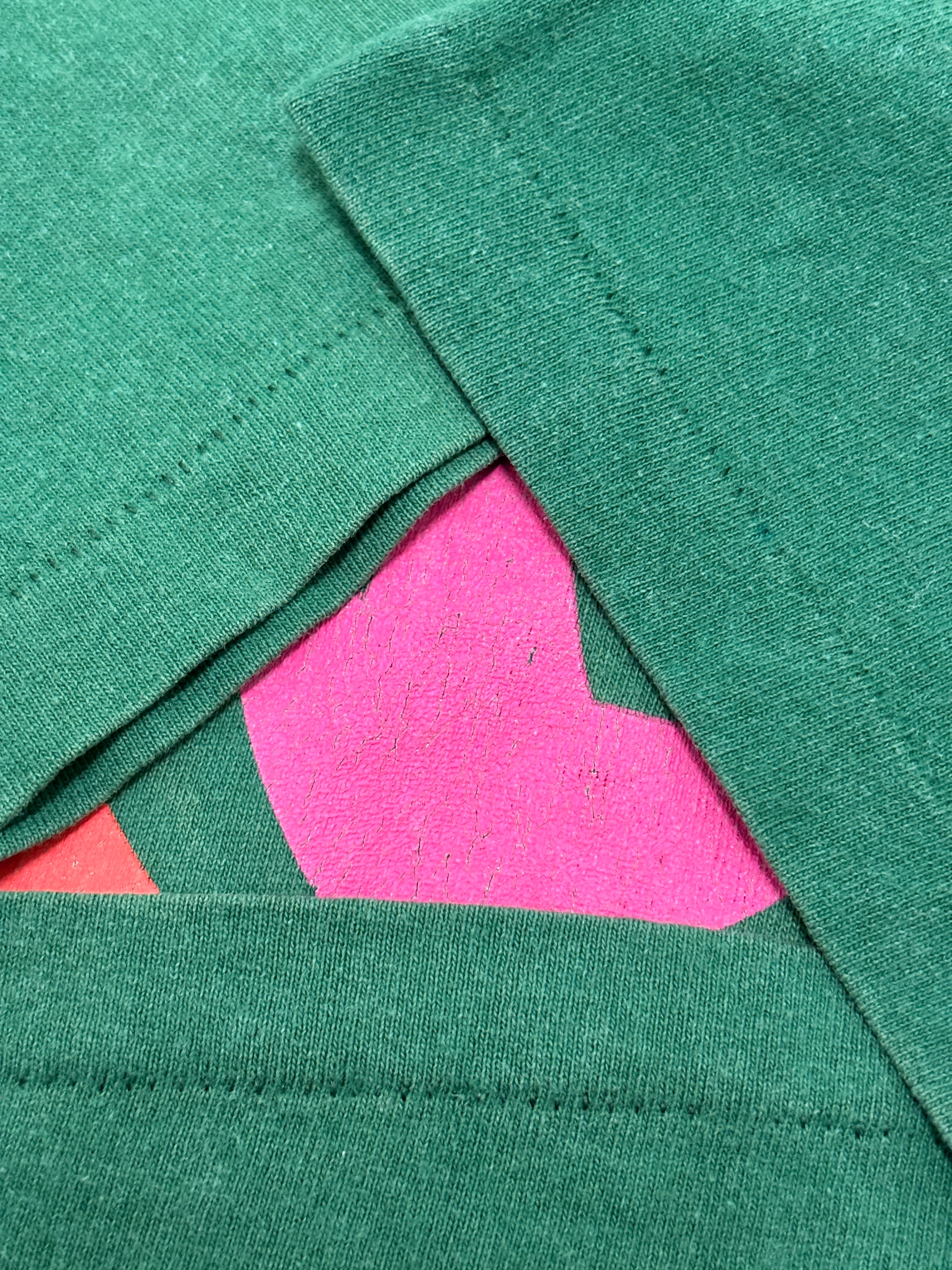 中古、古着特有の着用感があり、左脇に1か所ピンホールがあります。