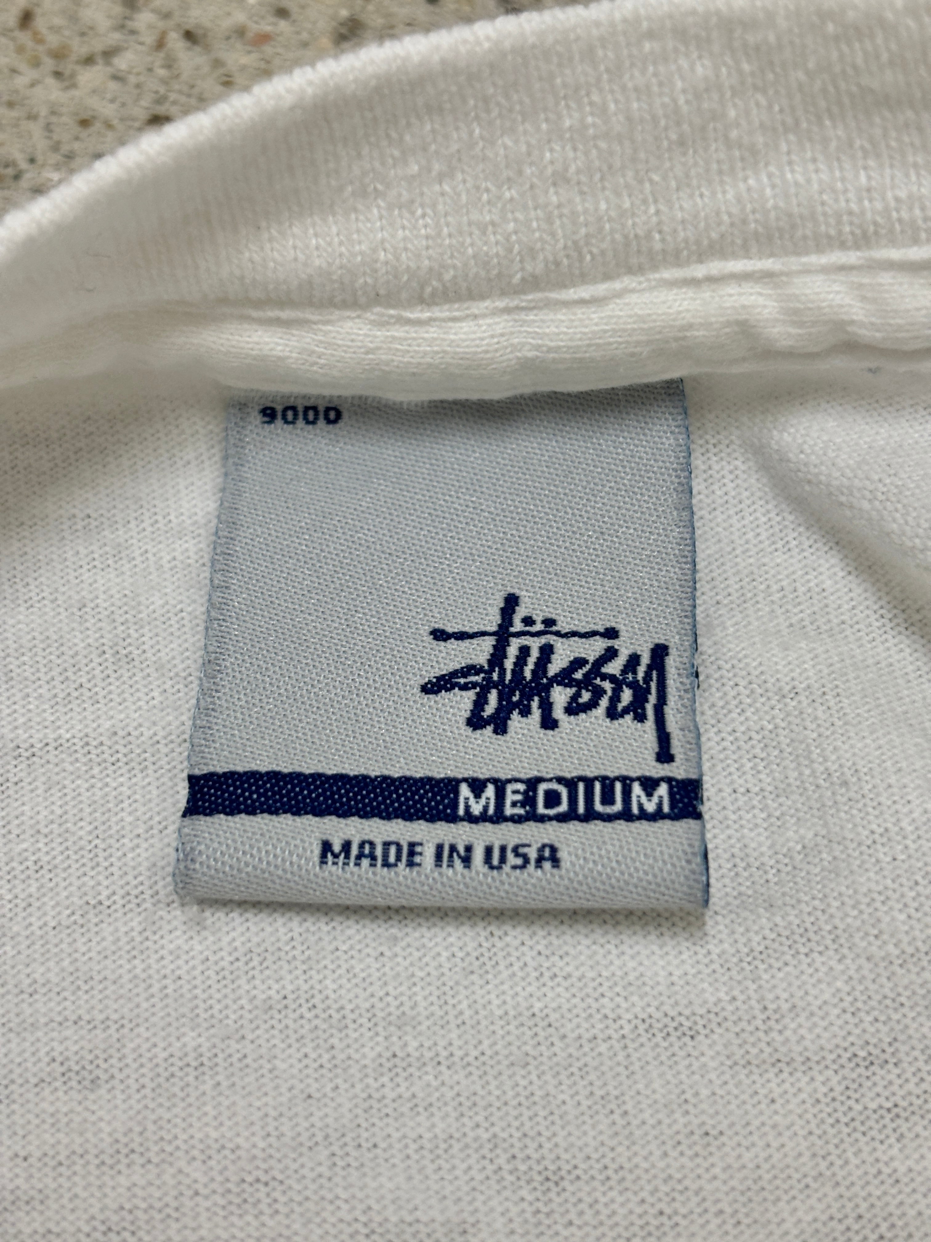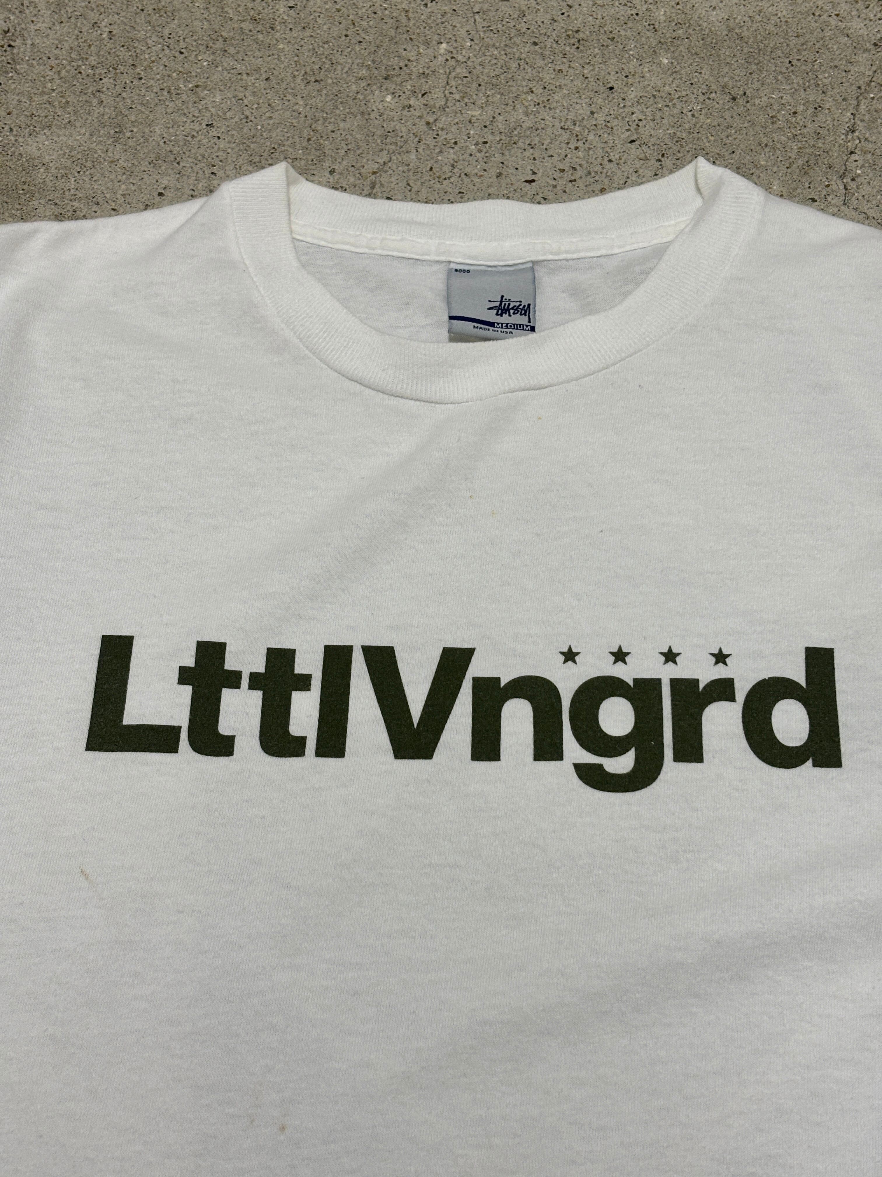 00s OLD STUSSY × WTAPS/LttlVngrd print Tee/USA製/銀タグ/M/プリントT/Tシャツ/裏コラボ/ホワイト/ダブルタップスコラボ/ステューシー/オールドステューシー