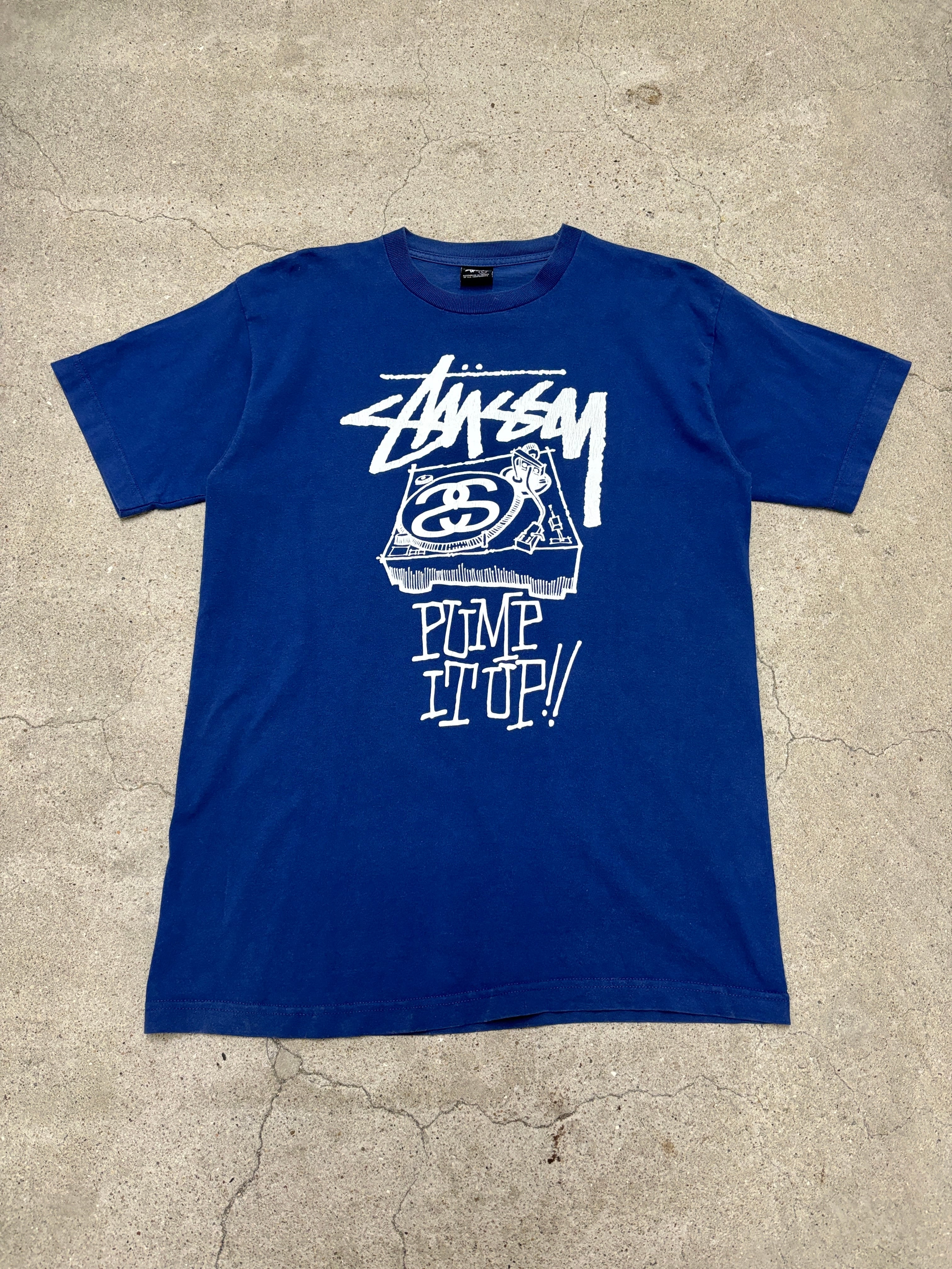 00s OLD STUSSY/PUMP IT UP print Tee/L/ロゴプリントT/Tシャツ/ストックロゴ/ターンテーブル/ブルー/ステューシー/オールドステューシー/古着/アーカイブ