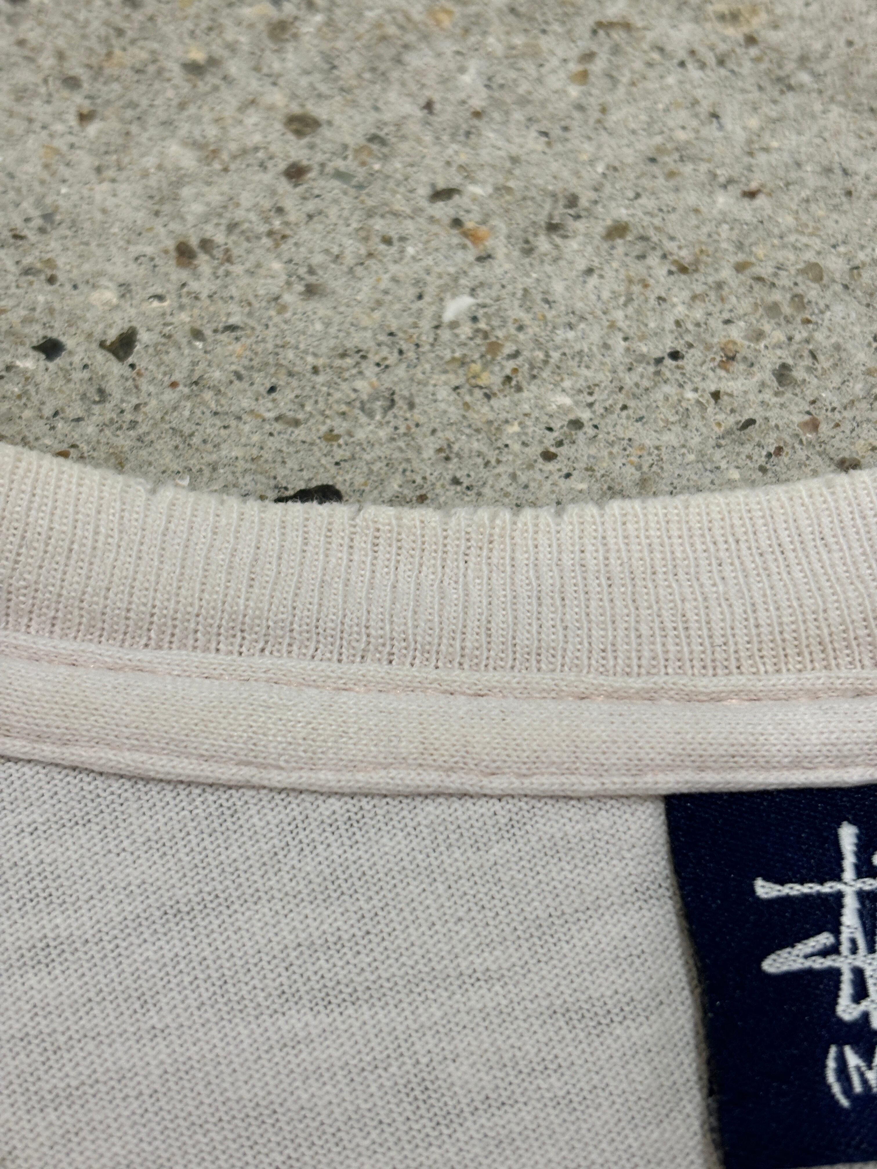 中古、古着特有の着用感があり、首周りに細かいダメージ