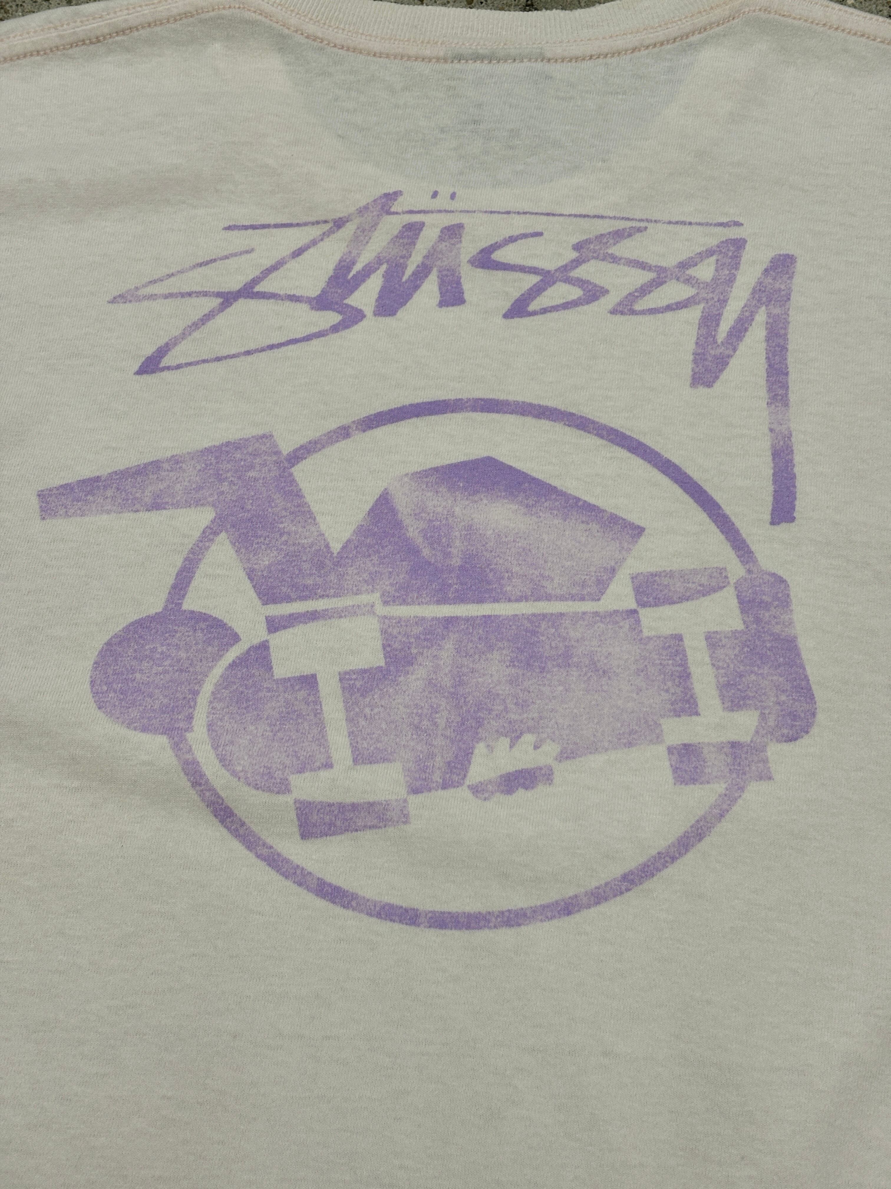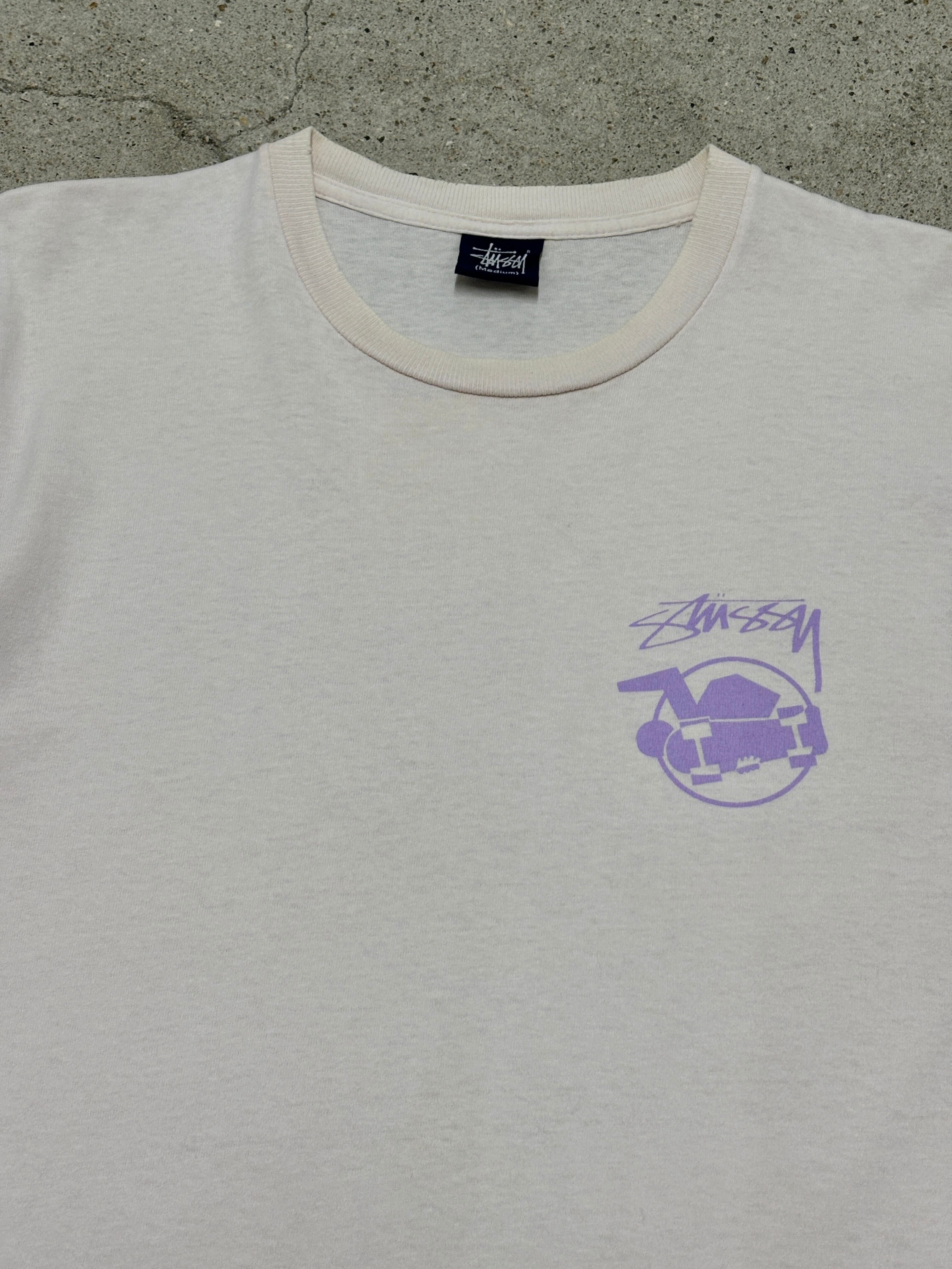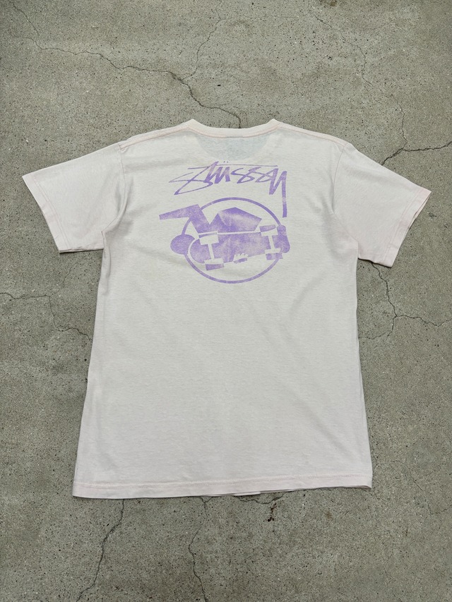 00s OLD STUSSY/Skate man print Tee/紺タグ/M/スケートマンプリントT/Tシャツ/ピンク/パープル/ステューシー/オールドステューシー/古着/アーカイブ