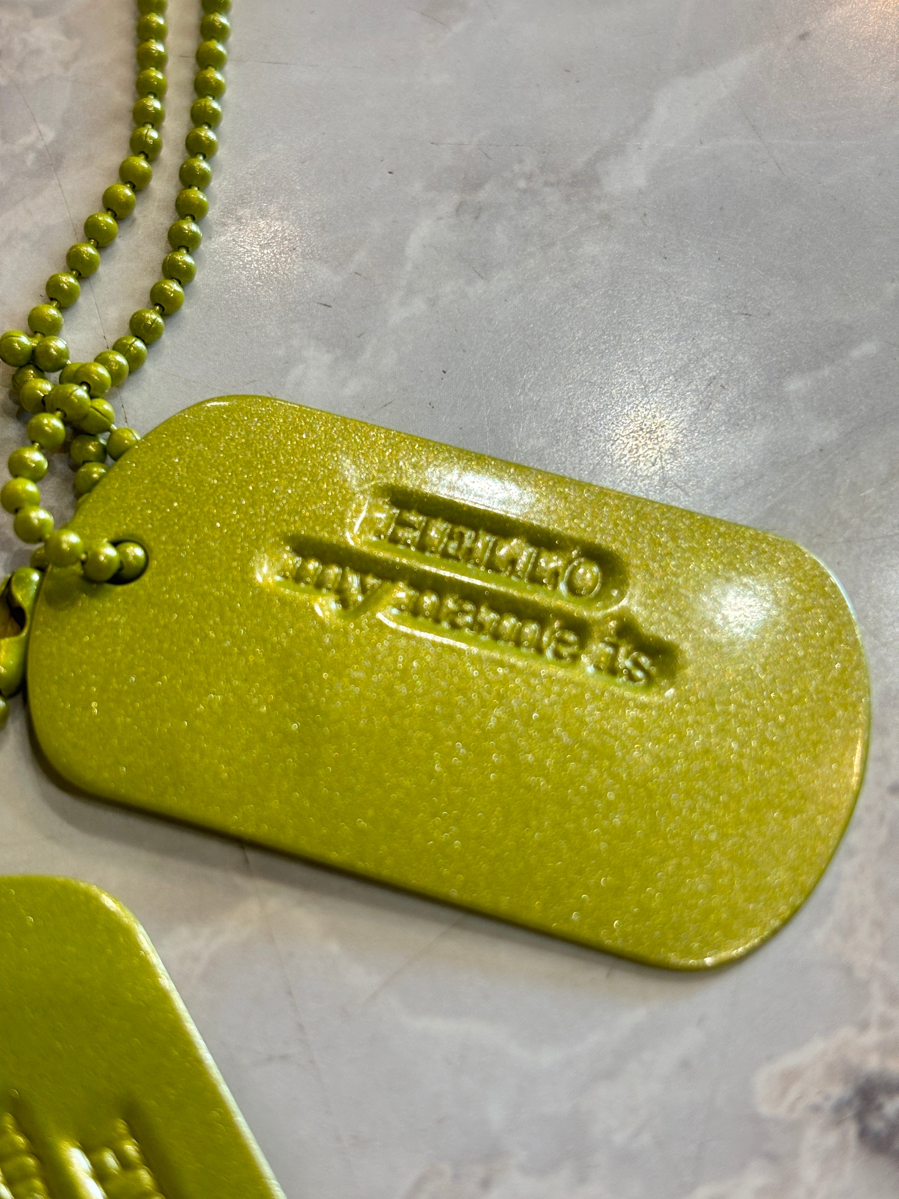 00s HECTIC/Dog Tag Necklace/ドッグタグ/ネックレス/ロゴ刻印/ライムグリーン/アクセサリー/ヘクティク/裏原/アーカイブ