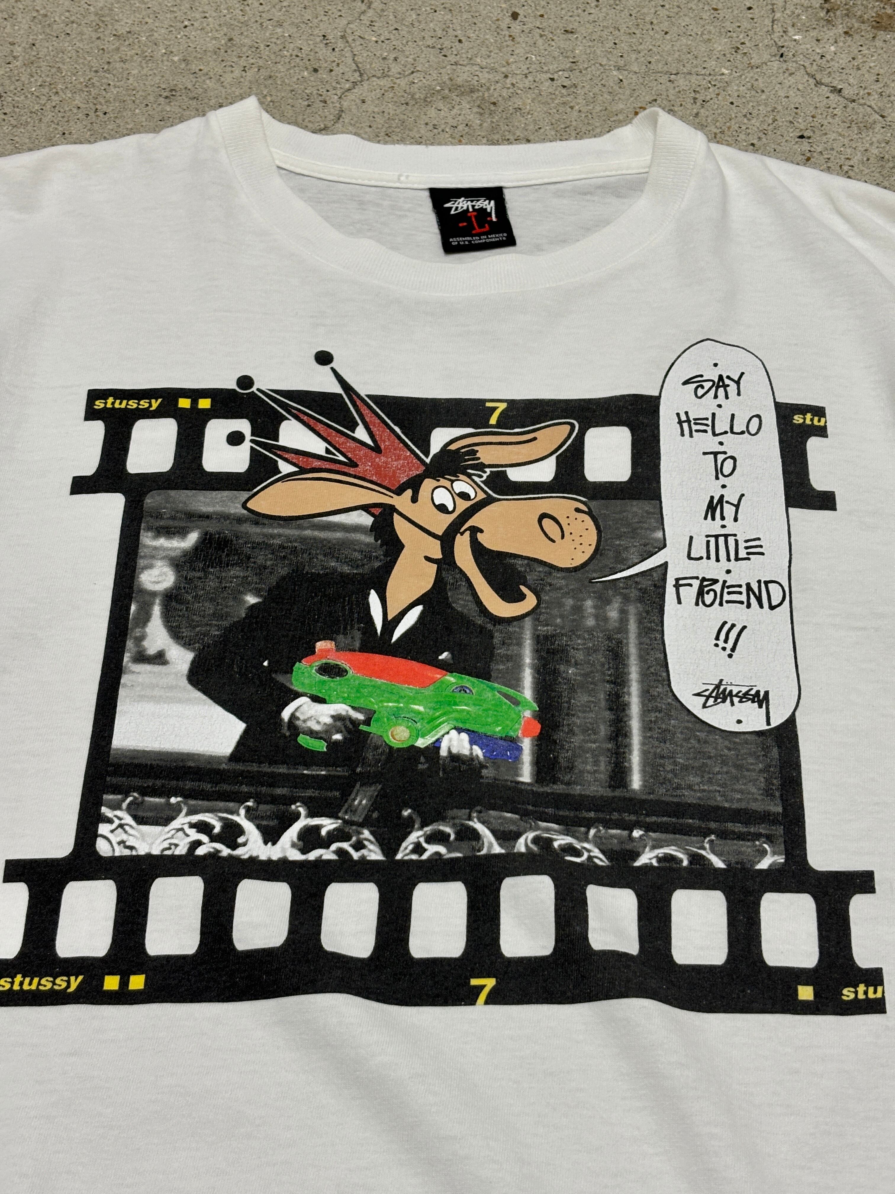 00s STUSSY/LA BREA SCARFACE parody print Tee/L/スカーフェイスパロディー/Tシャツ/映画/ホワイト/ステューシー/オールドステューシー/古着/アーカイブ