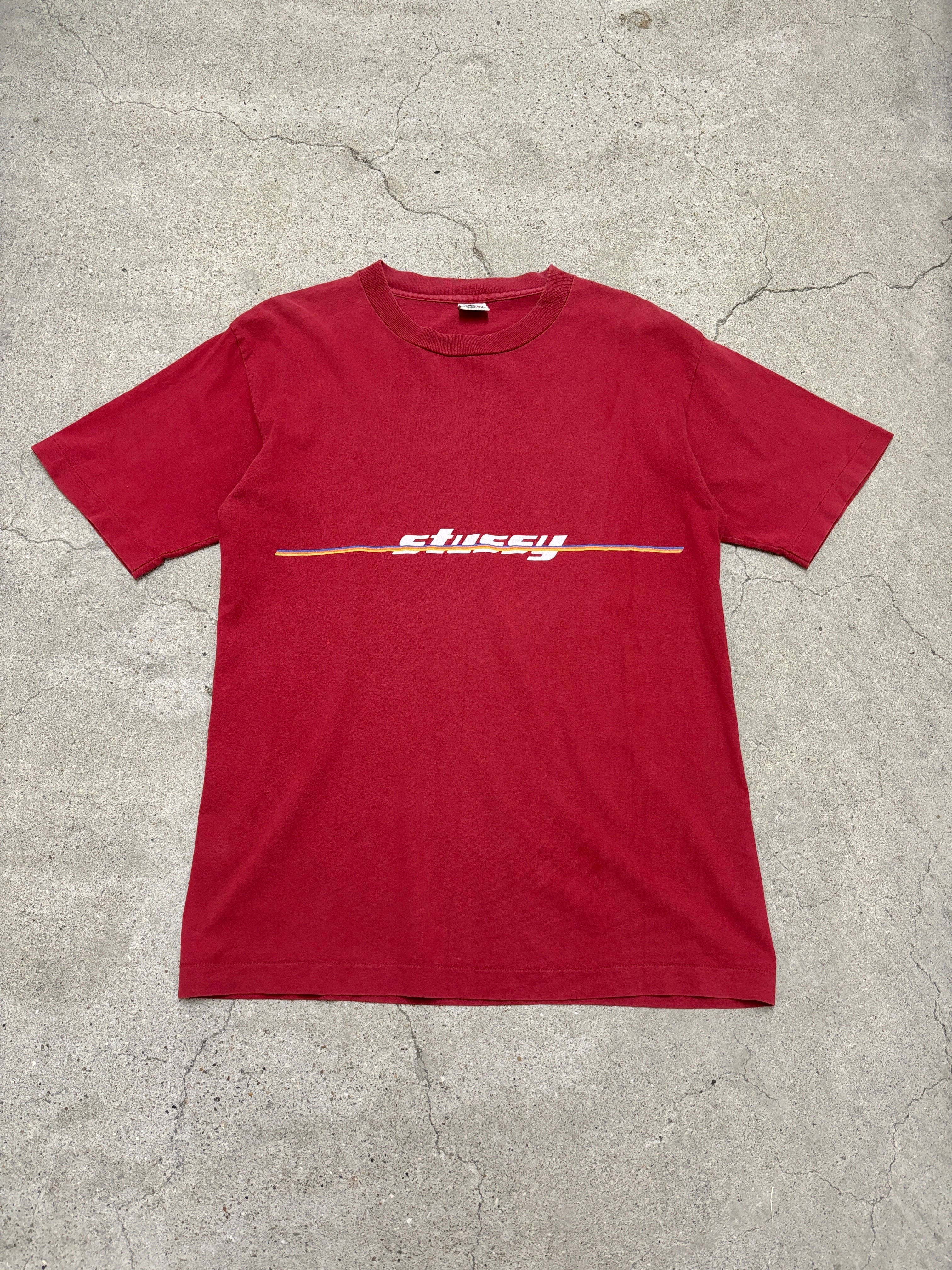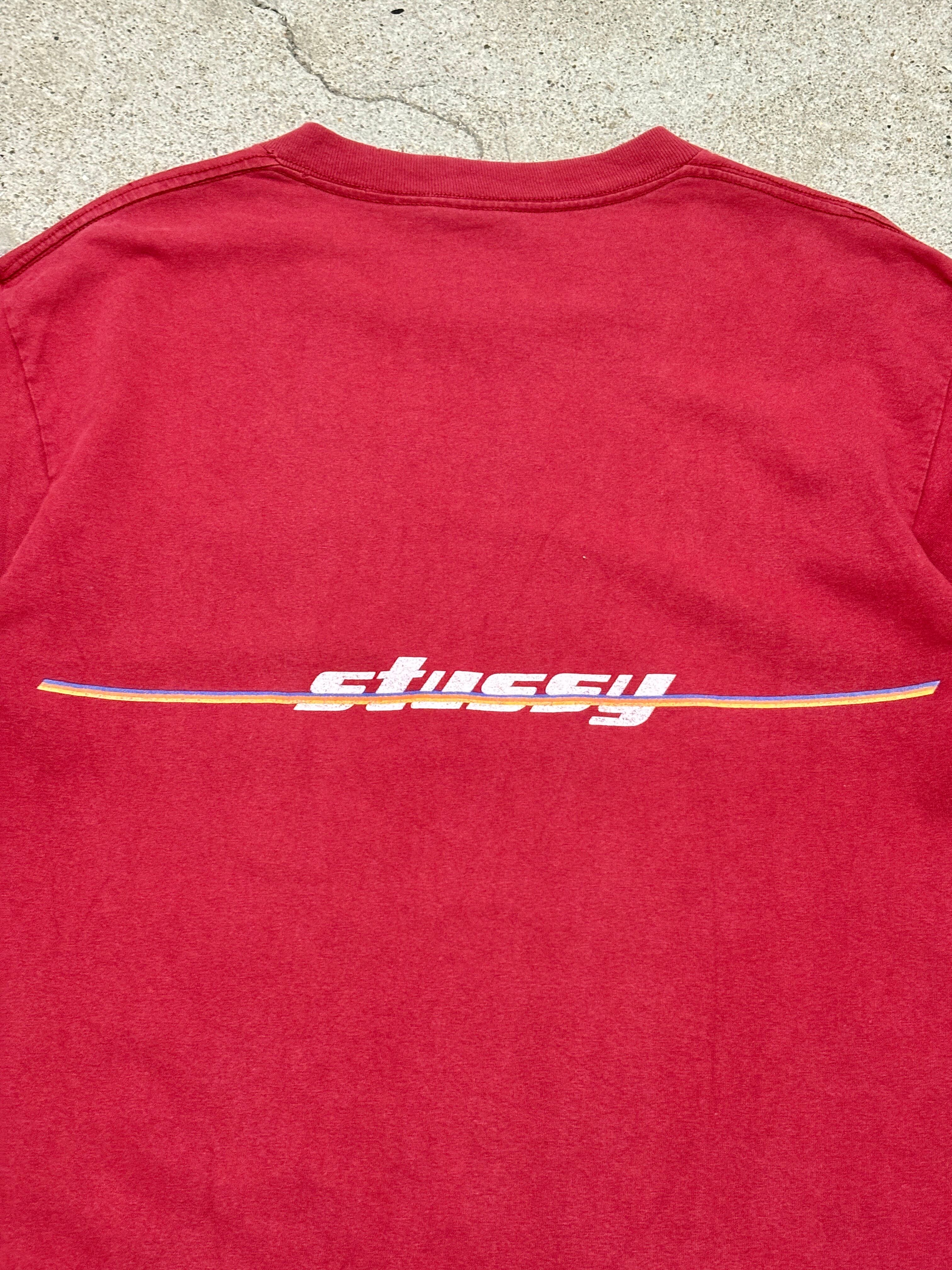 90s OLD STUSSY/Logo print Tee/USA製/白タグ/L/ロゴプリントT/Tシャツ/両面プリント/ボルドー/ステューシー/オールドステューシー