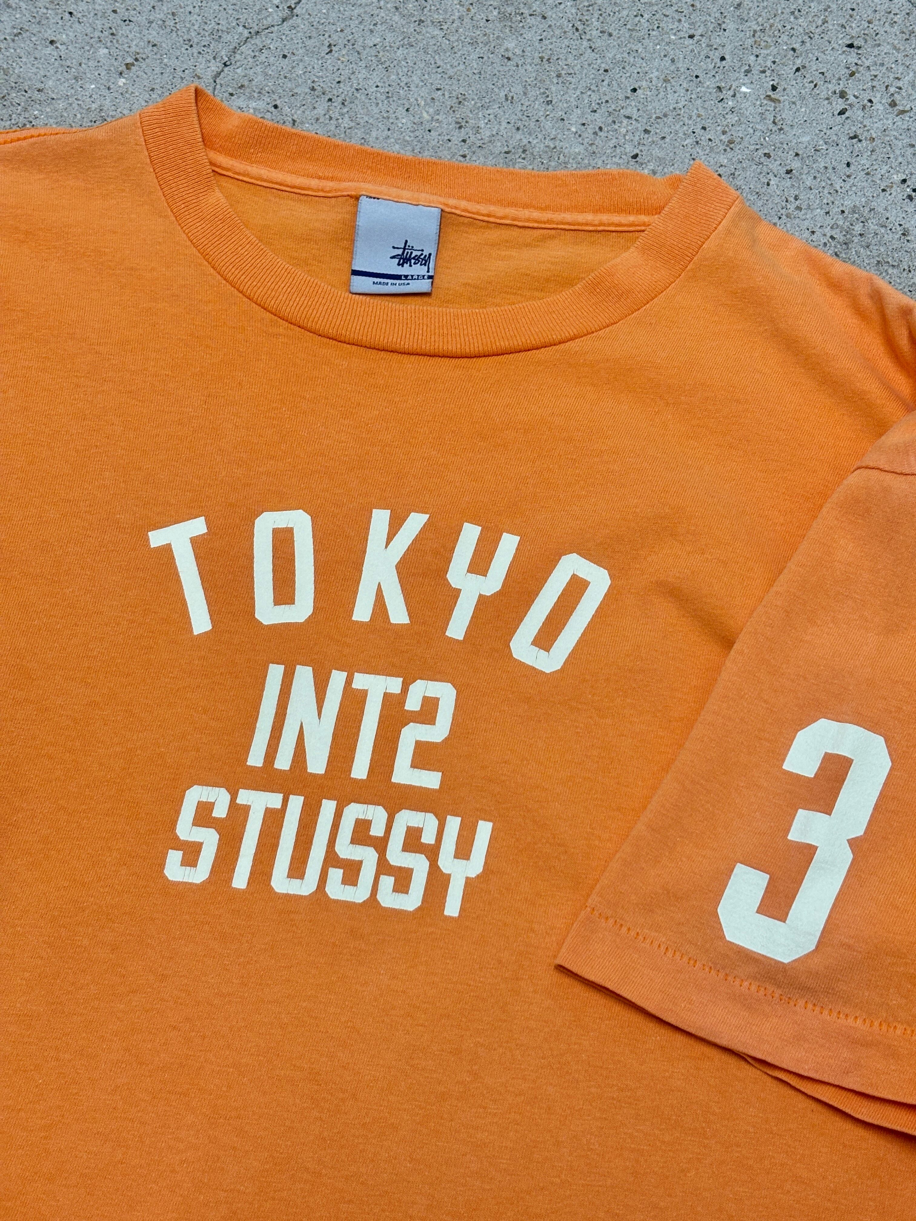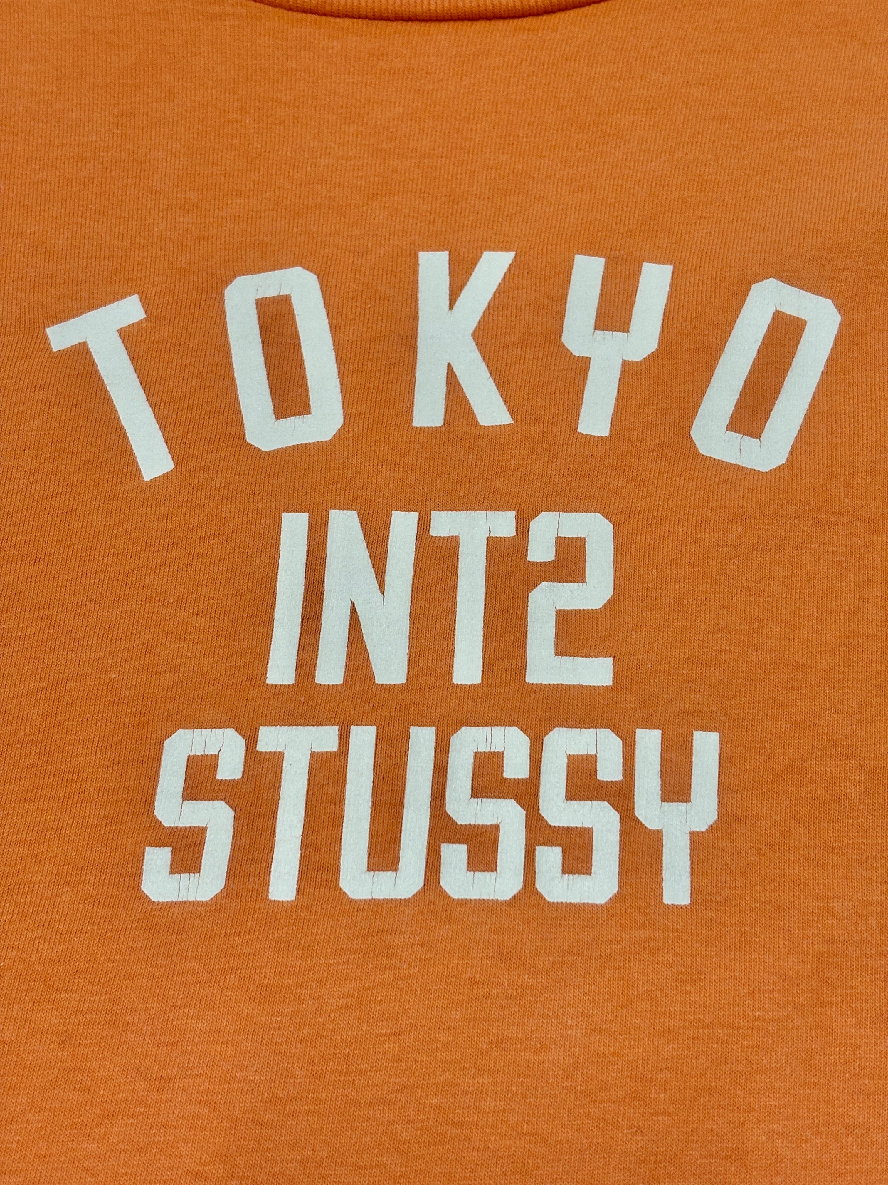 00s OLD STUSSY/TOKYO INT2 print Tee/USA製/銀タグ/L/都市シリーズプリント/Tシャツ/オレンジ/3連プリント/ステューシー/オールドステューシー