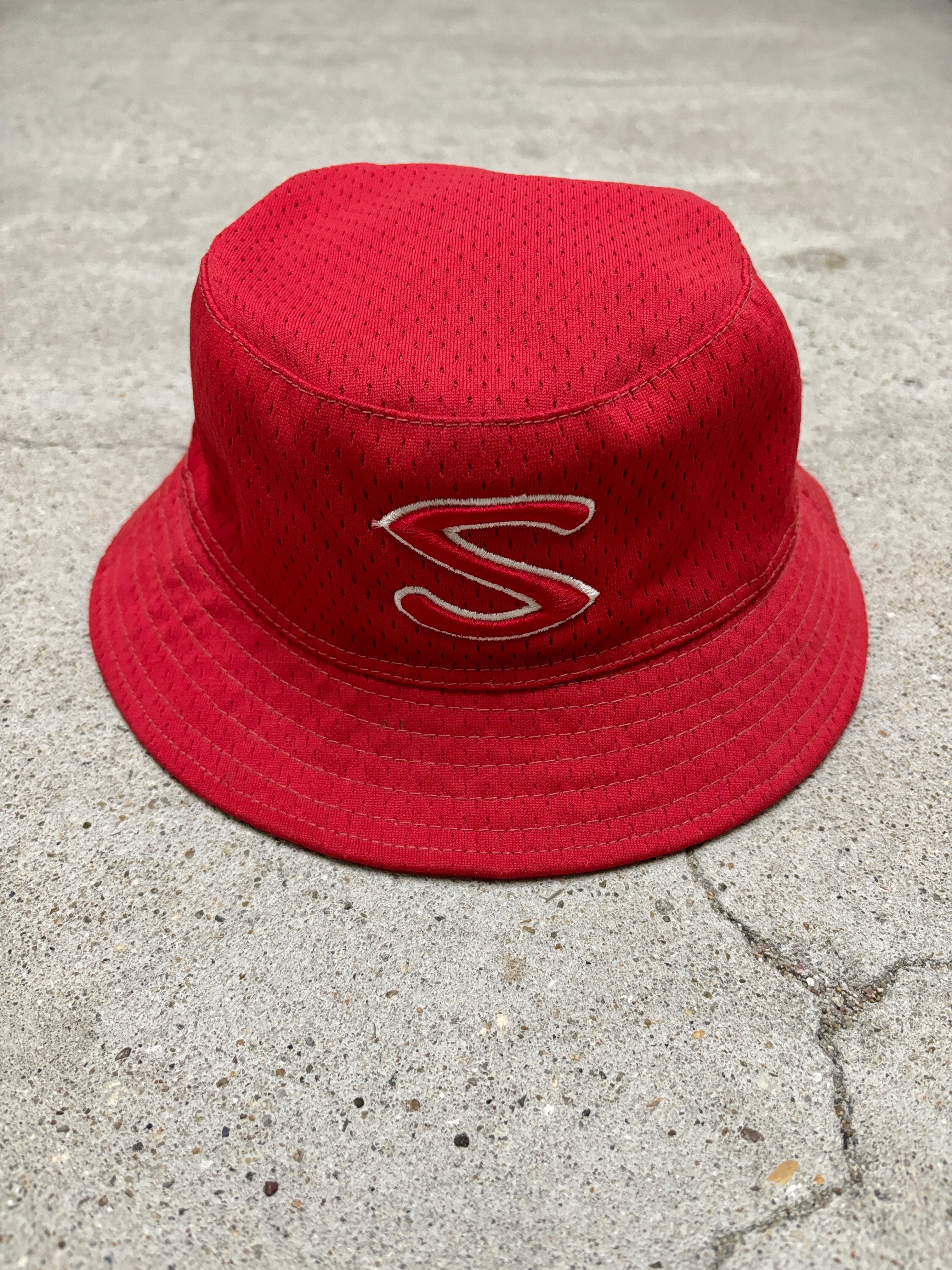 00s STUSSY/S Logo Bucket Hat/L/XL/Sロゴ/バケットハット/リバーシブル/レッド/ステューシー/オールドステューシー