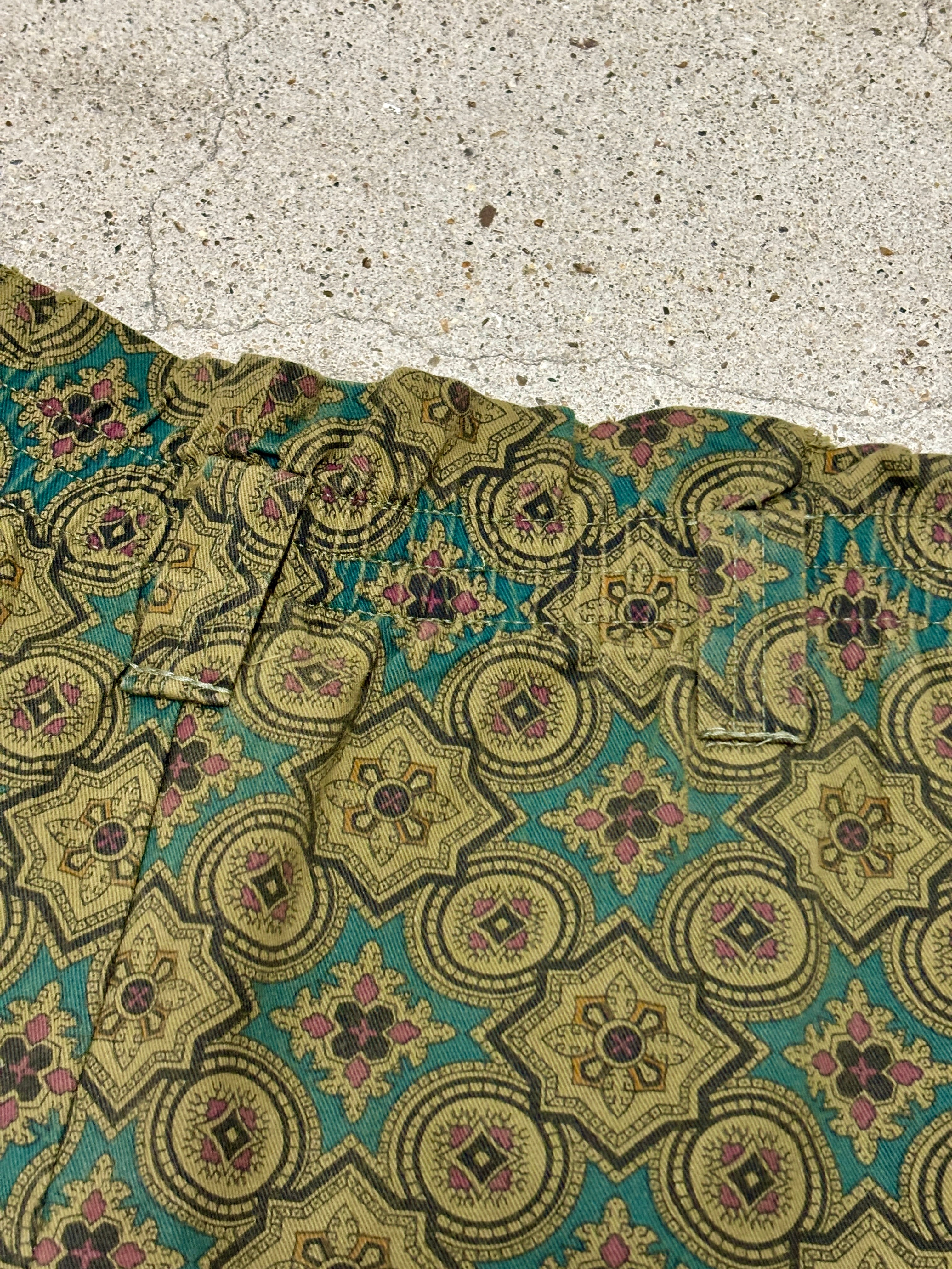 90s PINWHEELS/Multi print Easy pants/USA製/M/総柄イージーパンツ/ボトム/カーキ/古着/ヴィンテージ/レギュラー古着