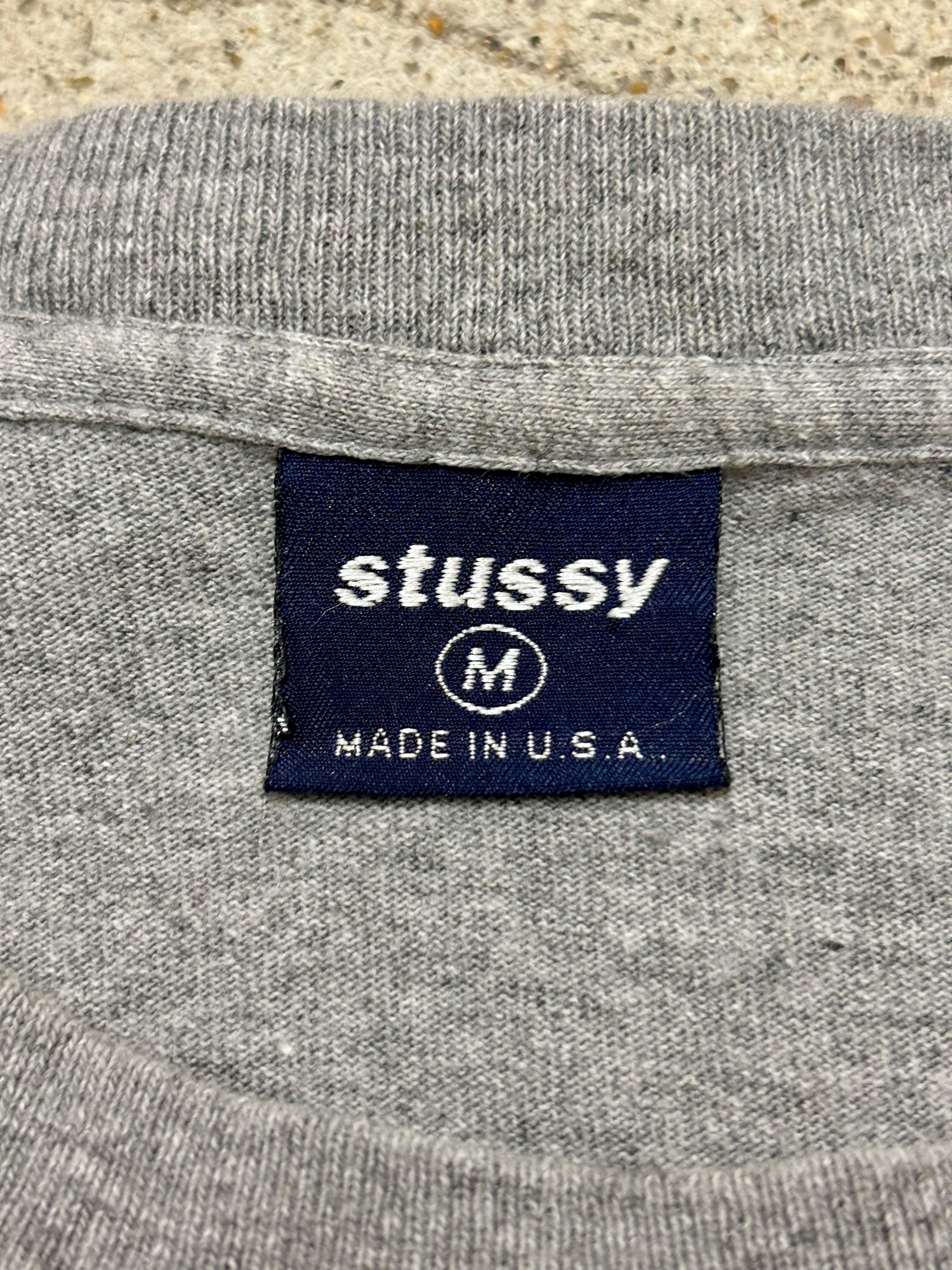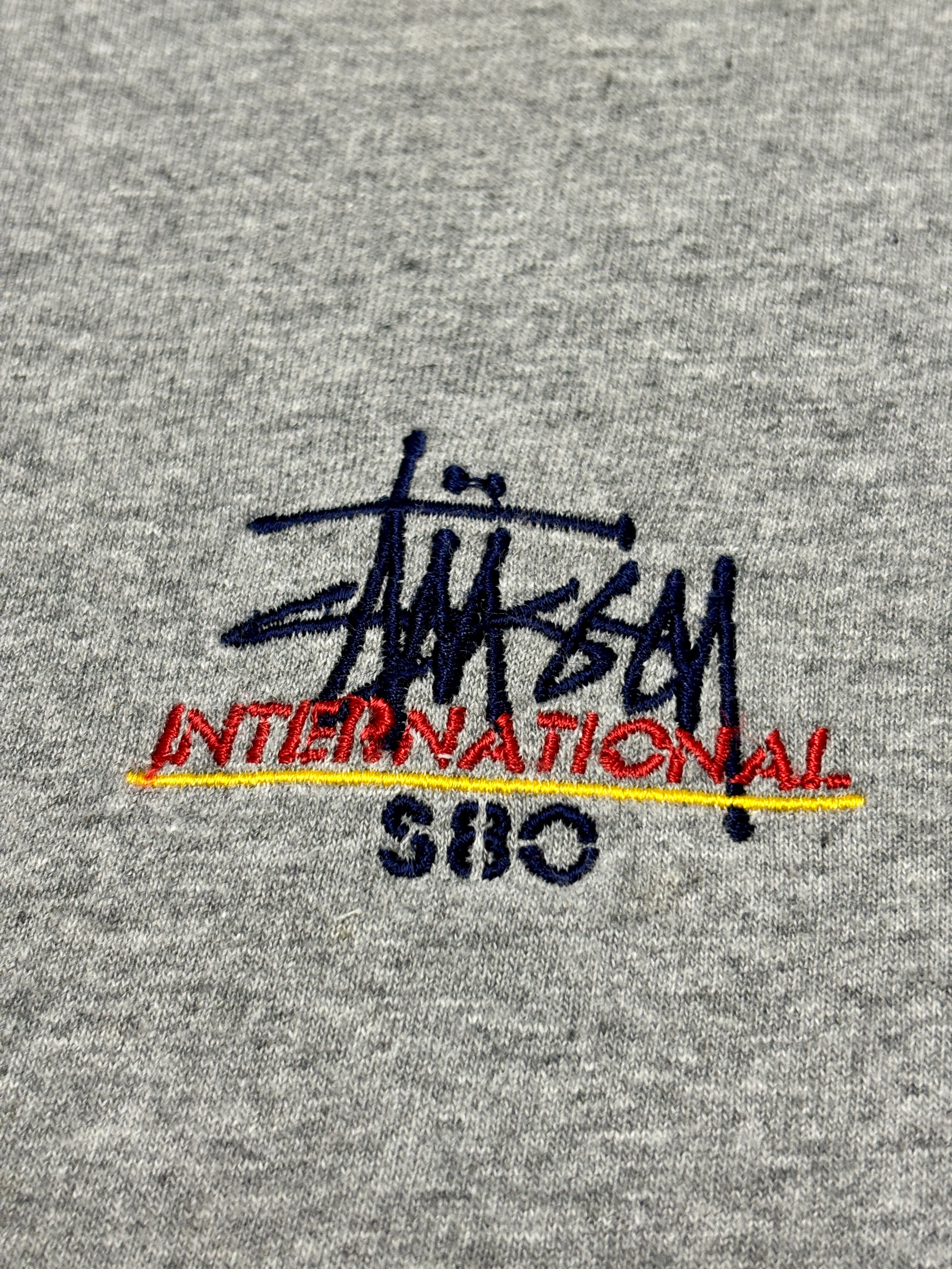 90s OLD STUSSY/Logo embroidery Tee/USA製/紺タグ/M/刺繍ロゴT/Tシャツ/ストックロゴ/INTERNATIONAL/グレー/ステューシー/オールドステューシー/古着/ヴィンテージ/アーカイブ