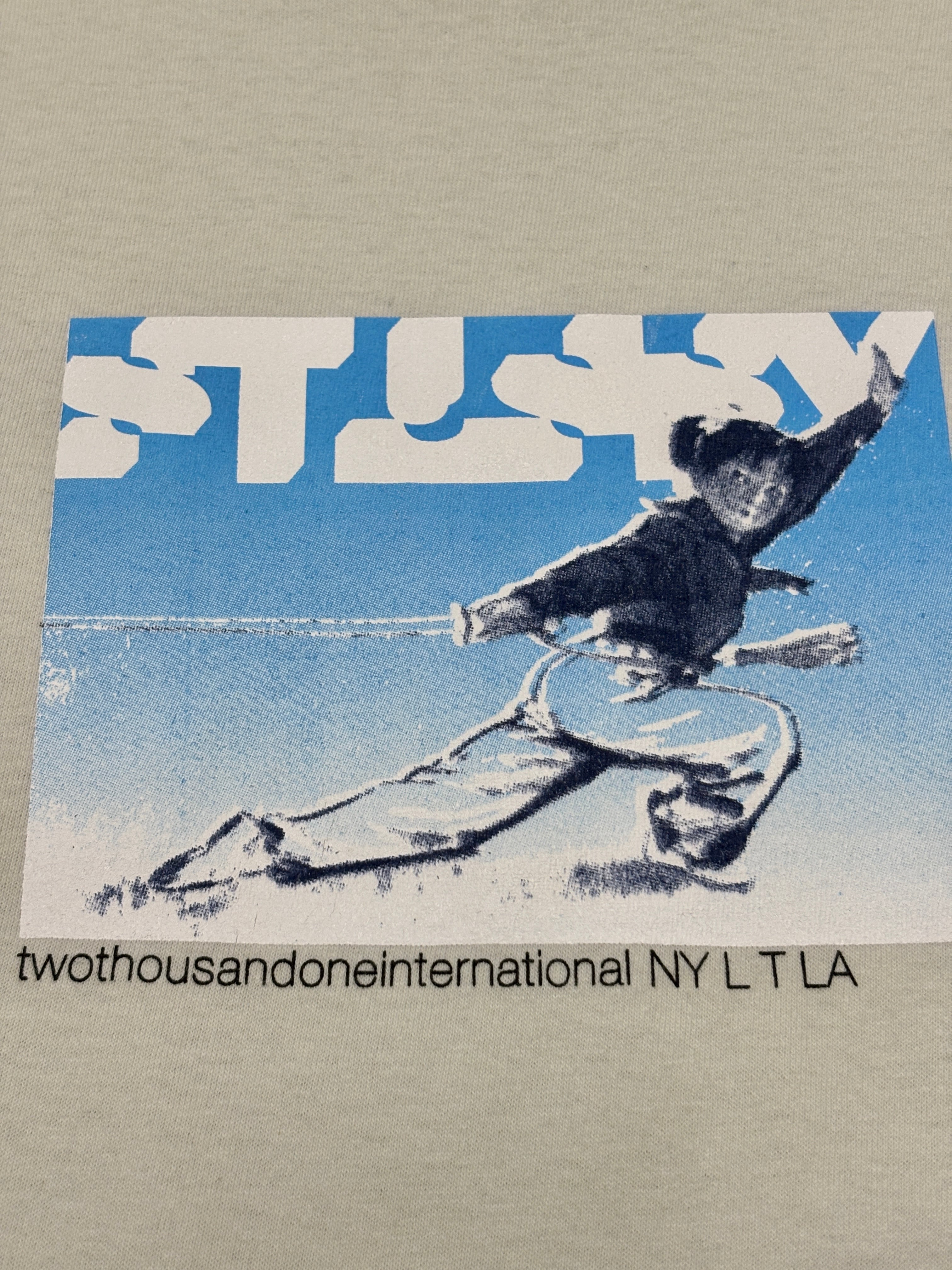 90s OLD STUSSY/Kung fu girl print Tee/USA製/紺タグ/M/カンフーガールプリントT/Tシャツ/アイボリー/ステューシー/オールドステューシー/古着/ヴィンテージ/アーカイブ