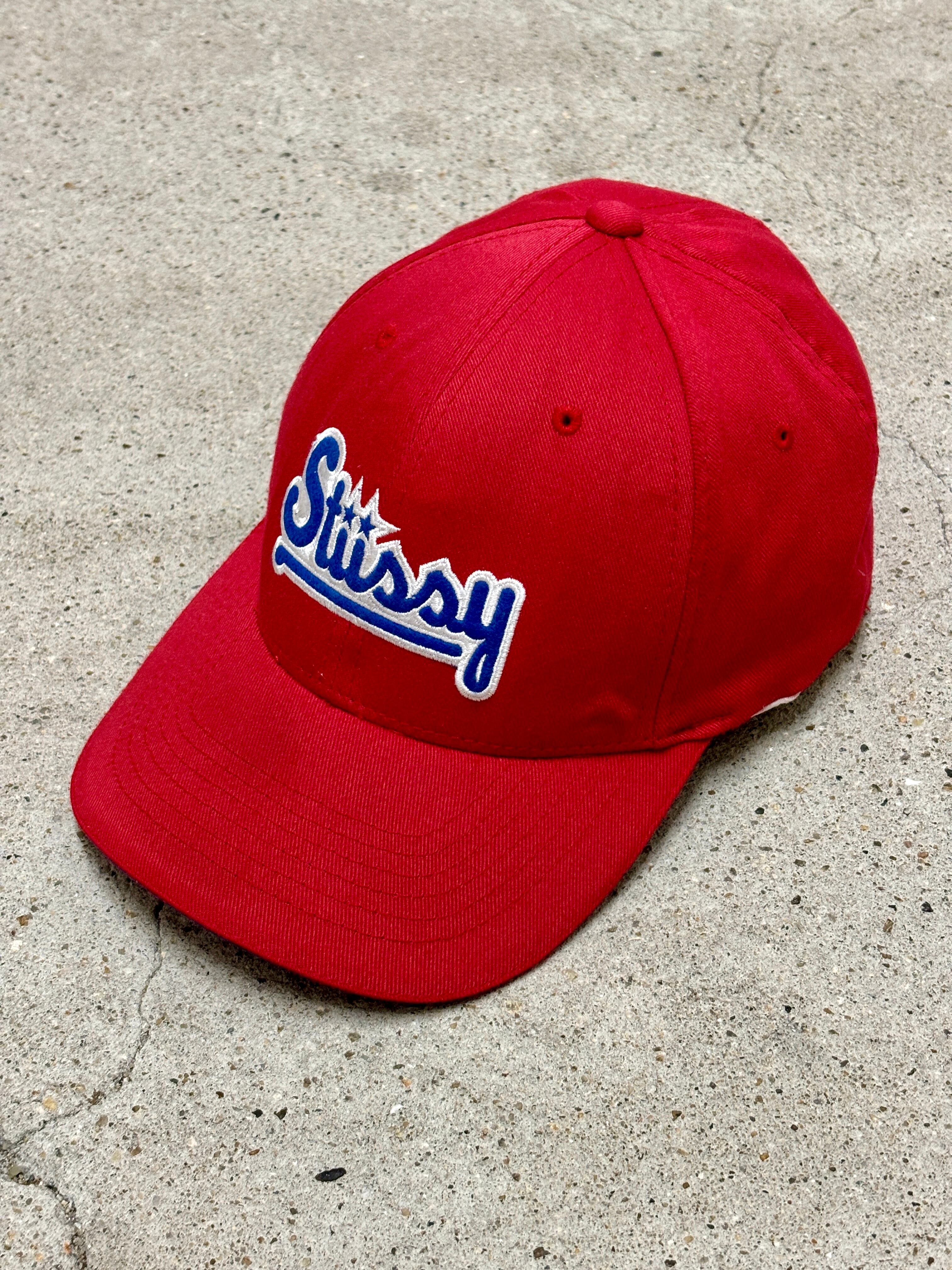 90~00s OLD STUSSY/Logo patch Cap/紺タグ/L-XL/ロゴパッチキャップ/6パネル/レッド/ステューシー/オールドステューシー/帽子/アーカイブ