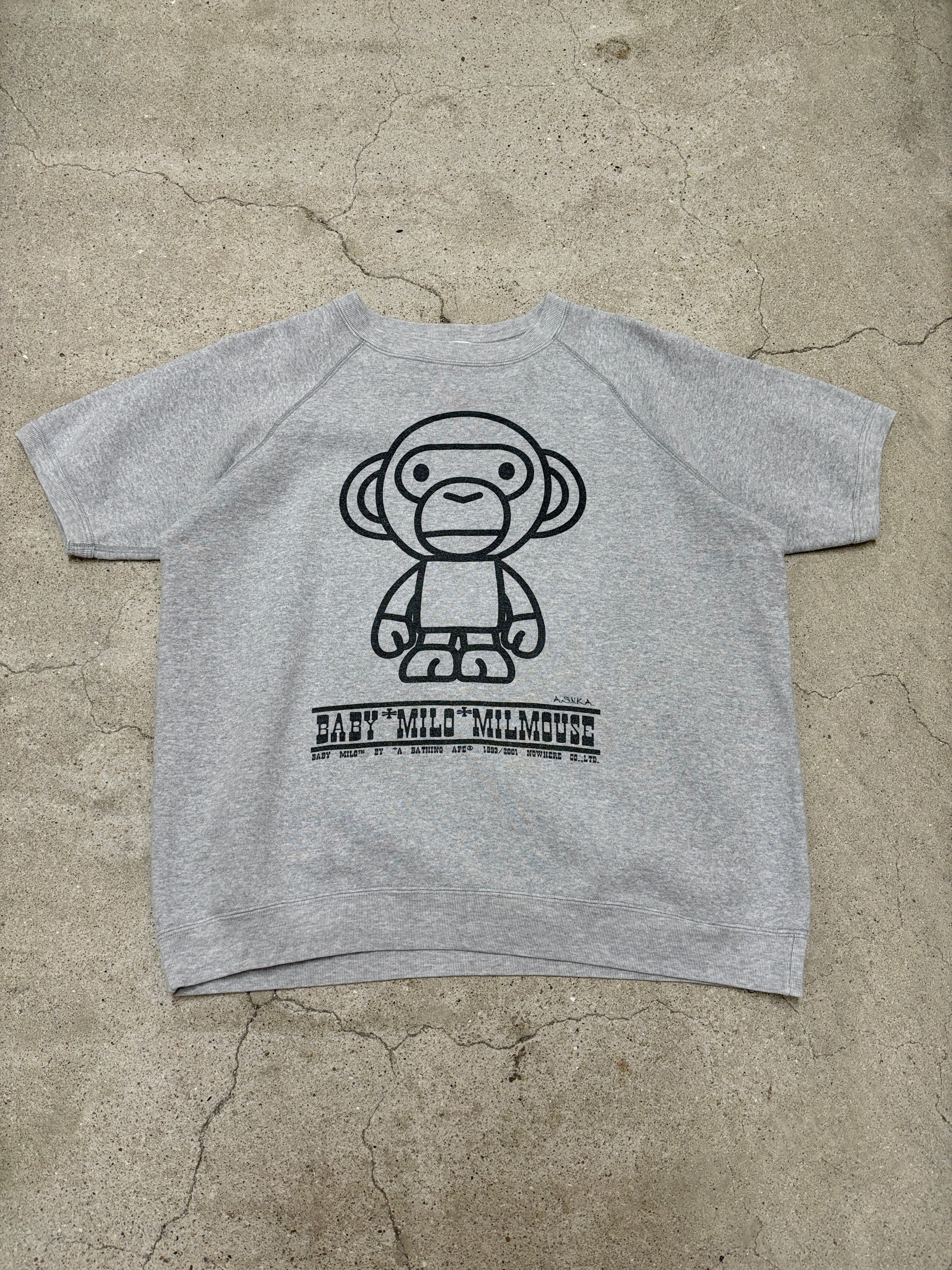 90~00s A BATHING APE/BABY MILO print S/S Sweat/M/初期/ベイビーマイロプリント/半袖スウェット/グレー/ASNKA/アベイシングエイプ/裏原/古着/アーカイブ