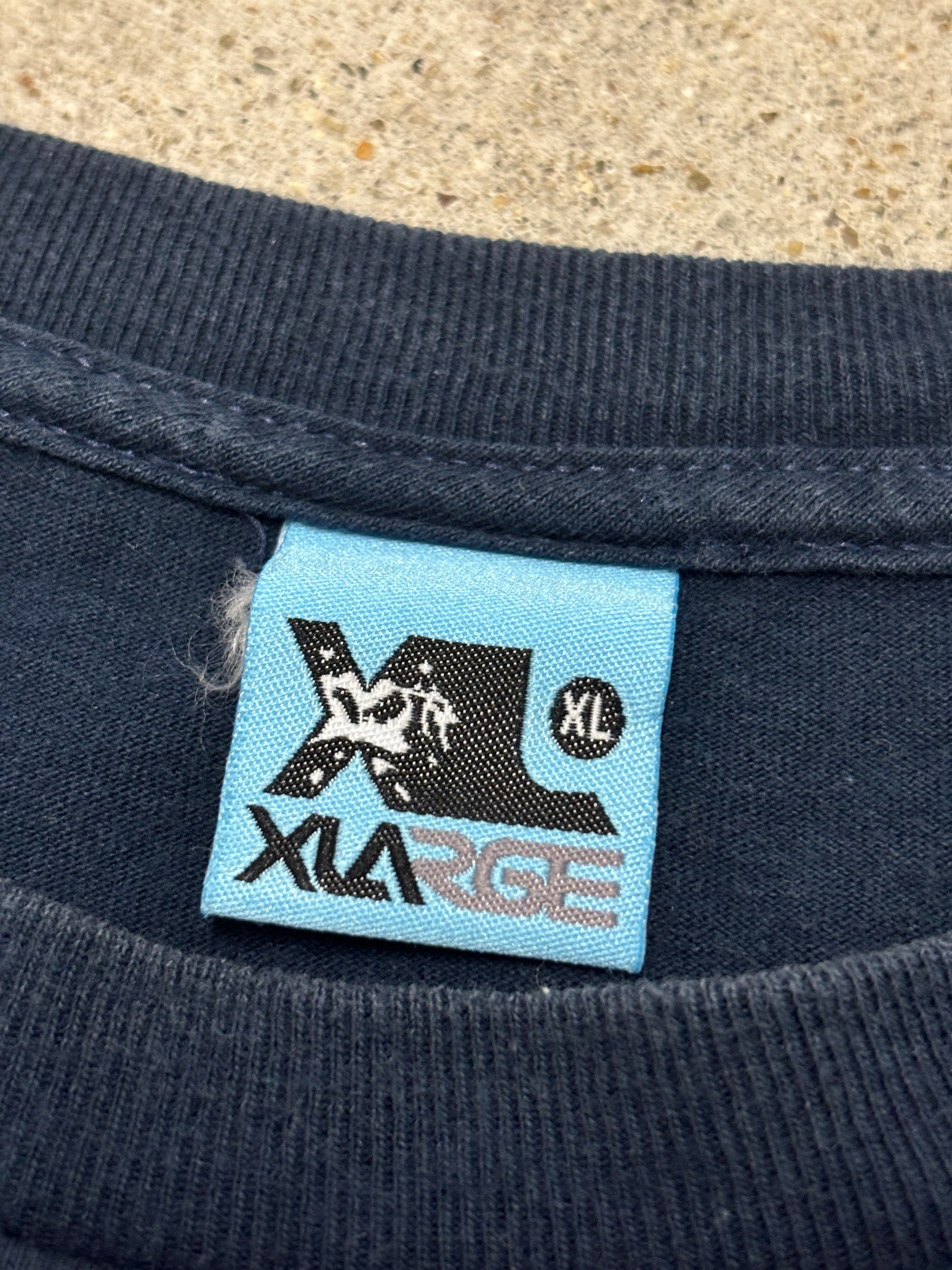 90~00s XLARGE/Logo print Tee/USA製/XL/ロゴプリントT/Tシャツ/ロボット/ネイビー/エクストララージ/古着/アーカイブ/裏原