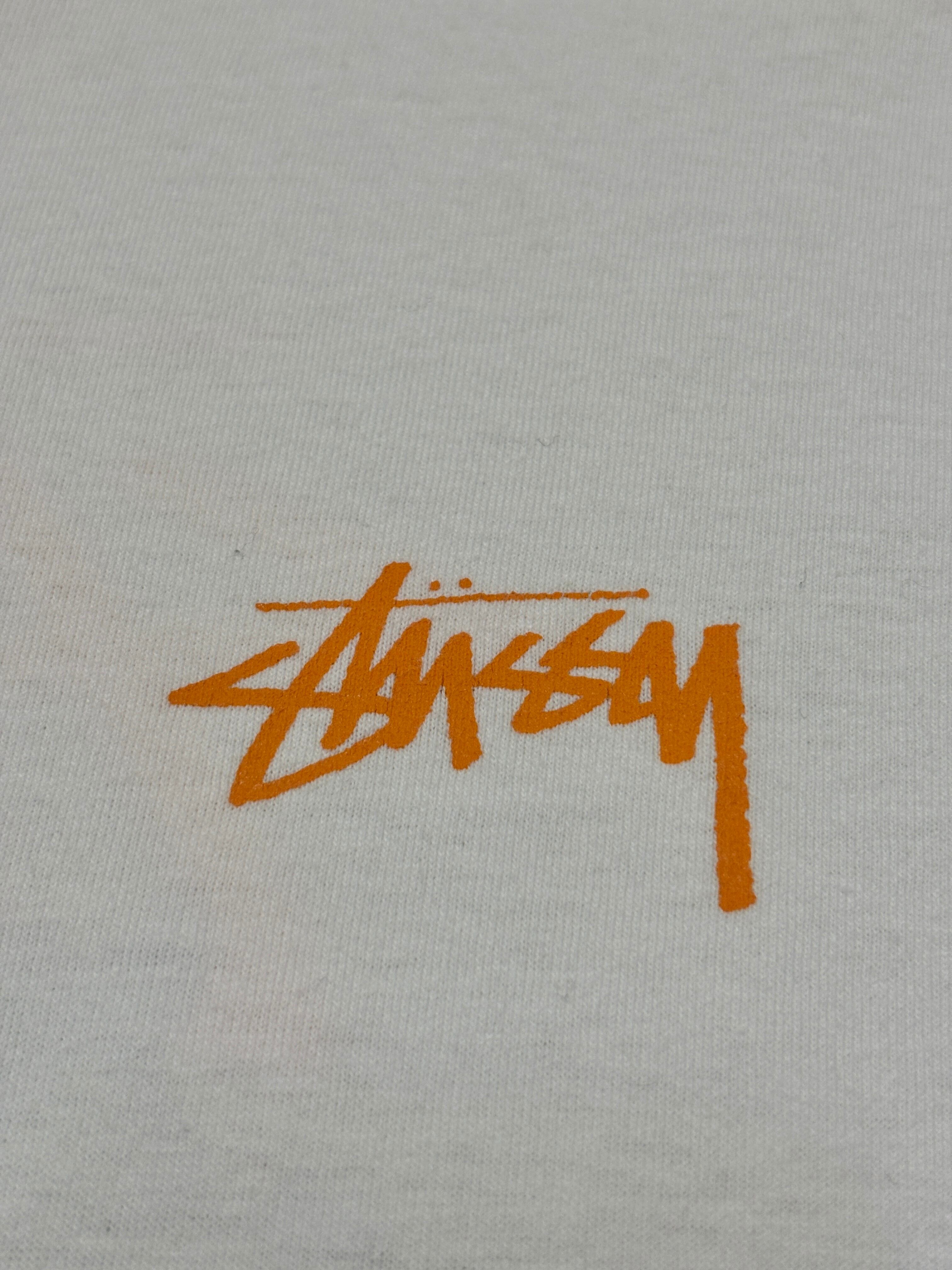 00s OLD STUSSY/Logo print L/S Tee/紺タグ/M/ロゴプリント/ロンT/長袖/Tシャツ/ストックロゴ/ホワイト/ステューシー/オールドステューシー/古着/アーカイブ