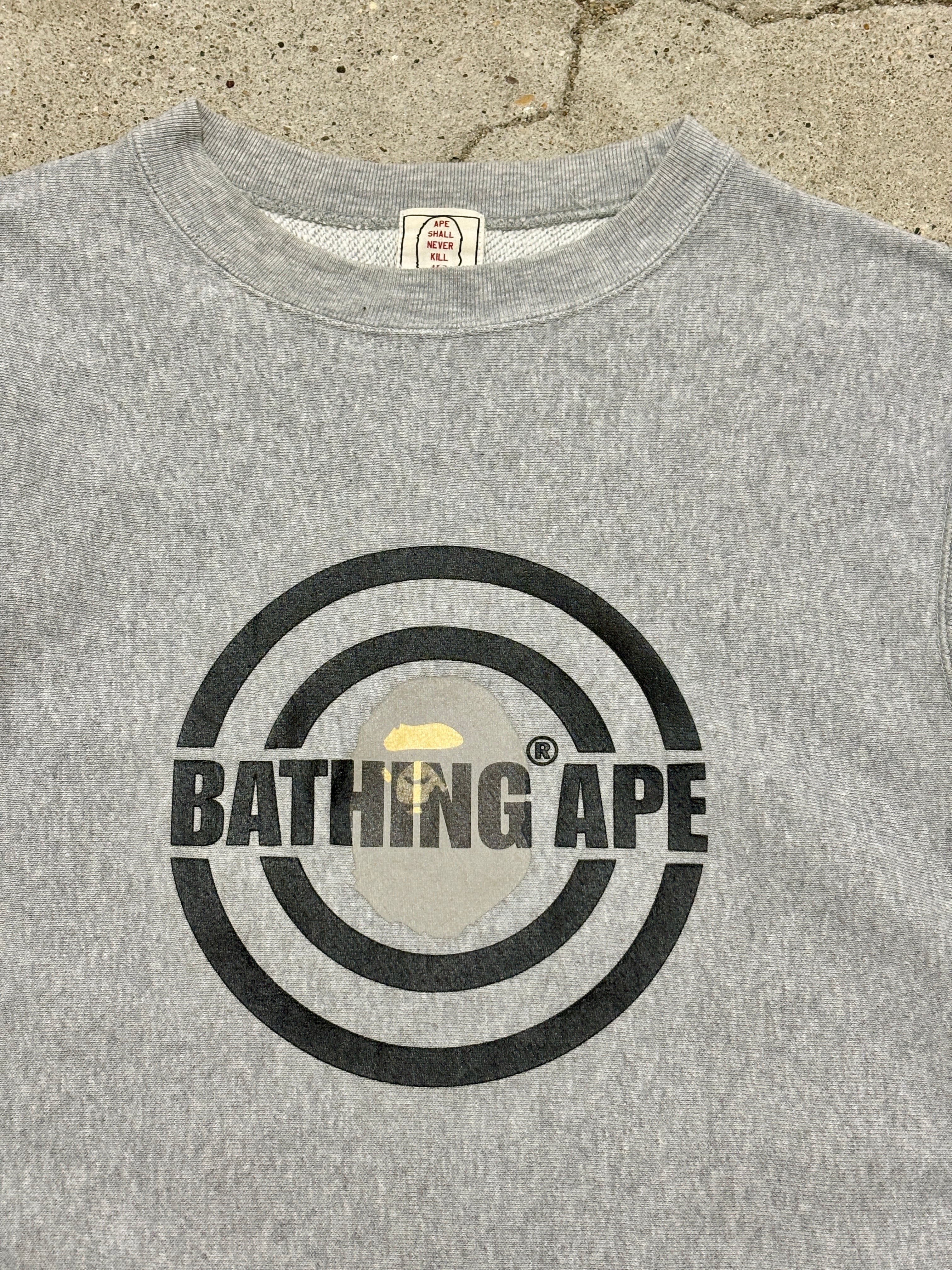90~00s A BATHING APE/Logo print Sweat/初期タグ/XS/ロゴプリントスウェット/ターゲットマーク/BAPE/グレー/アベイシングエイプ