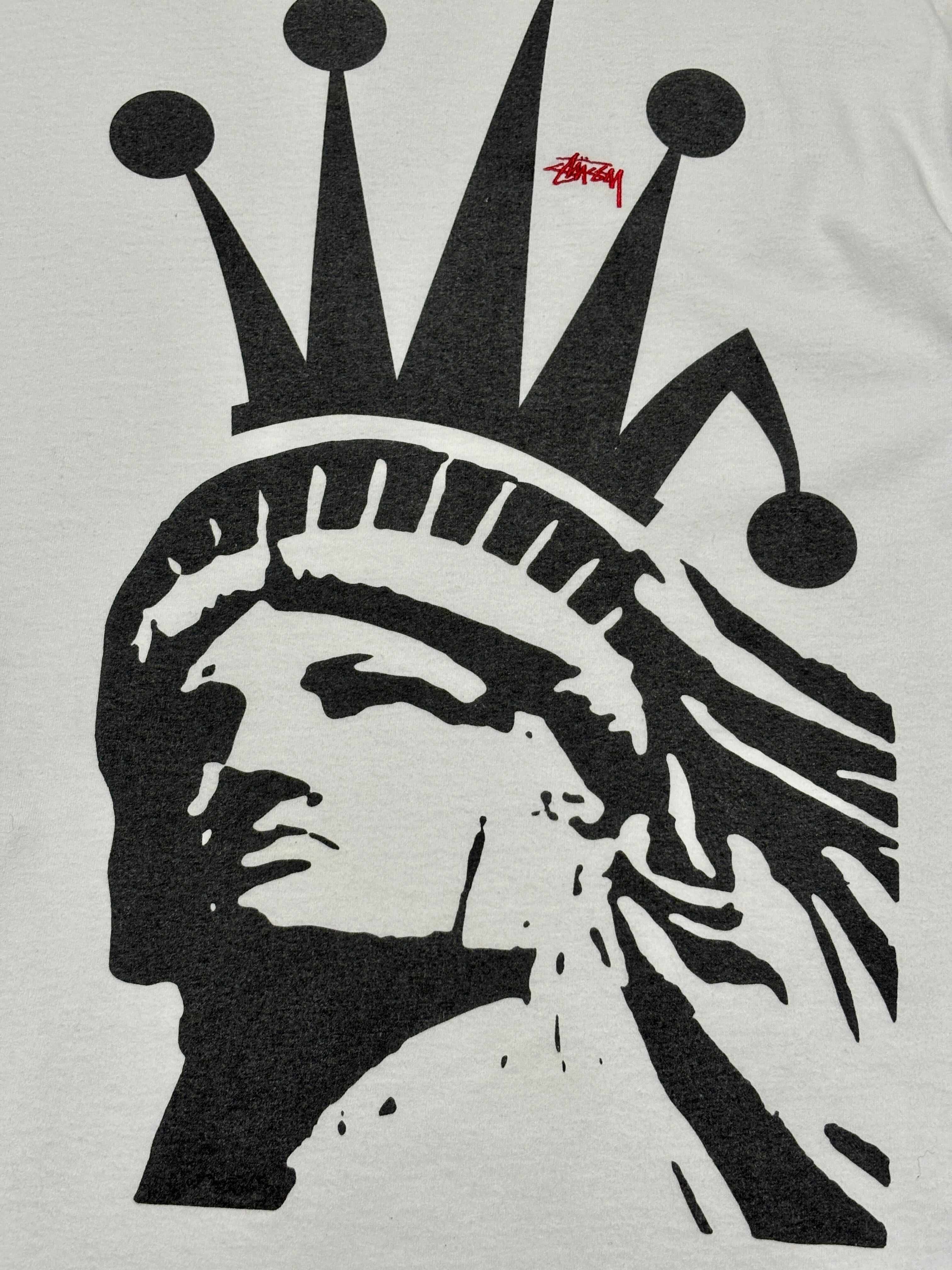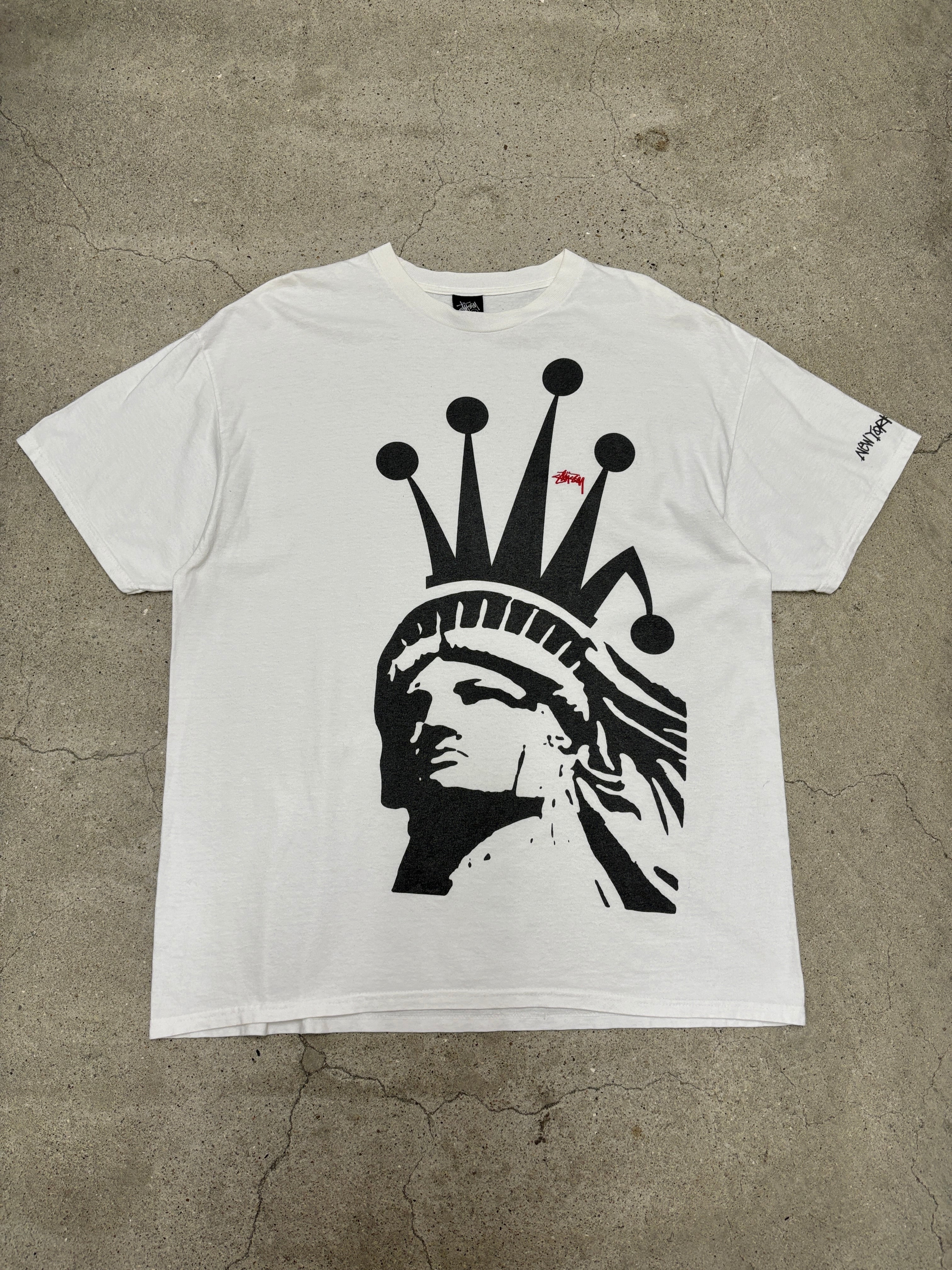 00s OLD STUSSY/Statue of Liberty print Tee/XL/自由の女神プリント/Tシャツ/ストックロゴ/ホワイト/ステューシー/オールドステューシー/古着/アーカイブ