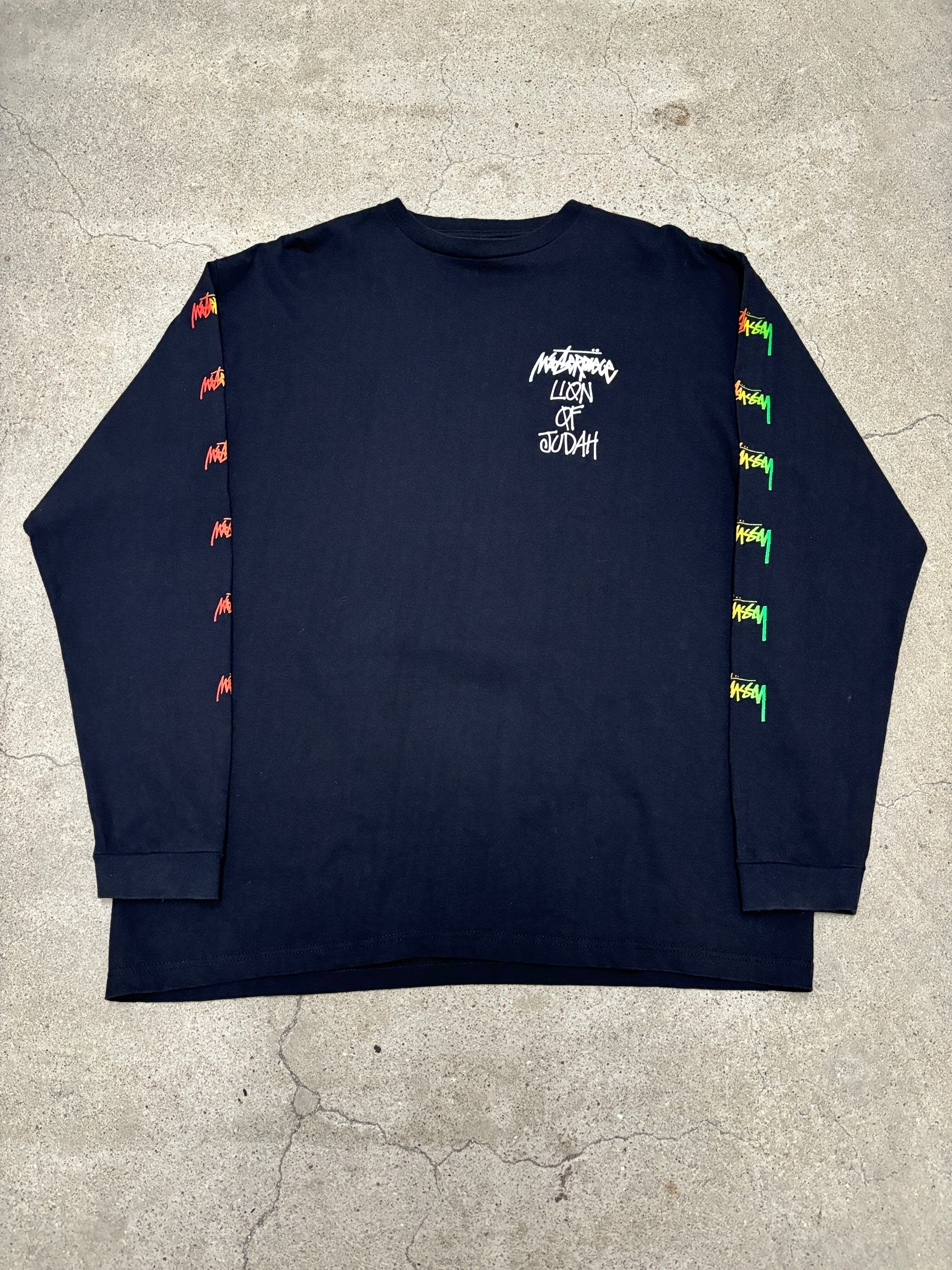 00s OLD STUSSY × MASTERPIECE/Logo print L/S Tee/XL/ロゴプリント/ロンT/袖プリ/Tシャツ/ラスタカラー/ブラック/マスターピースコラボ/ステューシー/オールドステューシー/古着/アーカイブ
