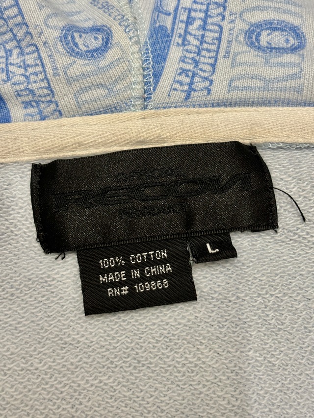 00s RECON/Skull print zip Hoodie/L/スカルプリント/ジップパーカー/フーディー/アイスブルー/リーコン