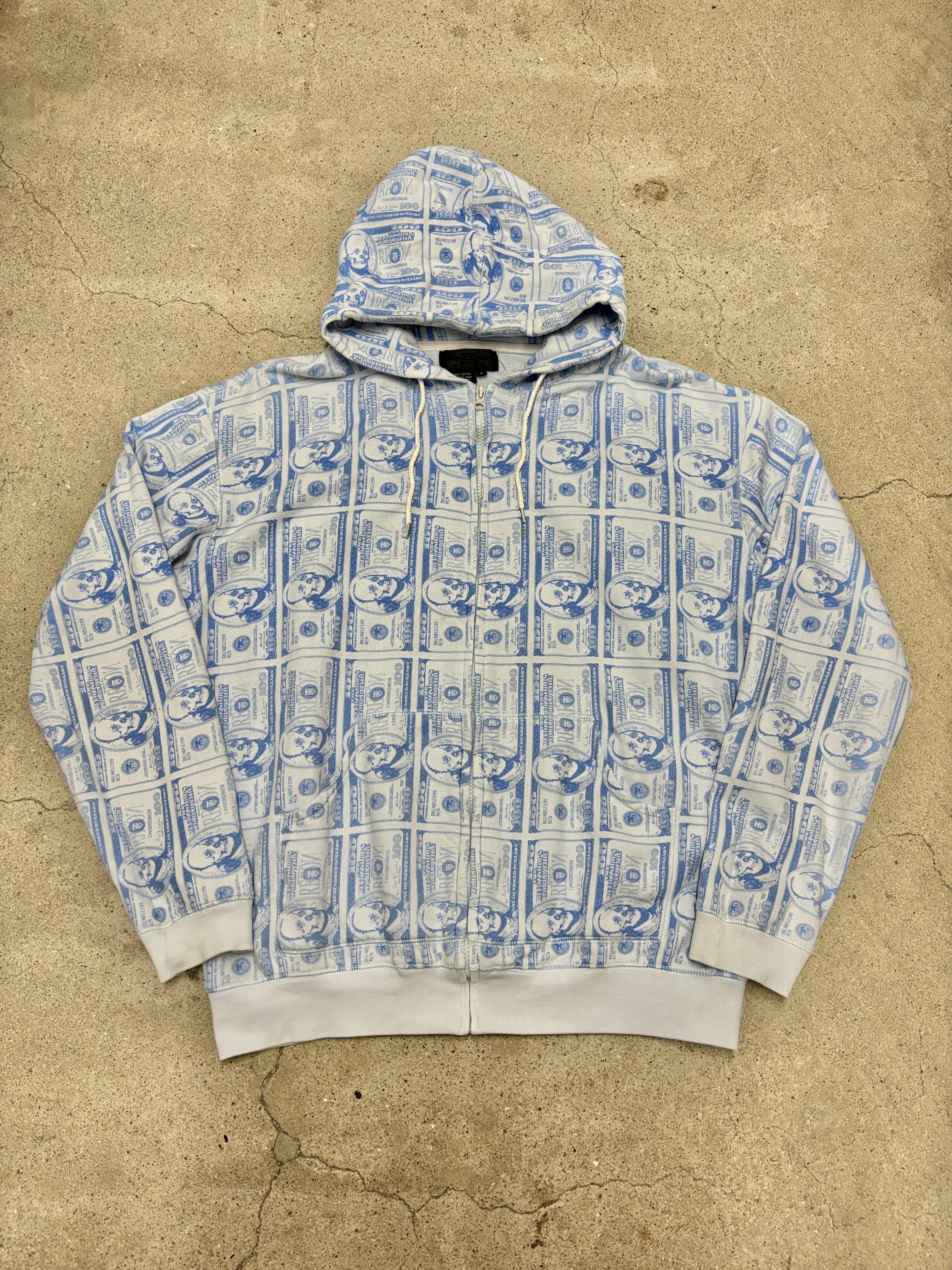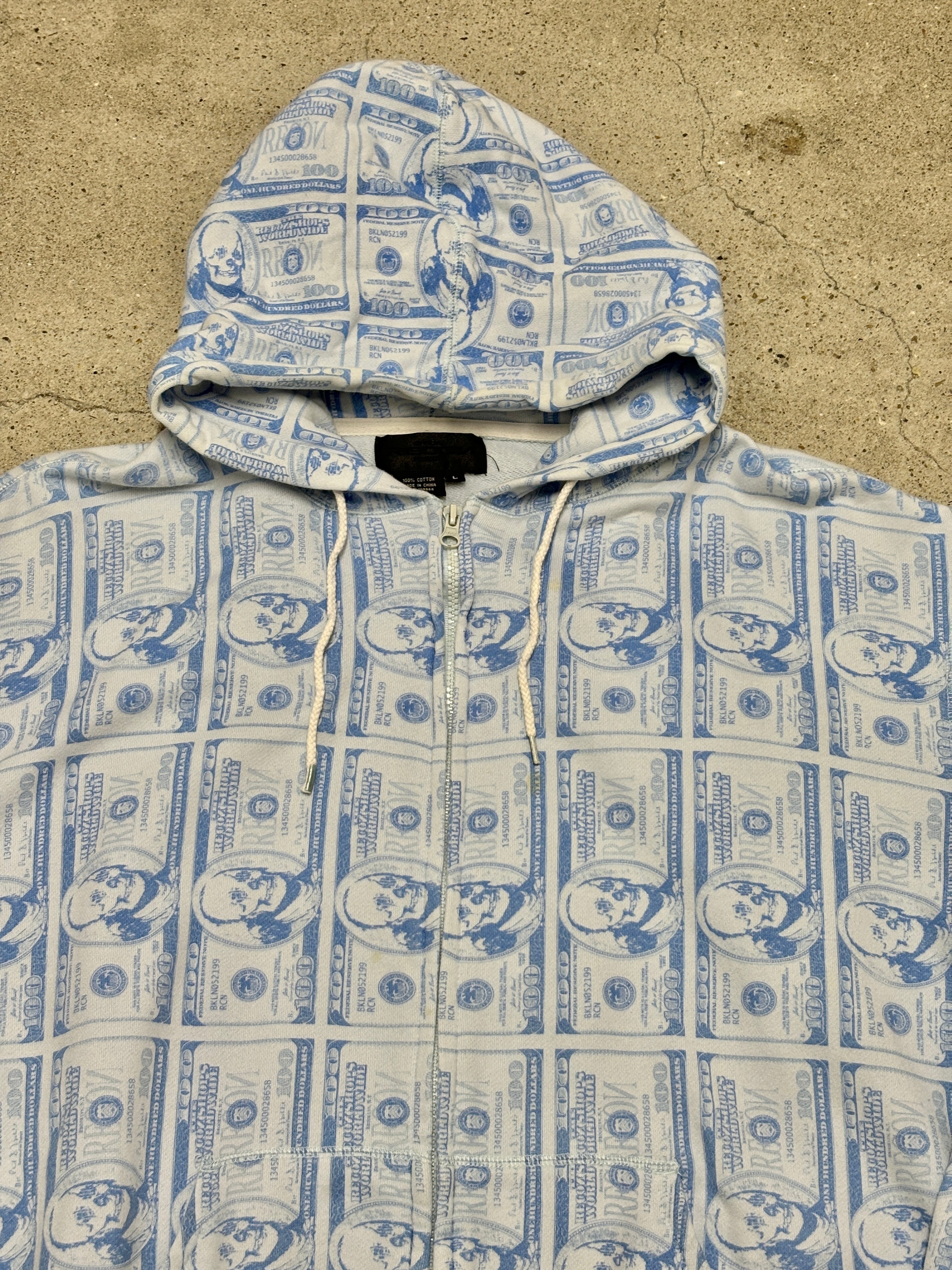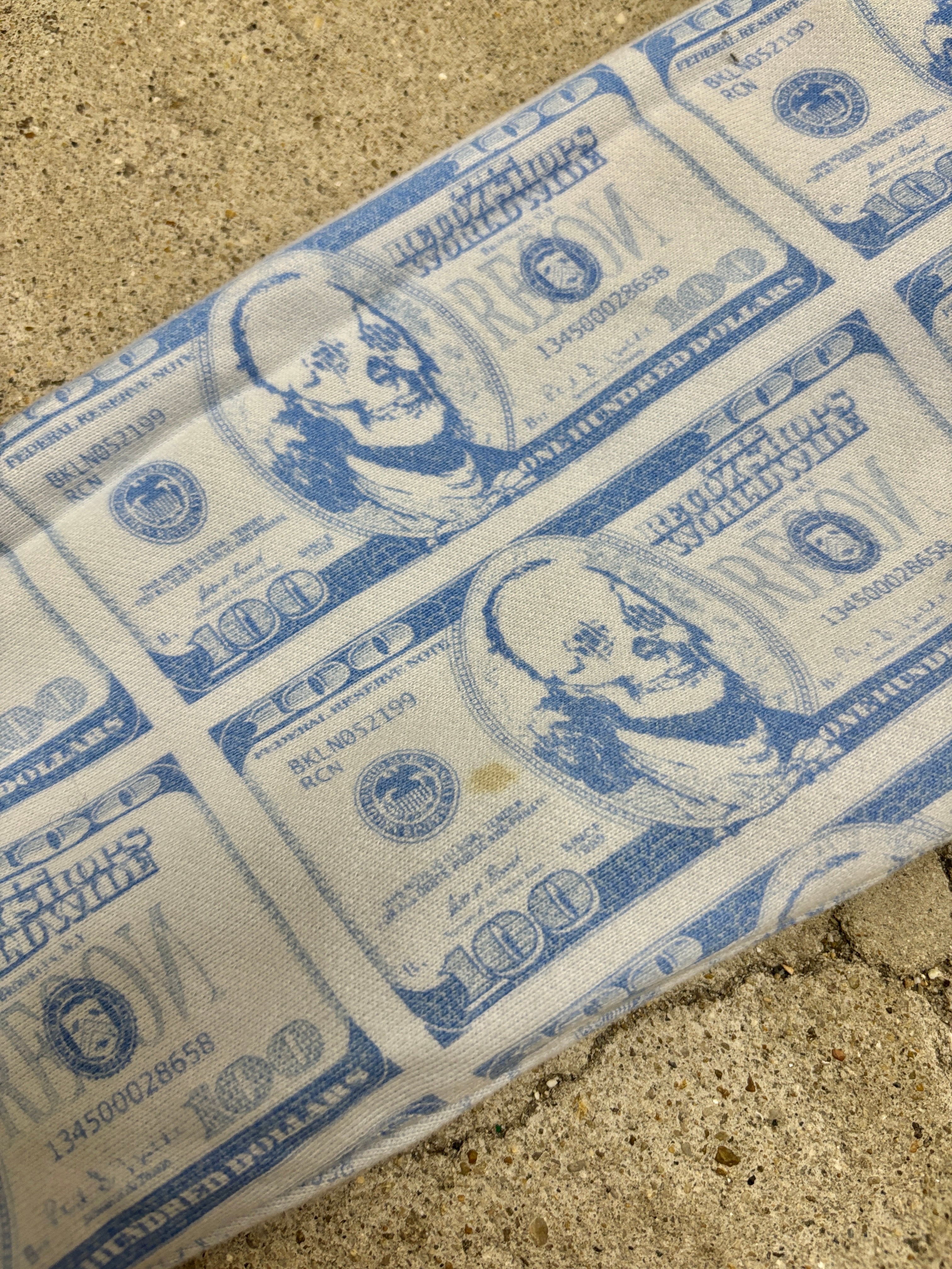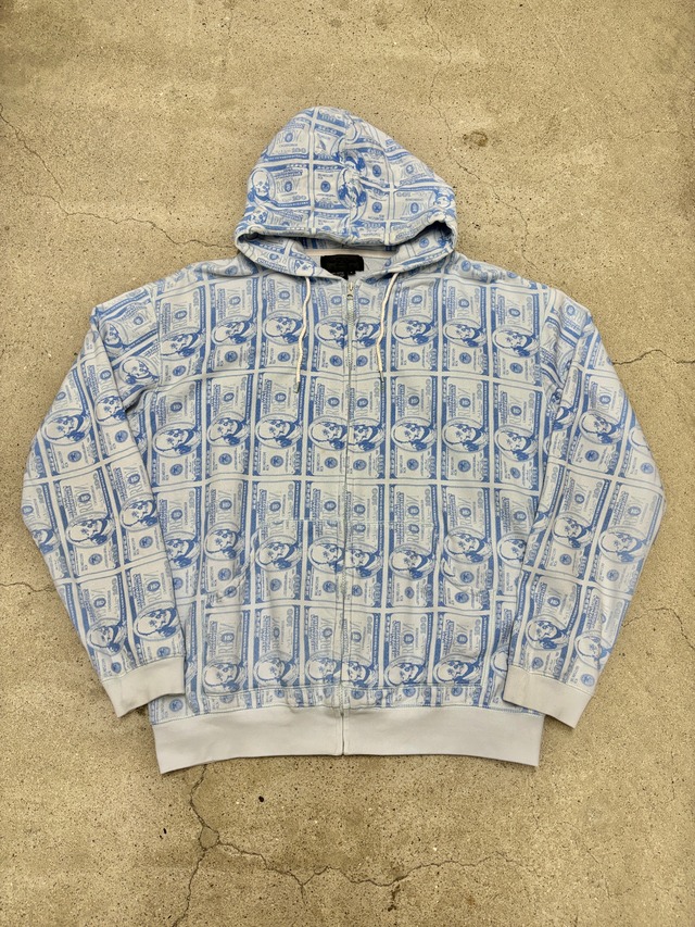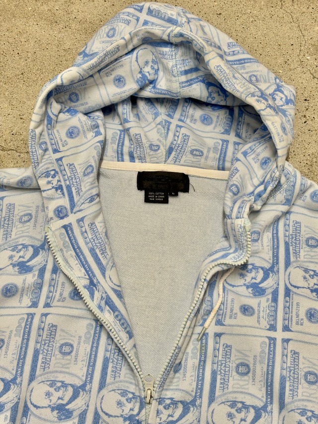 紙幣とスカルがプリントされたアイテム。