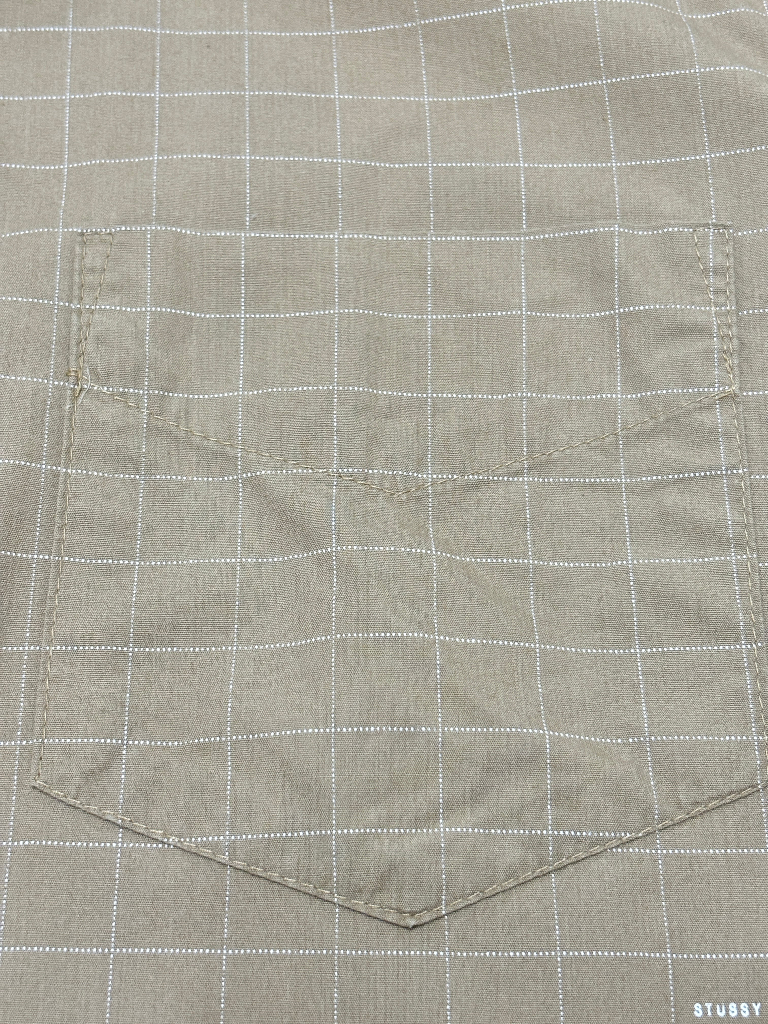 90~00s OLD STUSSY/Check L/S Shirt/USA製/紺タグ/L/チェック柄/ロゴプリント/長袖シャツ/キャメル/ステューシー/オールドステューシー/古着/アーカイブ