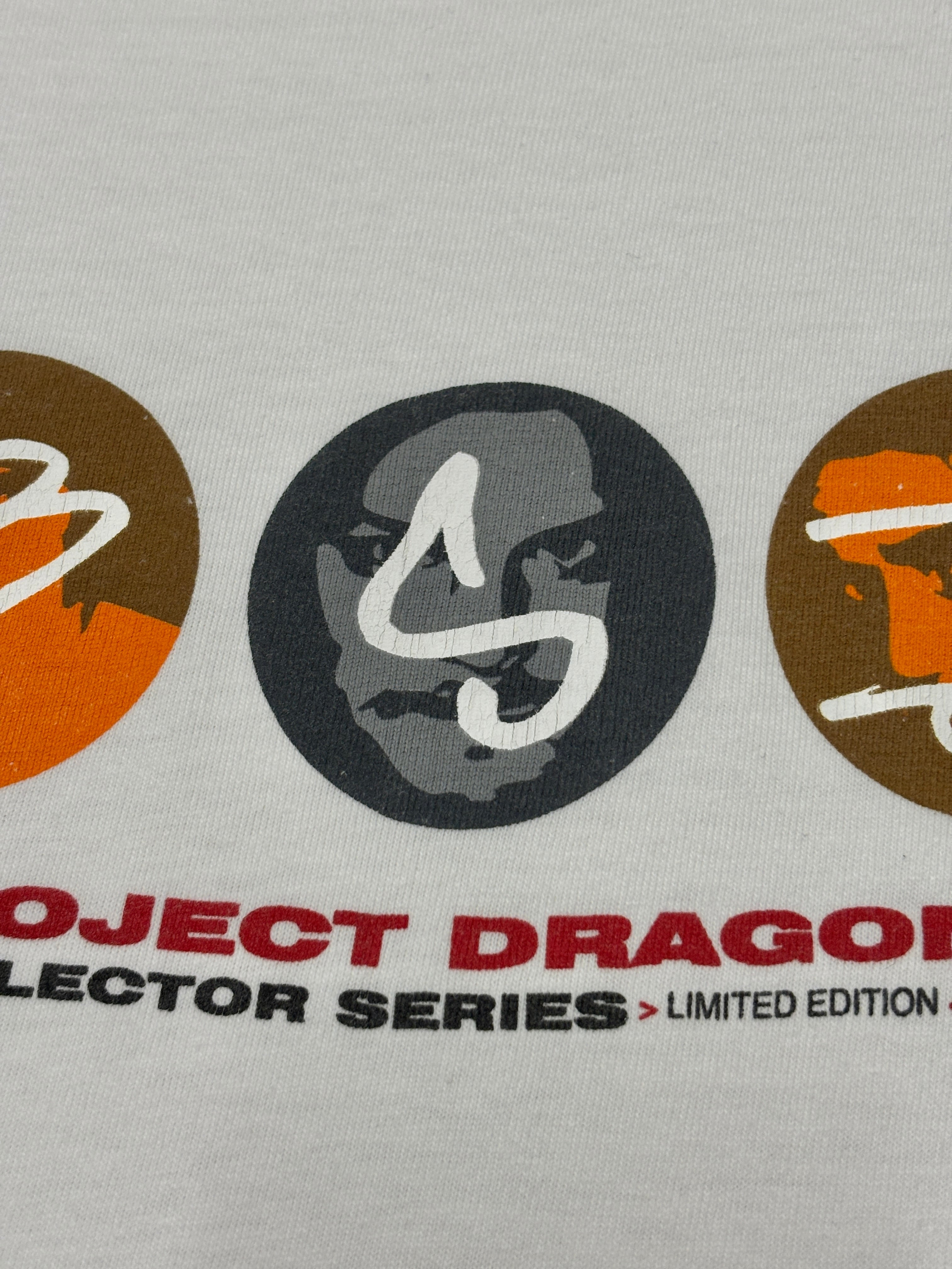 90s PROJECT DRAGON/BSF print Tee/L/ロゴプリントT/Tシャツ/BLUE/STASH/FUTURA/ホワイト/プロジェクトドラゴン