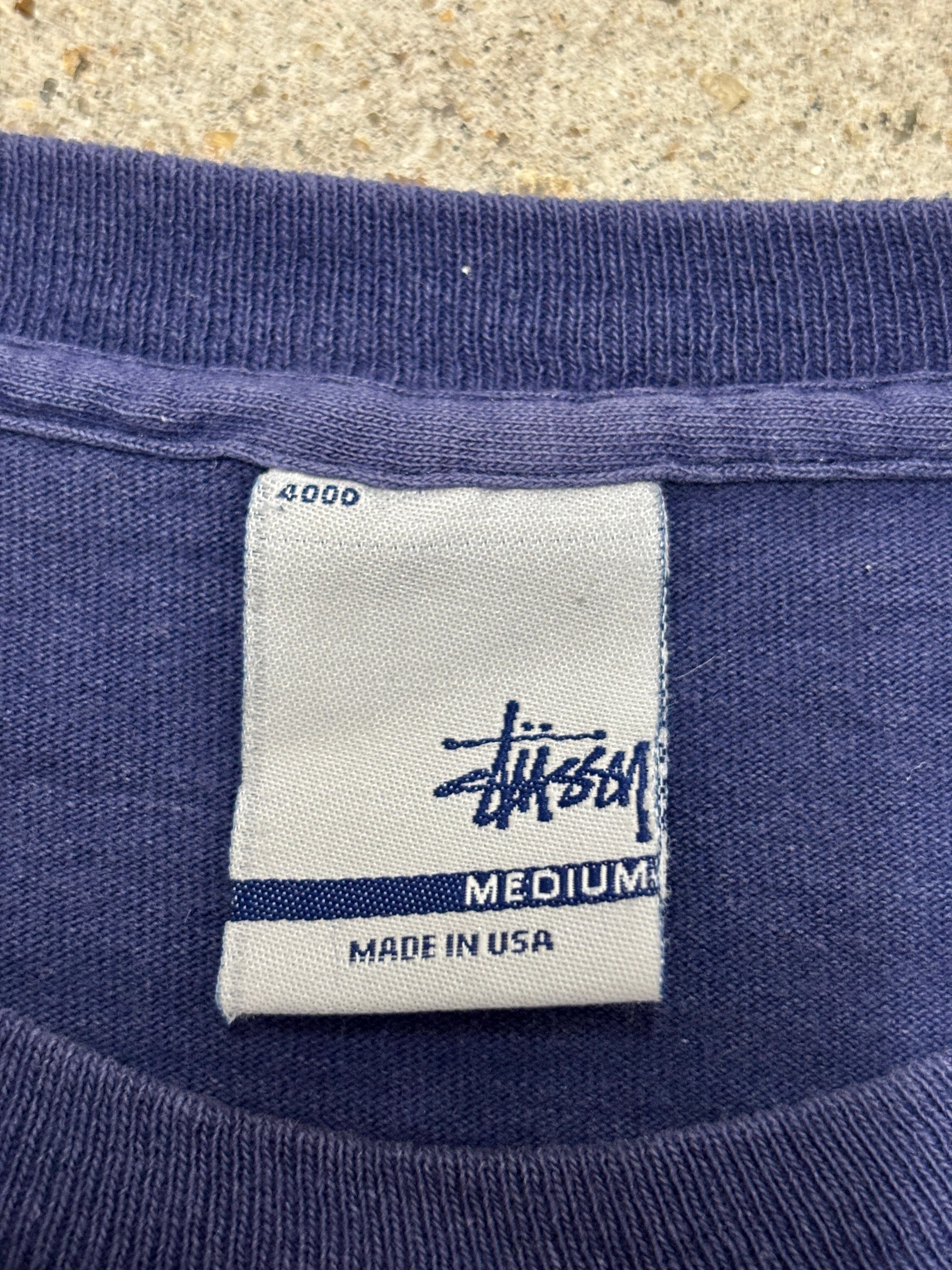 00s OLD STUSSY/Apple Parody Tee/USA製/銀タグ/M/アップルパロディ-/ロゴプリントT/Tシャツ/ネイビ/ステューシー/オ-ルドステューシー