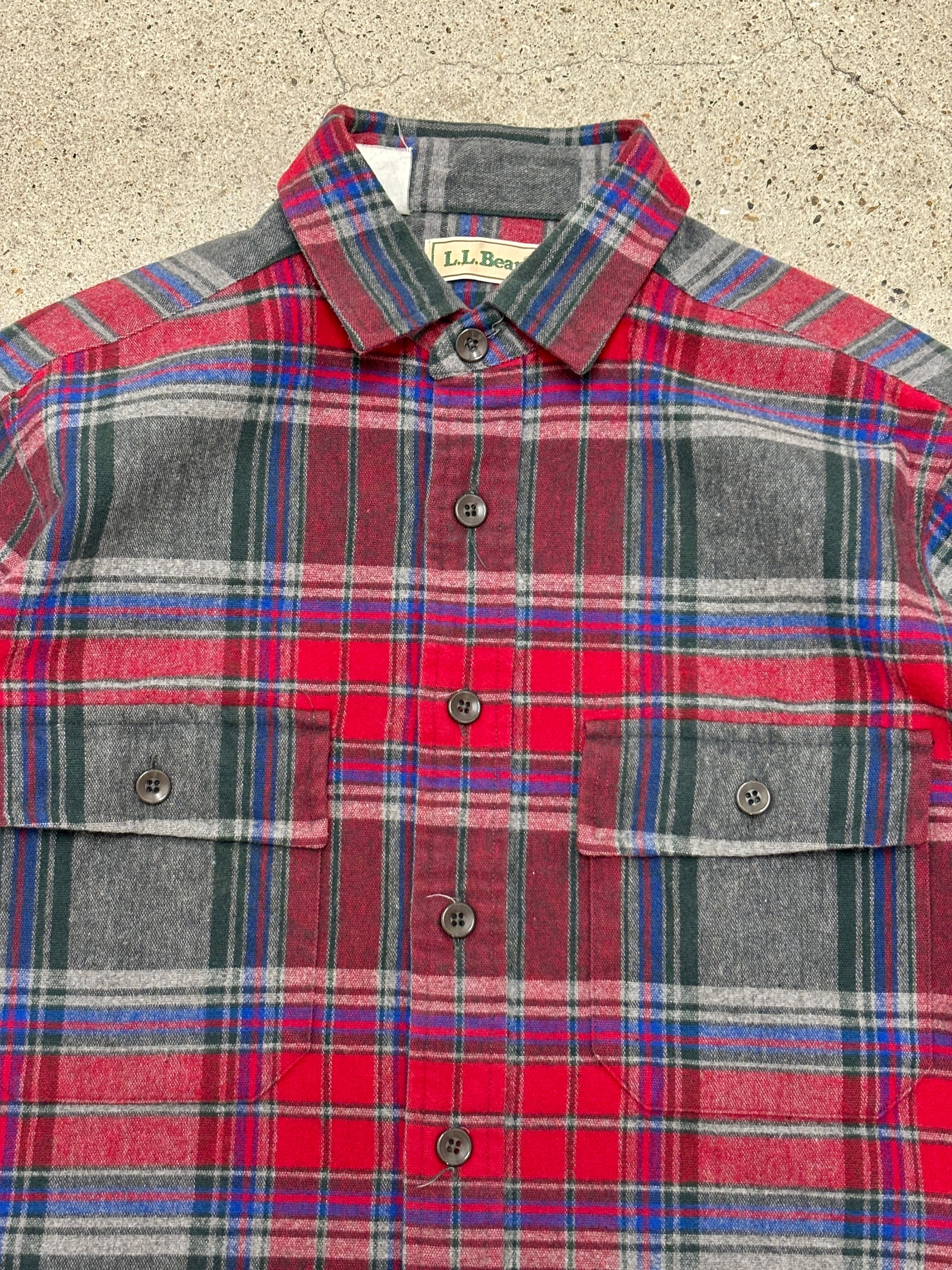 90~00s L.L.Bean/Check Flannel L/S Shirt/S/チェック柄ネルシャツ/長袖シャツ/フランネルシャツ/レッド/グレ-/エルエルビーン/アメカジ/アウトドア/古着