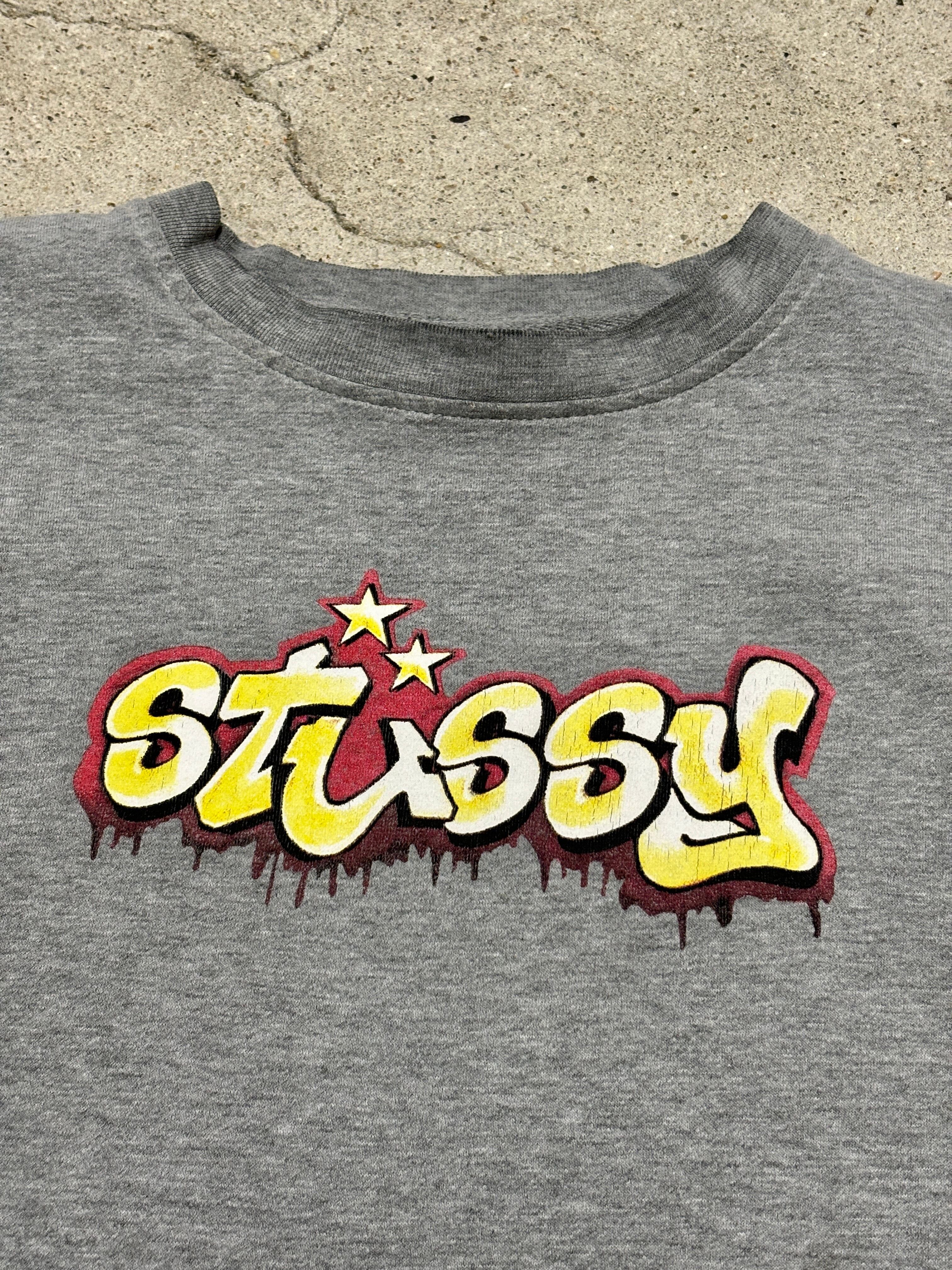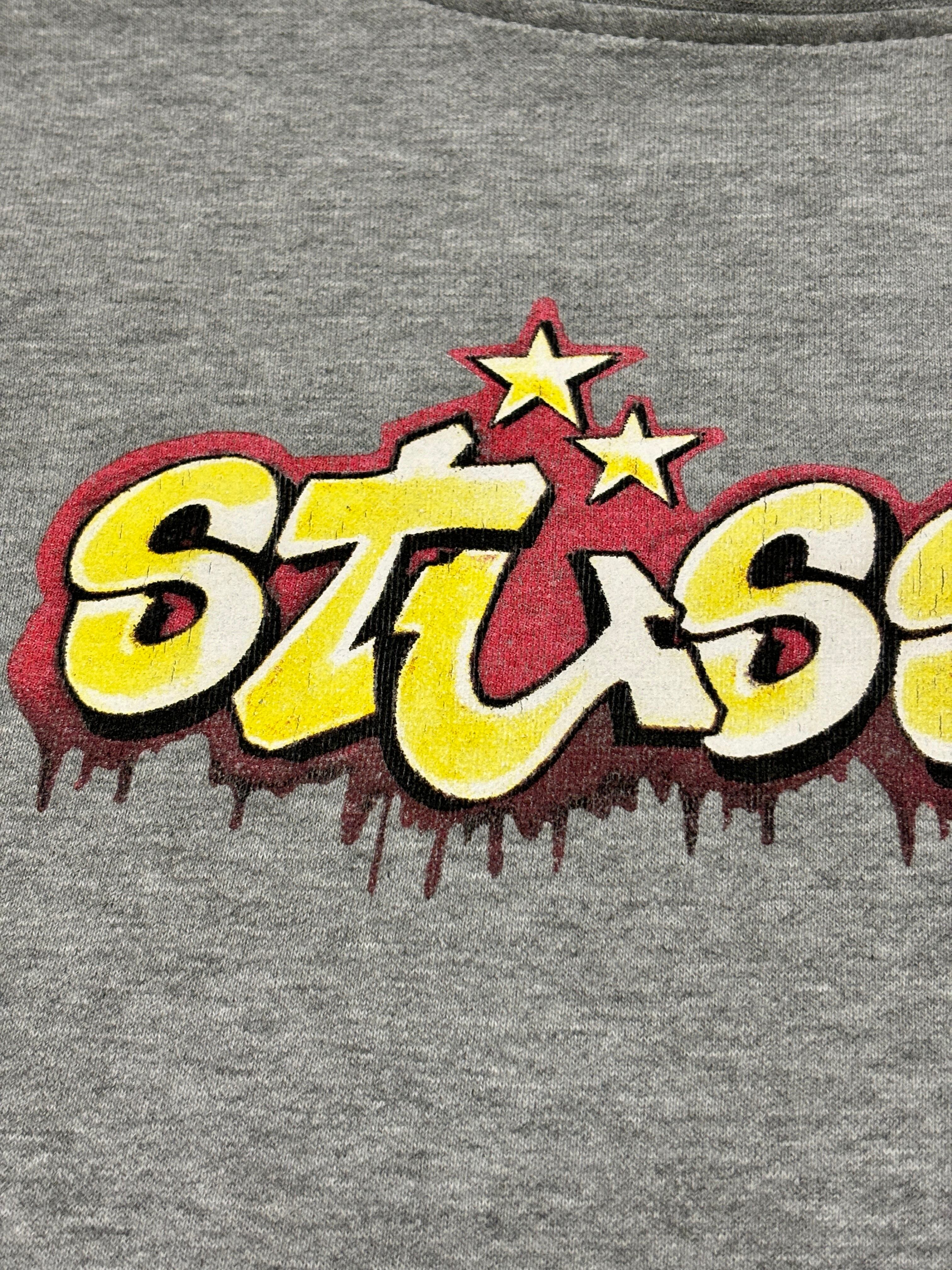 00s OLD STUSSY/Graphic Logo print Sweat/USA製/紺タグ/M/グラフィックロゴプリント/スウェット/グレ―/ステューシー/オ-ルドステューシー