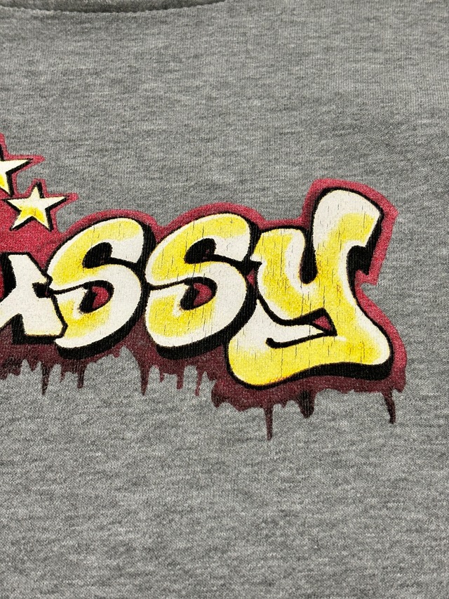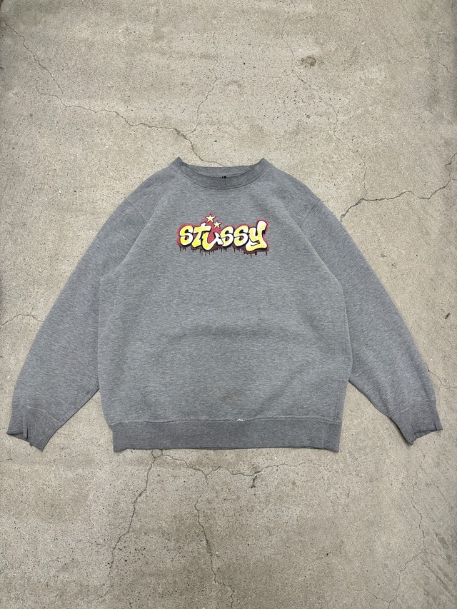00s OLD STUSSY/Graphic Logo print Sweat/USA製/紺タグ/M/グラフィックロゴプリント/スウェット/グレ―/ステューシー/オ-ルドステューシー/古着/アーカイブ