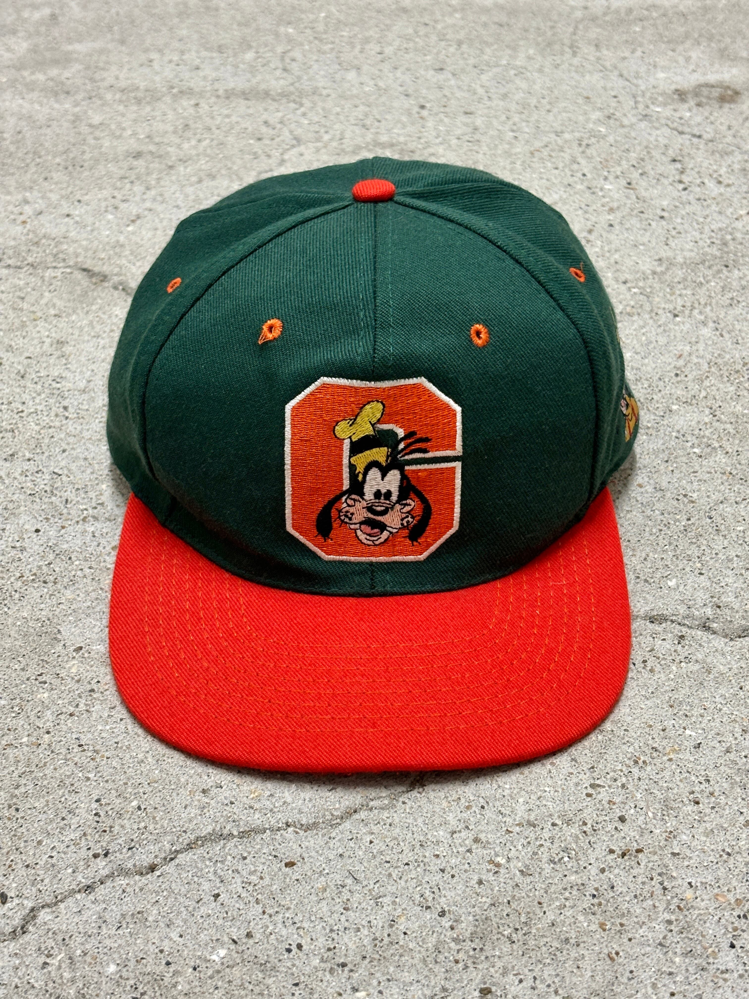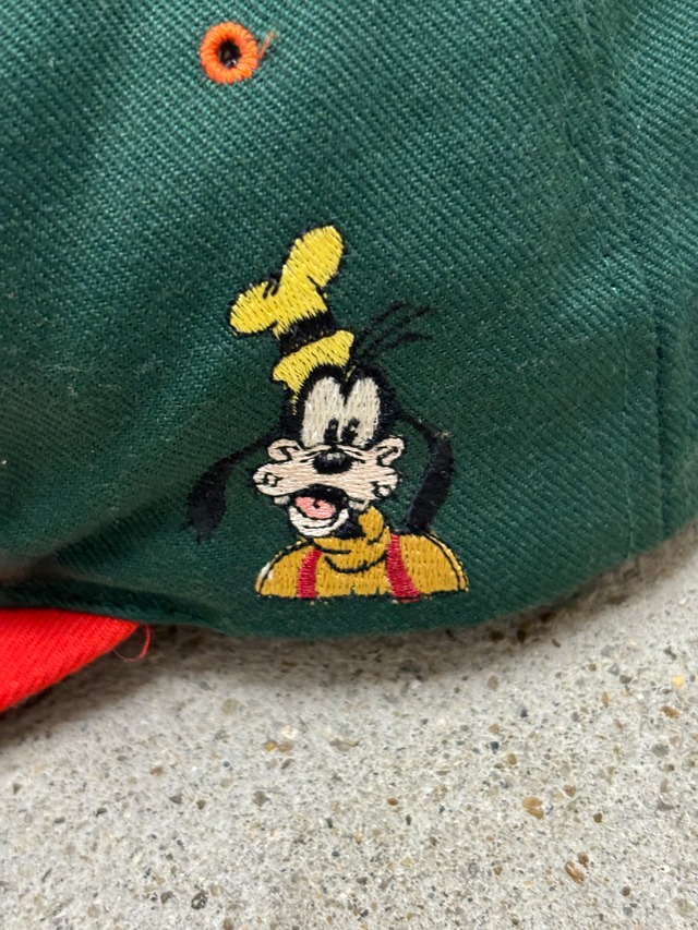 90~00s Disney/GOOFY Cap/Free/グ-フィ-/スナップバックキャップ/刺繍/ワッペン/グリ―ン/オレンジ/ディズニ―/キャラクター