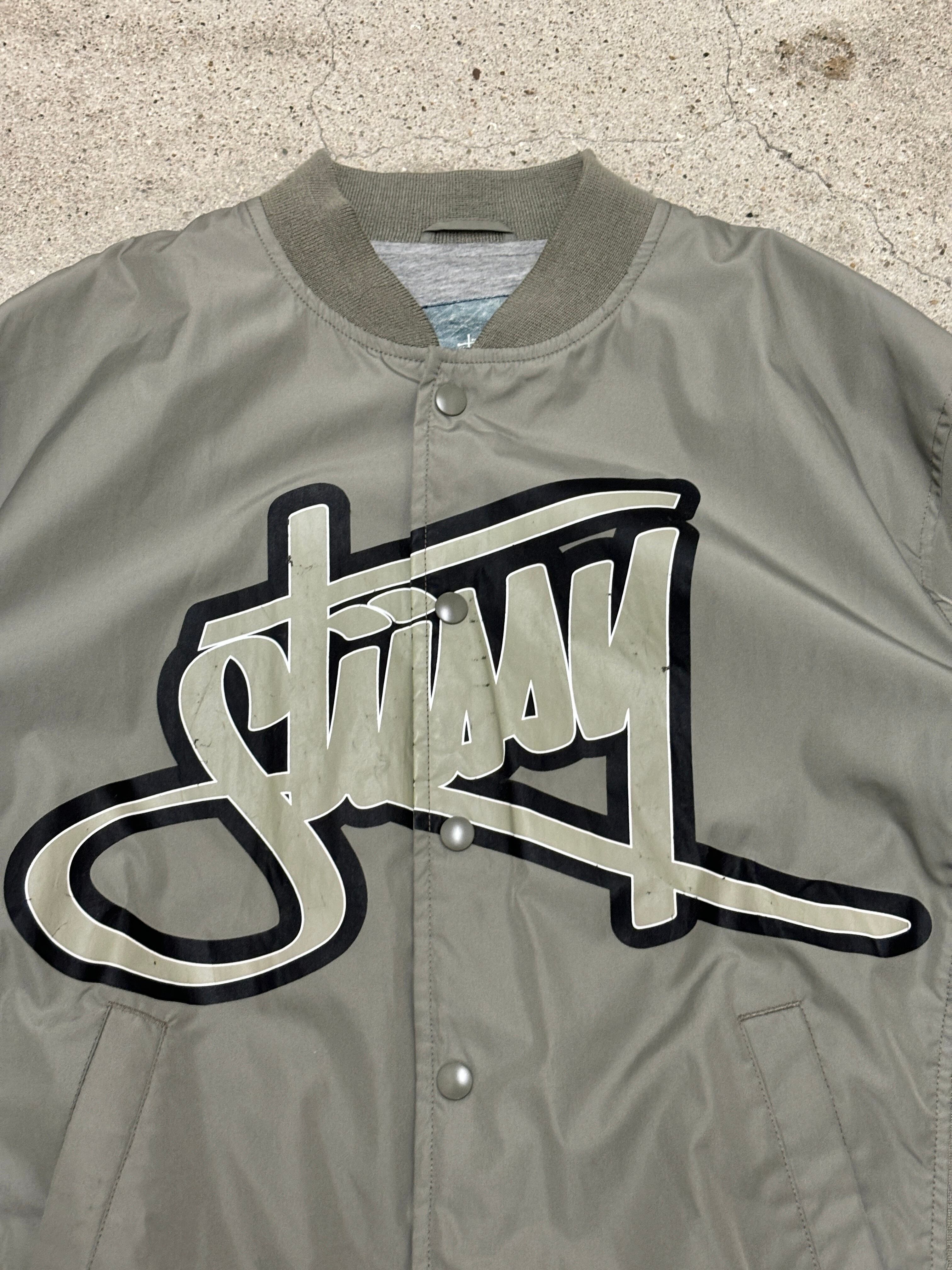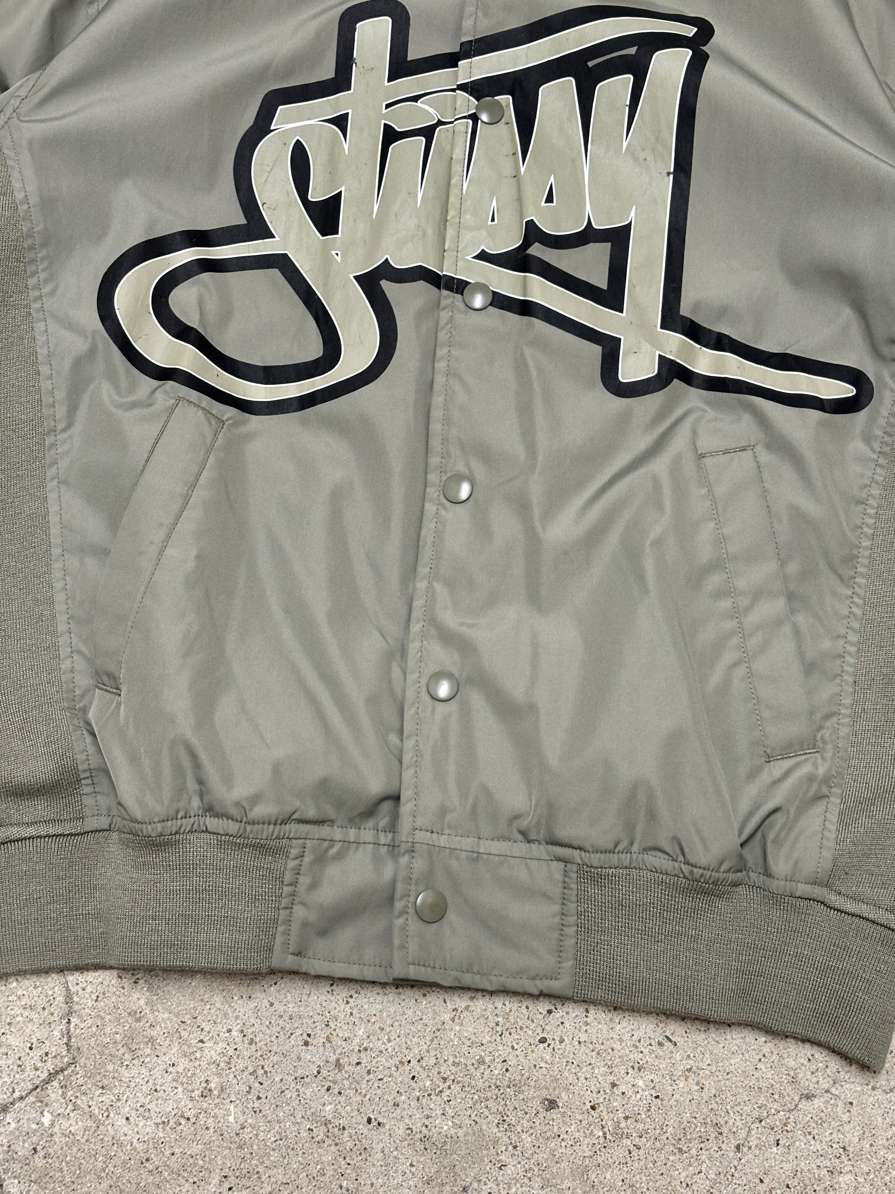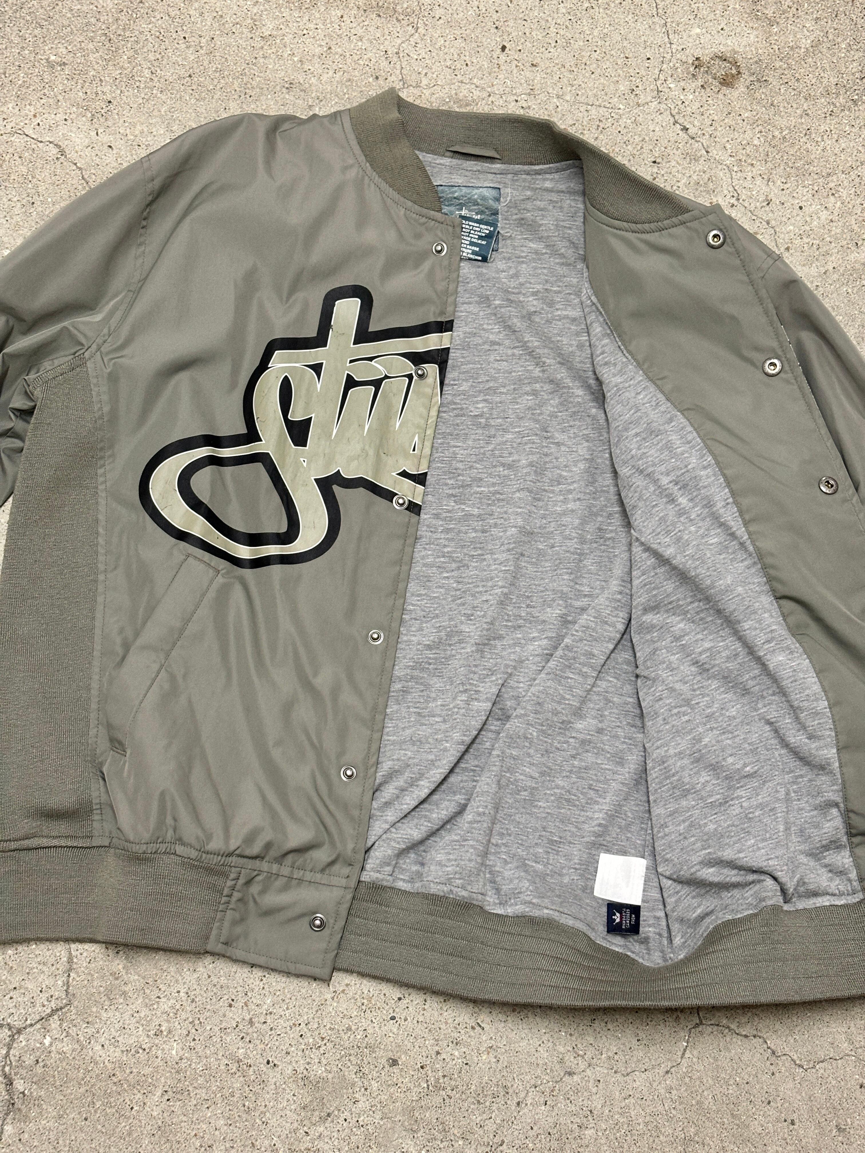 00s OLD STUSSY/Stadium Jacket/M/グラフィックロゴプリント/スタジャン/ナイロンジャケット/カ―キ/ステューシー/オールドステューシー