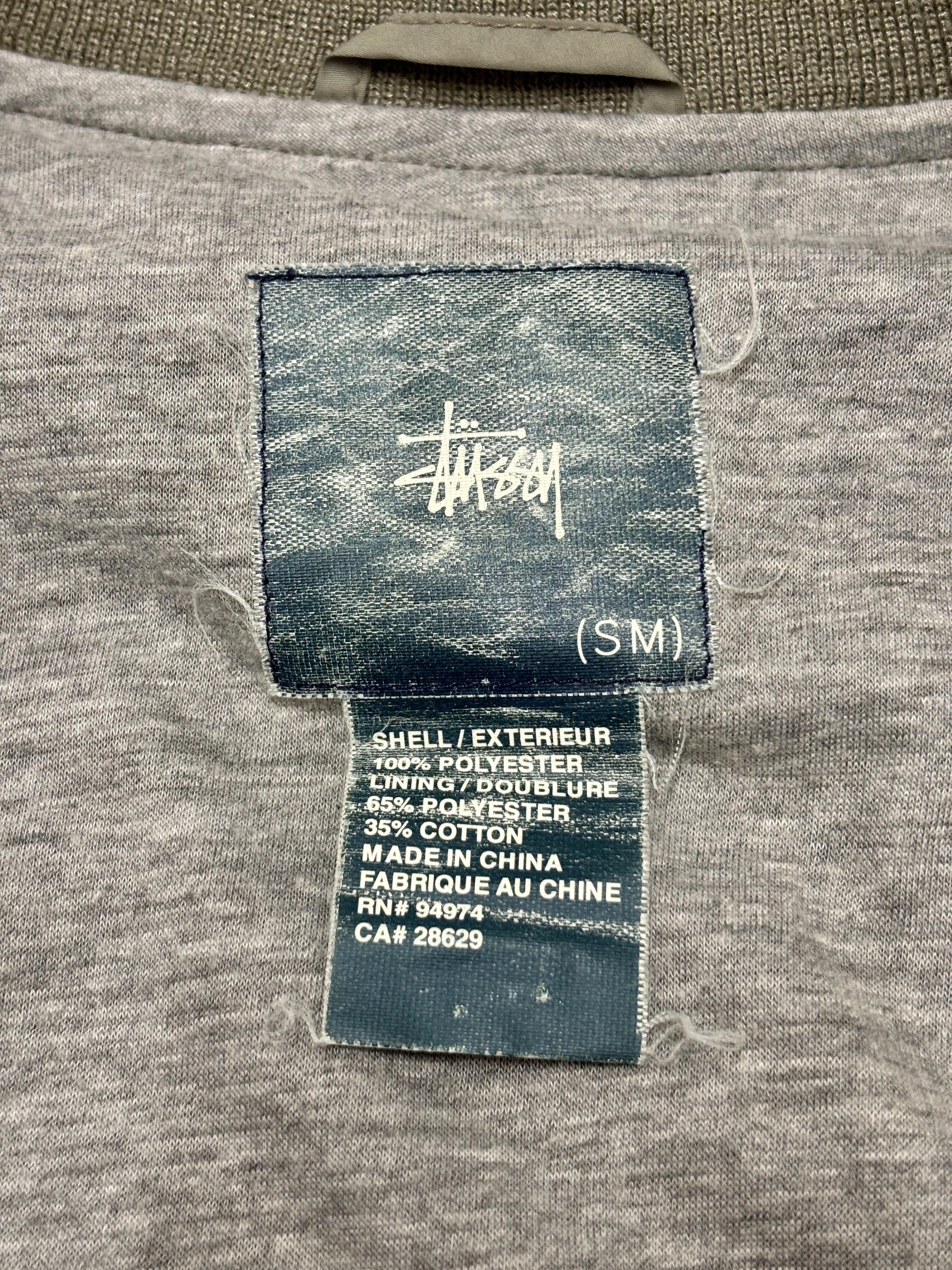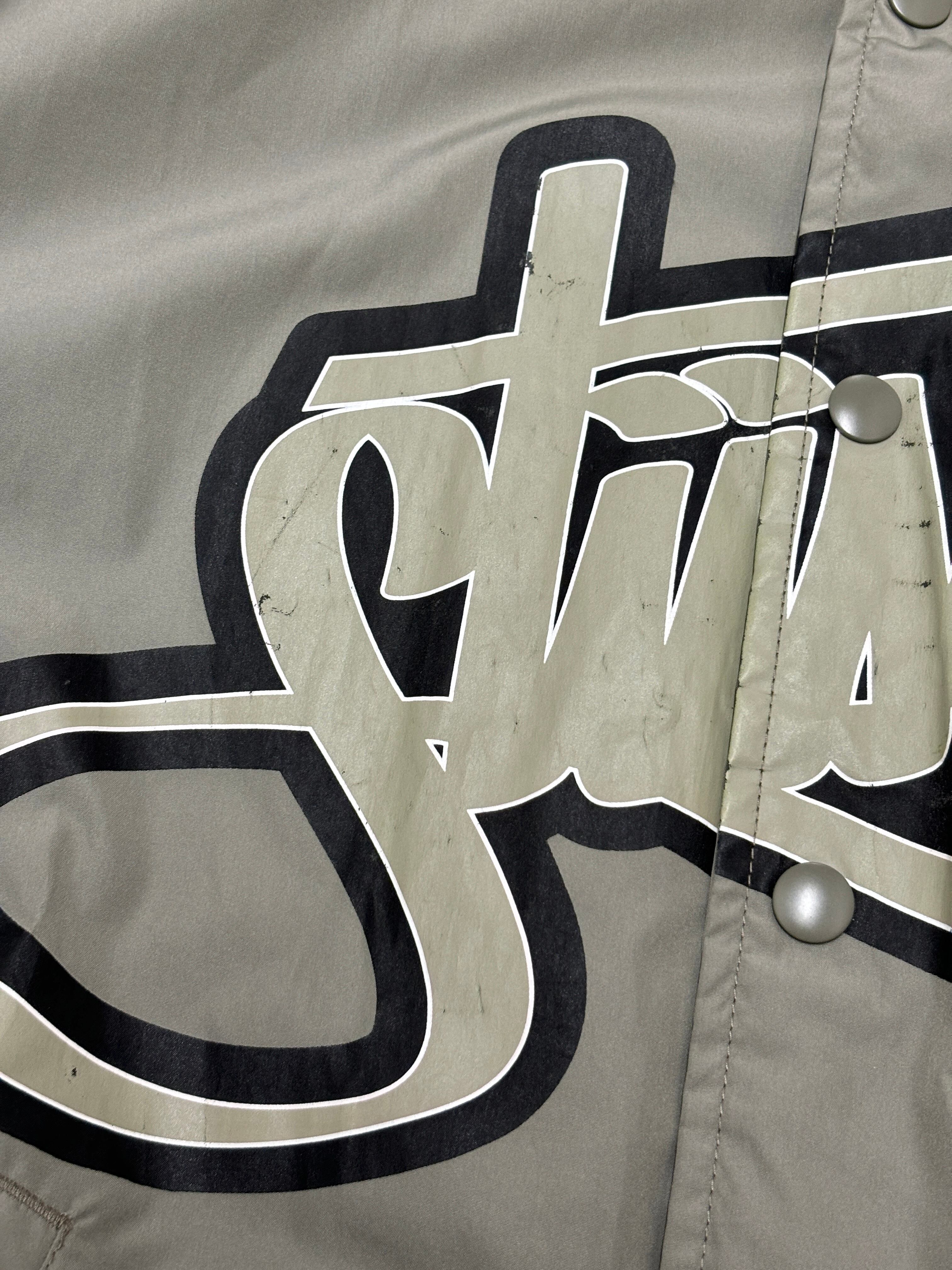 00s OLD STUSSY/Stadium Jacket/M/グラフィックロゴプリント/スタジャン/ナイロンジャケット/カ―キ/ステューシー/オールドステューシー/古着/ア―カイブ