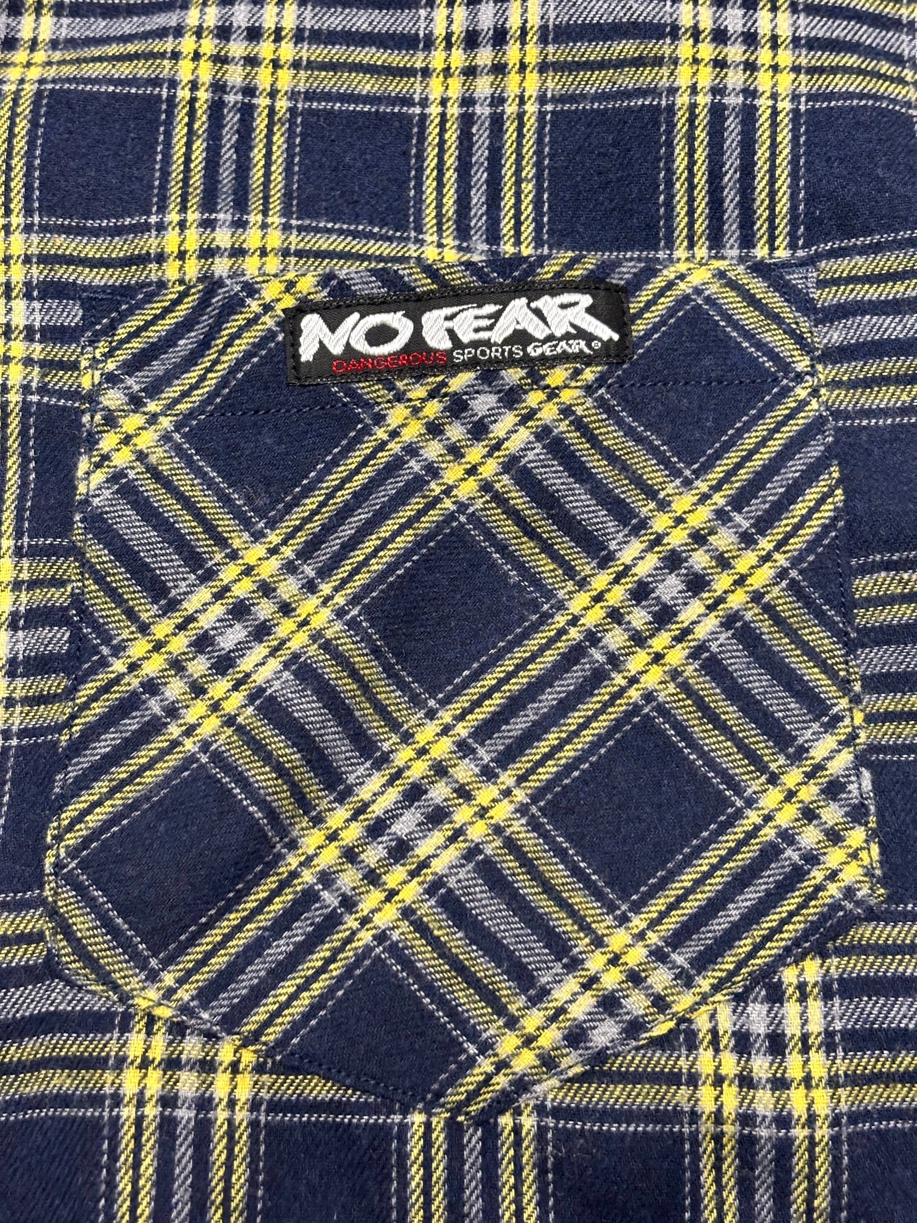 NO FEAR/Check Flannel Shirt/M-L相当/フード付きネルシャツ/フードネル/フランネルシャツ/チェック柄/ネイビ-/イエロ-/ノーフィア-