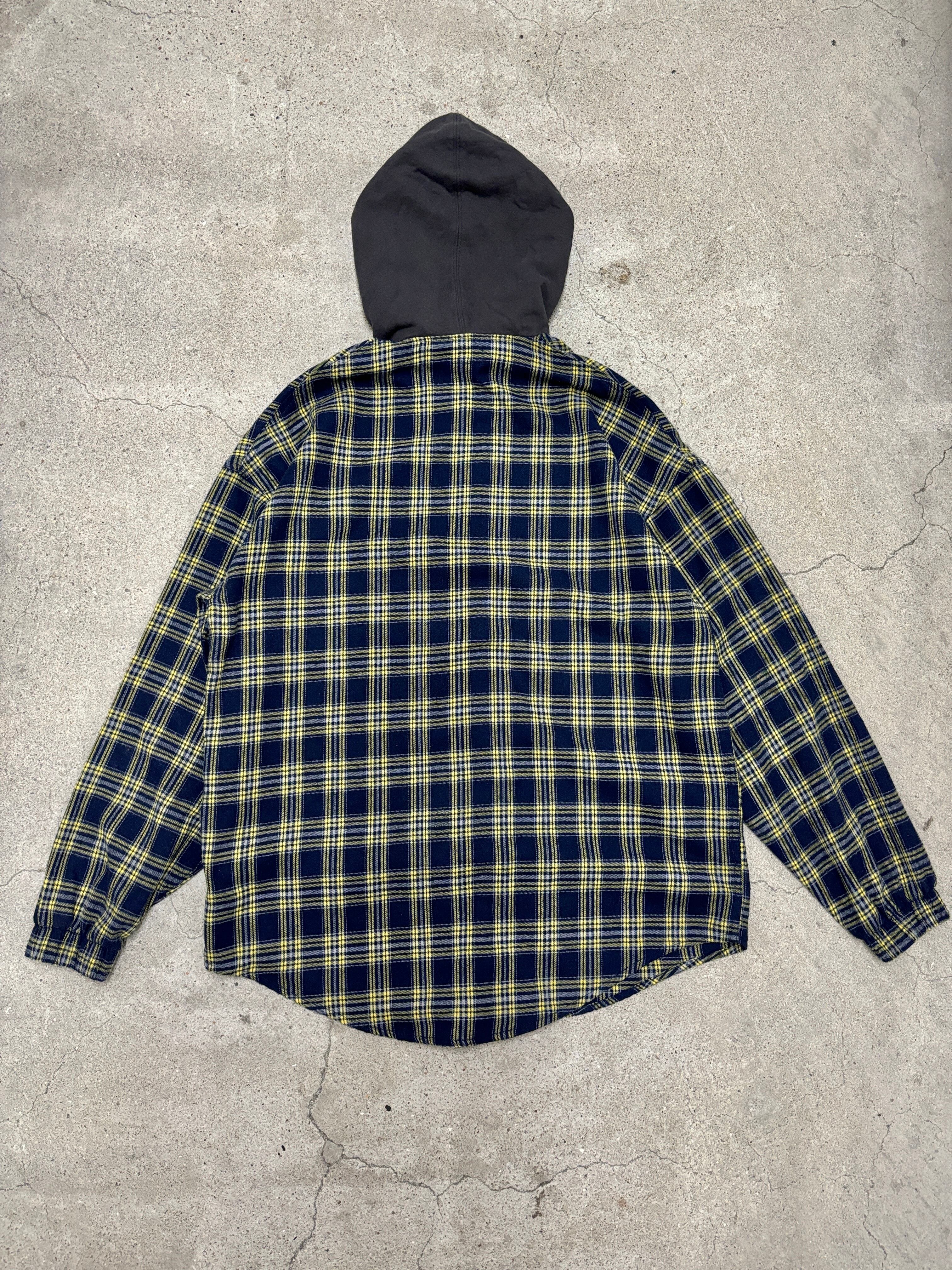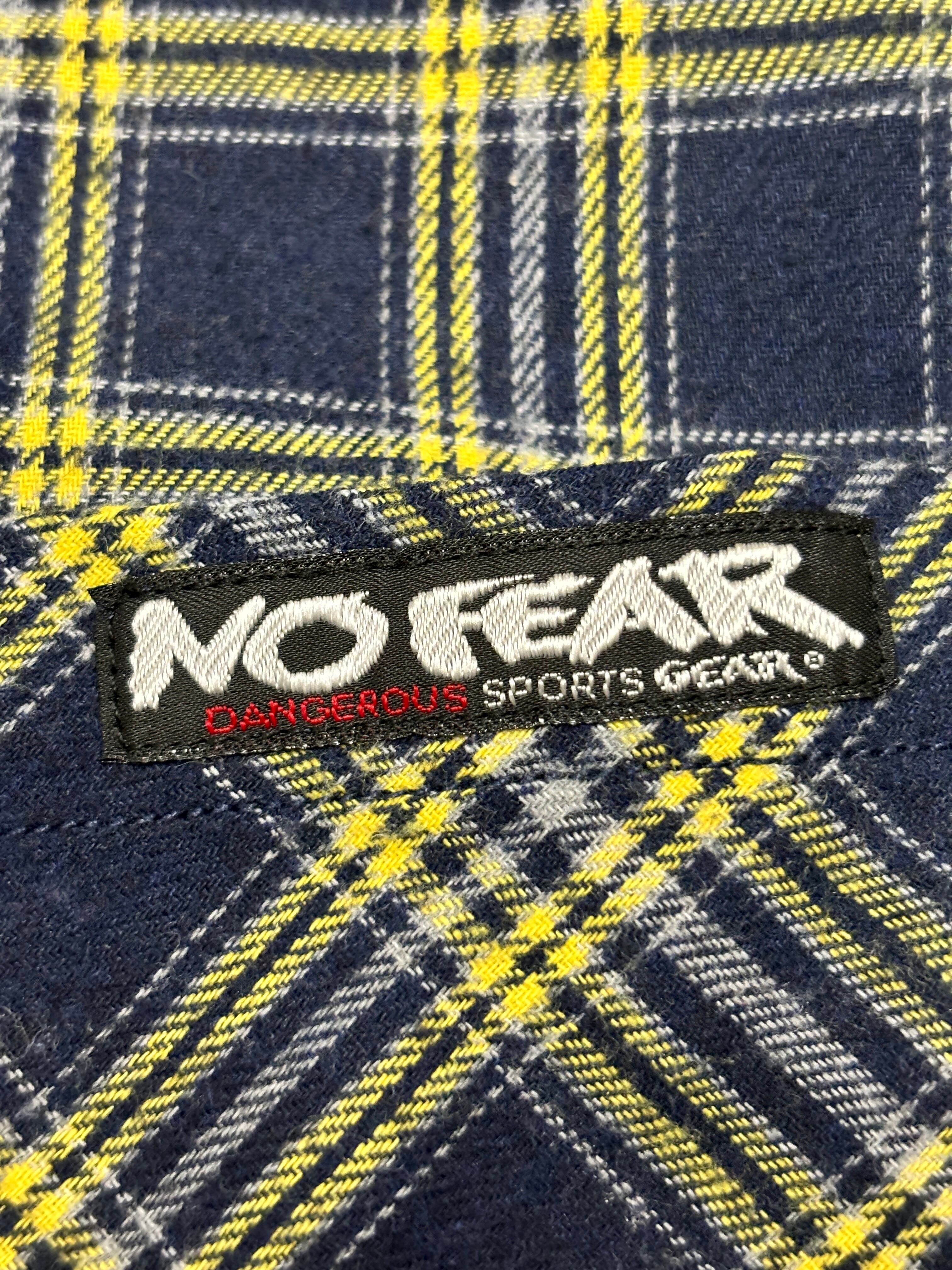 NO FEAR/Check Flannel Shirt/M-L相当/フード付きネルシャツ/フードネル/フランネルシャツ/チェック柄/ネイビ-/イエロ-/ノーフィア-/Life's A Beach/ライフズアビーチ/サーフ/古着