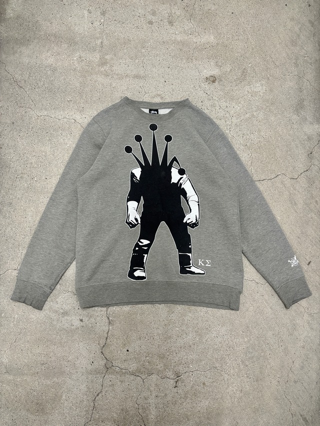 00~10s STUSSY/KOSTAS SEREMENTS/Crownwan print Sweat/L/クラウンマンプリント/スウェット/KΣ/グレー/コスタス セレメンティスコラボ/ステューシー/オールドステューシー