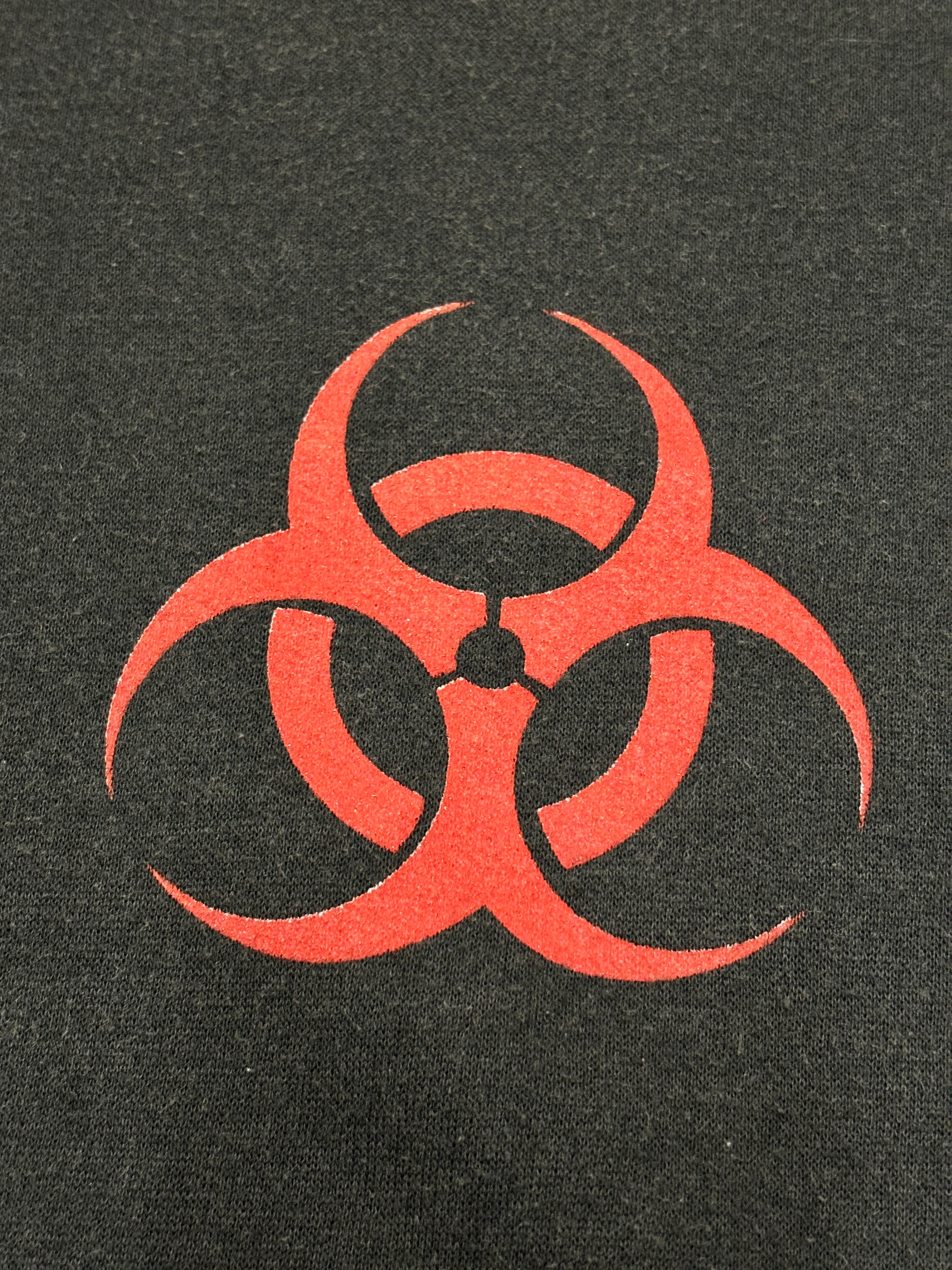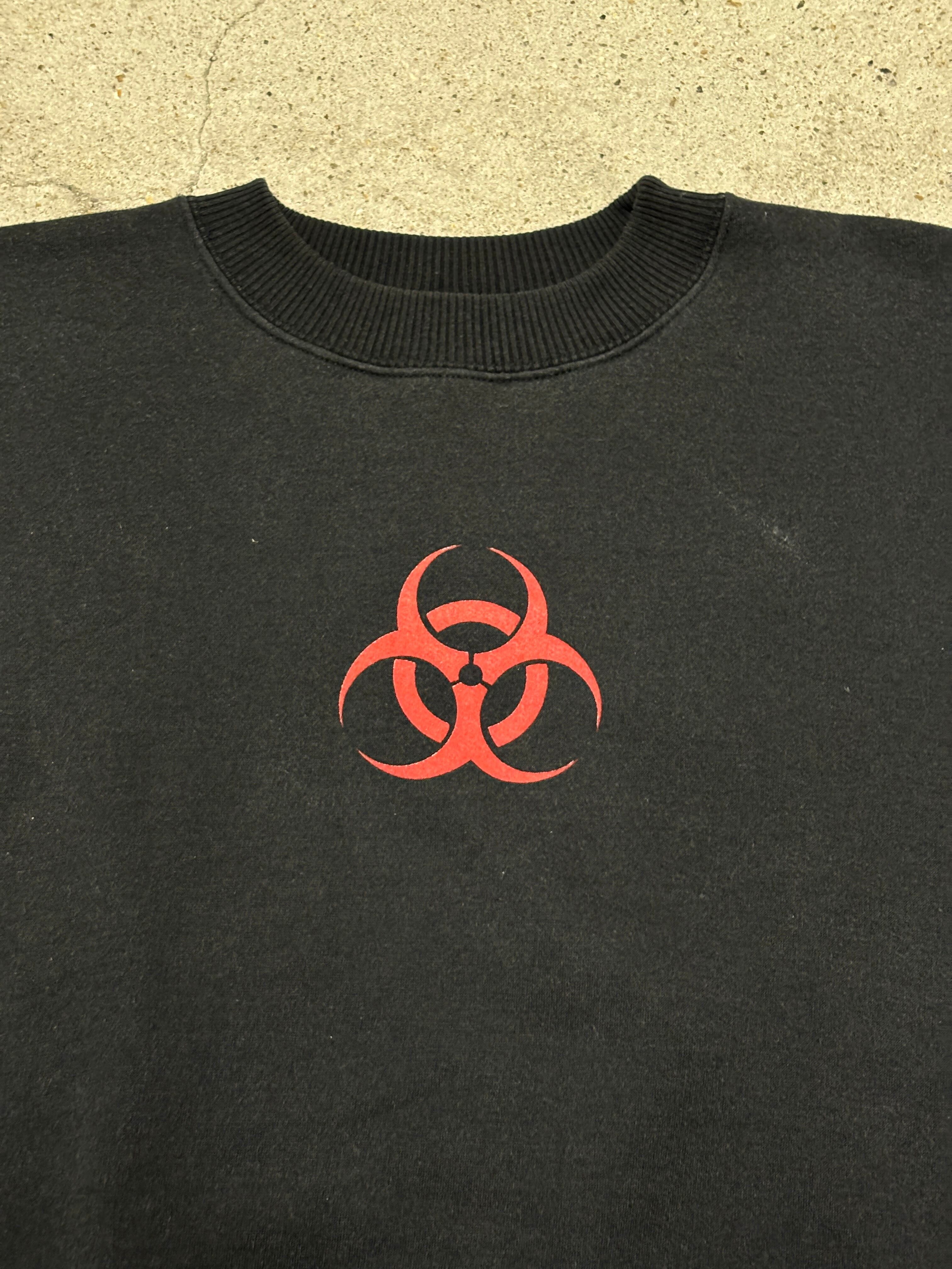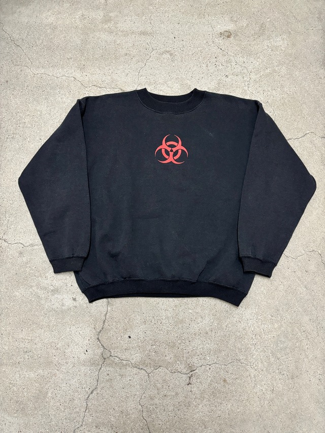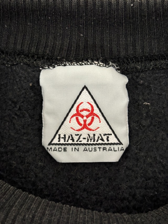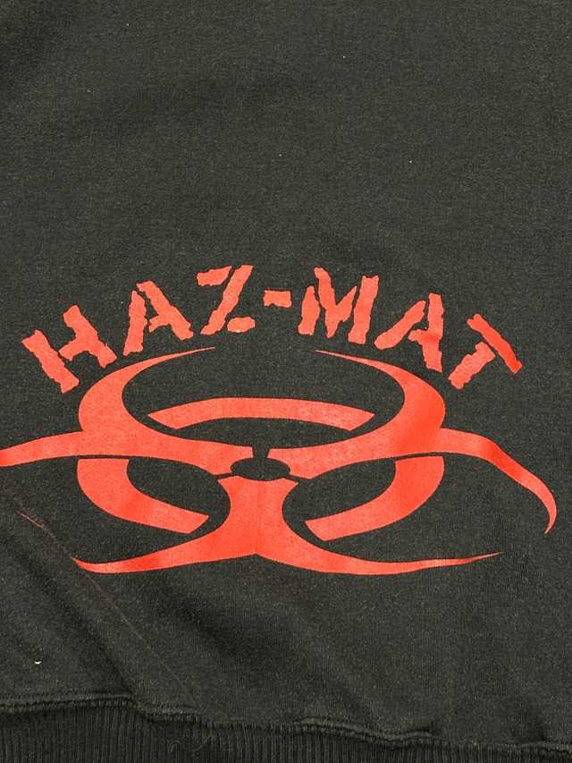 90s HAZ-MAT/Logo print Sweat/Australia製/M/ロゴプリントスウェット/バイオハザードマーク/ブラック/ハズマット
