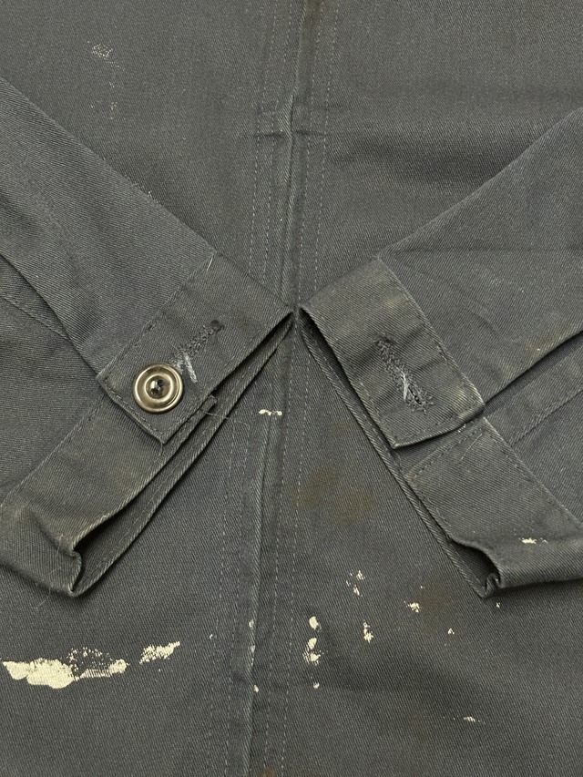 全体的にしみやペンキ汚れがあり、左袖のボタン欠品してます。。